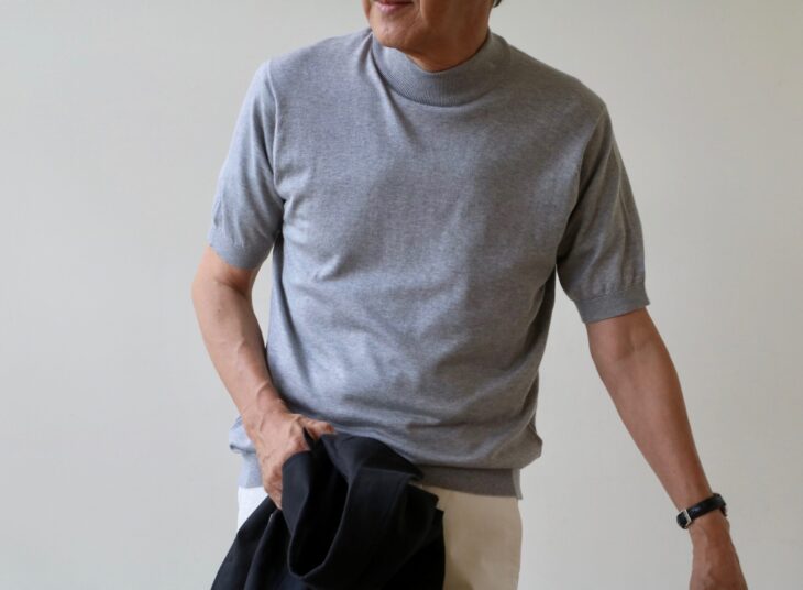 しばらくは活躍してくれる?いや、オールシーズンで使うことのできるのがSEA ISLAND COTTON(海島綿)のモックネック。現在ではほとんど織ることのできない30ゲージという繊細ながらも丈夫なニット。メンテナンスも楽といえば、JOHN SMEDLEY/ジョン・スメドレーのものです。「高くなったね」の声もありますが、35年前から見てきた私にとっては、決して高いとは思わない他の追随を許さない、コスパの高いブランドです。このクラスのニットと比較できるのは、ハイブランド。賢い選択はどちら?聞くまでもありませんよね。