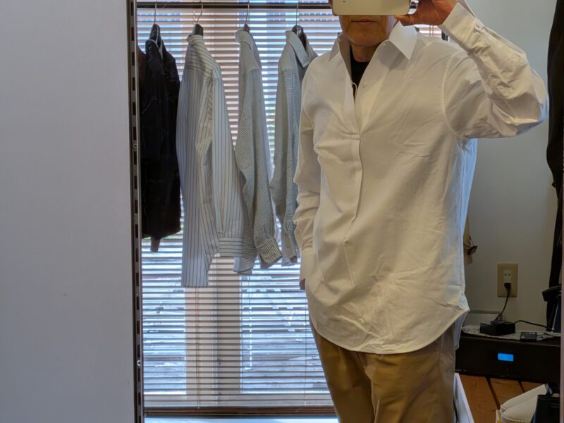 合わせたのは、BARBA/バルバの「DANDY LIFE」コットン・リネンミニロンストシャツ。私物です。ボトムは昨日も穿いたPT TORINO/ピーティートリノのコットンストレッチ パンツ。このシリーズは3色展開ですが、不思議とサイズ46のみ。中心サイズがワンサイズ上がったようです。