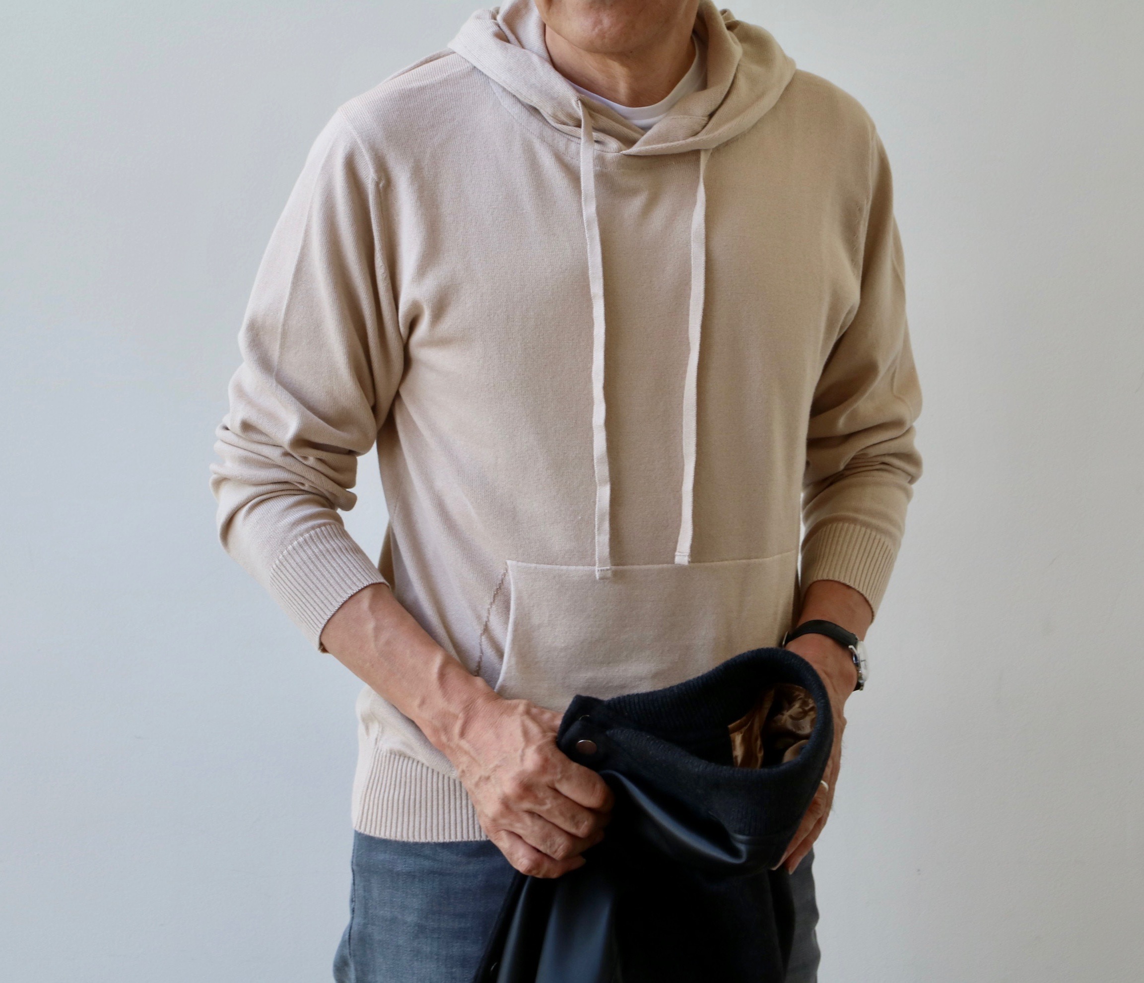 「カジュアルなスウェットは世の中に溢れているので、新鮮さは特に感じませんが、ジョンスメドレーならではのラグジュアリーな大人の特別感のあるムードが漂います。