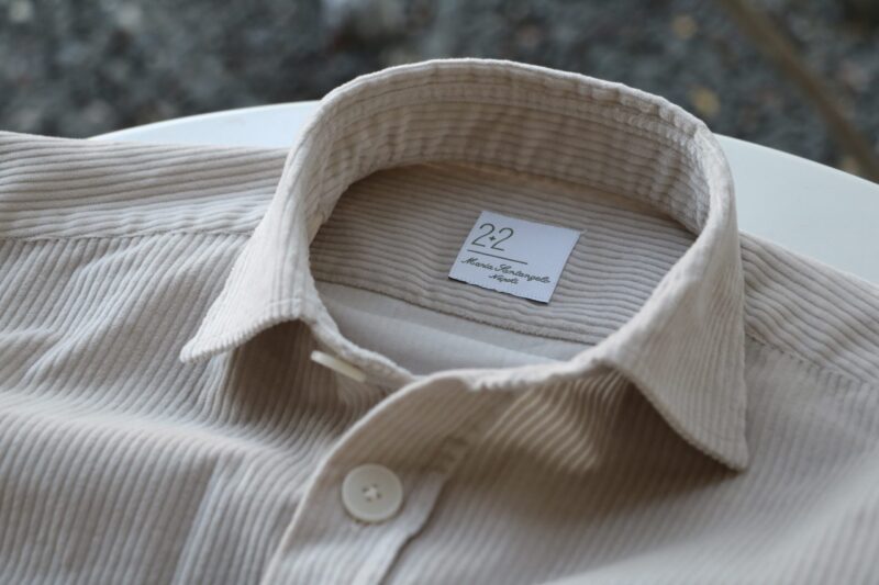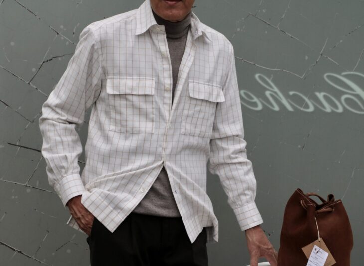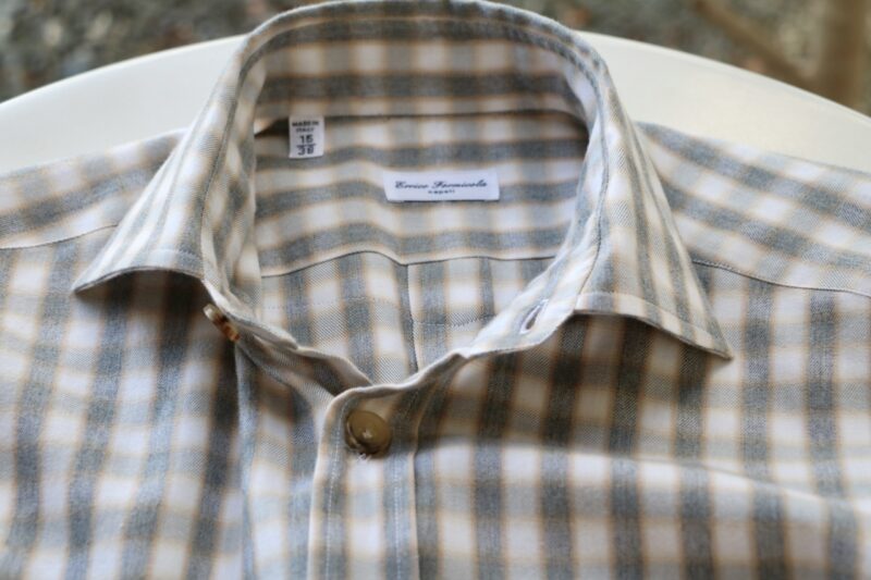 エクルベージュではありませんが、ニットオンシャツとして個性を見せるのが、Errico Formicola/エリコ フォルミコラの「GIANNI」。イタリアを代表する自動車メーカー、フィアットの元名誉会長であるGianni Agnelli(ジャンニ・アニエッリ)が愛用していたシャツを再現しています。