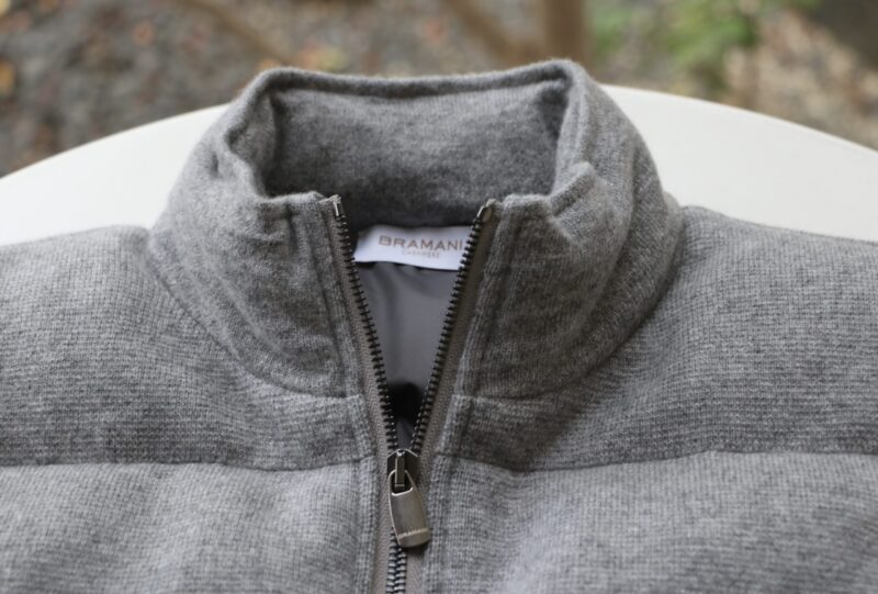 ブログにも書きましたが、BONHEUR/ボネールのバイイングの際、横に並んでいる質の良いニットを見て、思わずセレクト。ブランド名は【BRAMANI CASHMERE】と全く知らないブランドでしたが、このダウンベストに目が行きました。