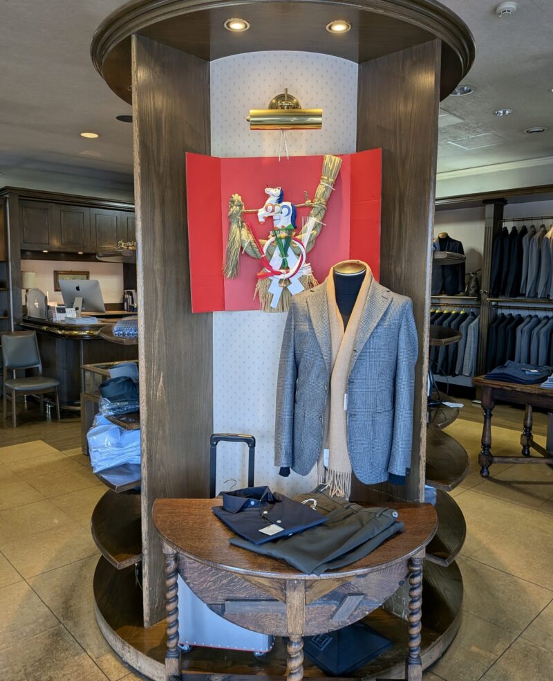 ただ、仕事着や街着はイタリアのファクトリーブランドが中心。忘年会の今夜、CARUSO/カルーゾで仕立てたウインドウペン柄のフランネルスーツで出勤です。