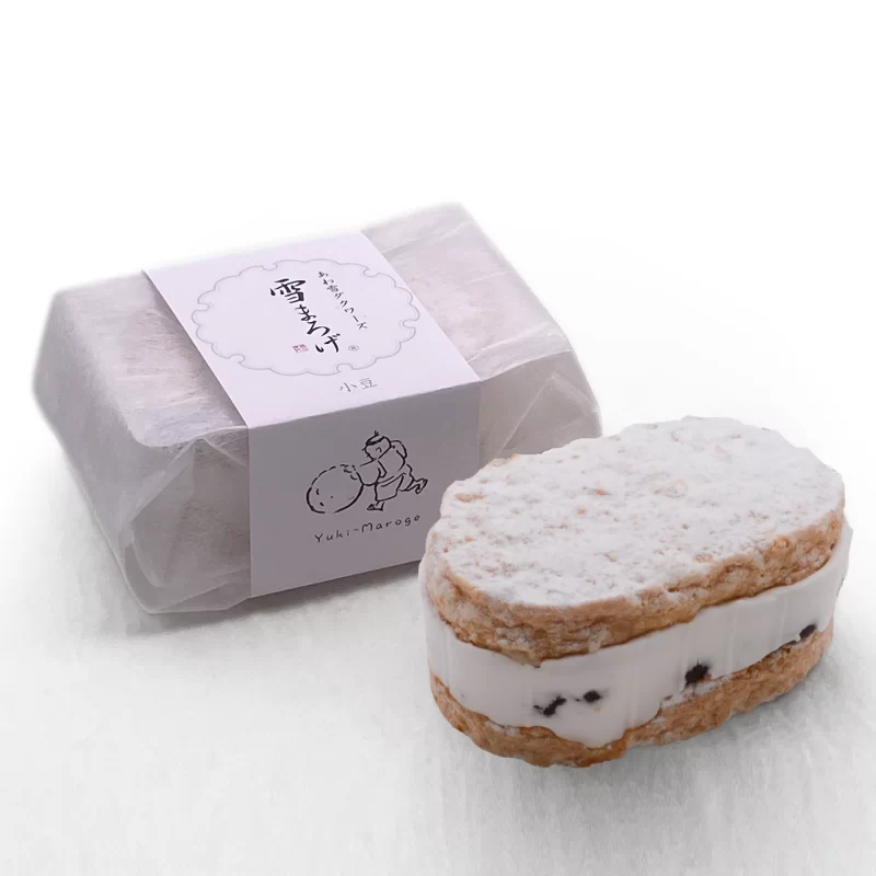“雪まろげ”とは、「雪を丸めて雪だるまや雪合戦の雪玉を作ったりすることをいい、元気に雪の中であそぶ子ども達をあらわす冬の季語でもあります。純白の「あわ雪」と重ねた「ダクワーズ」に粉砂糖がふりかかる姿が雪原のイメージと重なりこの名を付けました」とのこと。