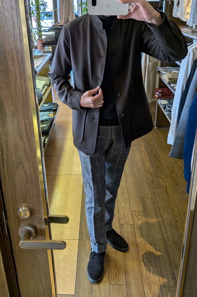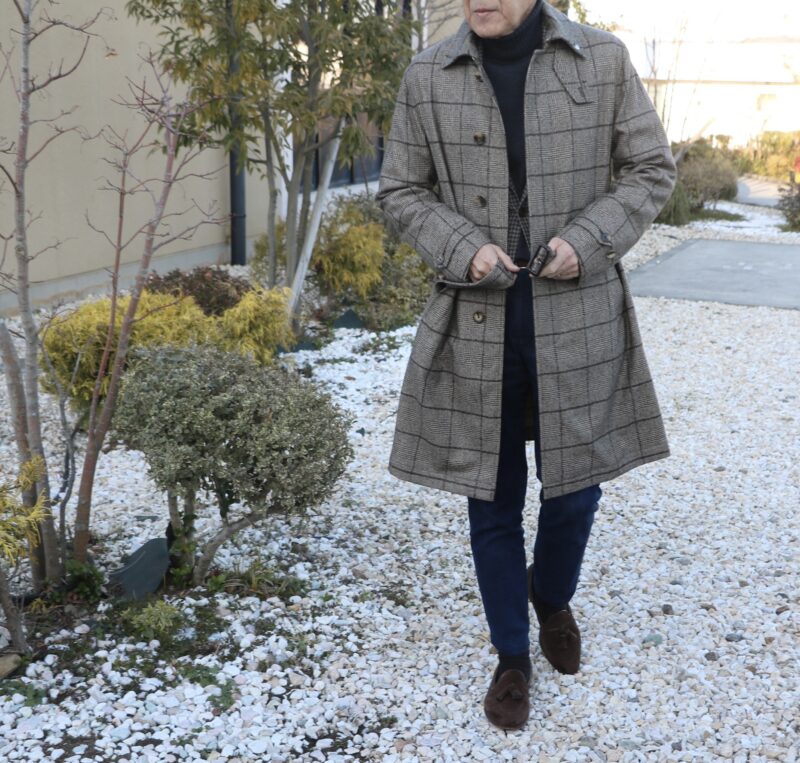 ジャストサイズの38。気持ち良い着心地です。これは、まずいと思うのは、そろそろ出張が始まります。今回、海外はカシェートバイヤーのみですが、今月後半から2月にかけて東京に出かけます。以前、似た柄で着ていたのは、HERNO/ヘルノ。ただ、この秋の断捨離で今はなく、ややコート不足です。足すなら、これもいいかななんて思ってしまうほど、着やすく、着ていく場所を選ばない、格好がつくコートです。