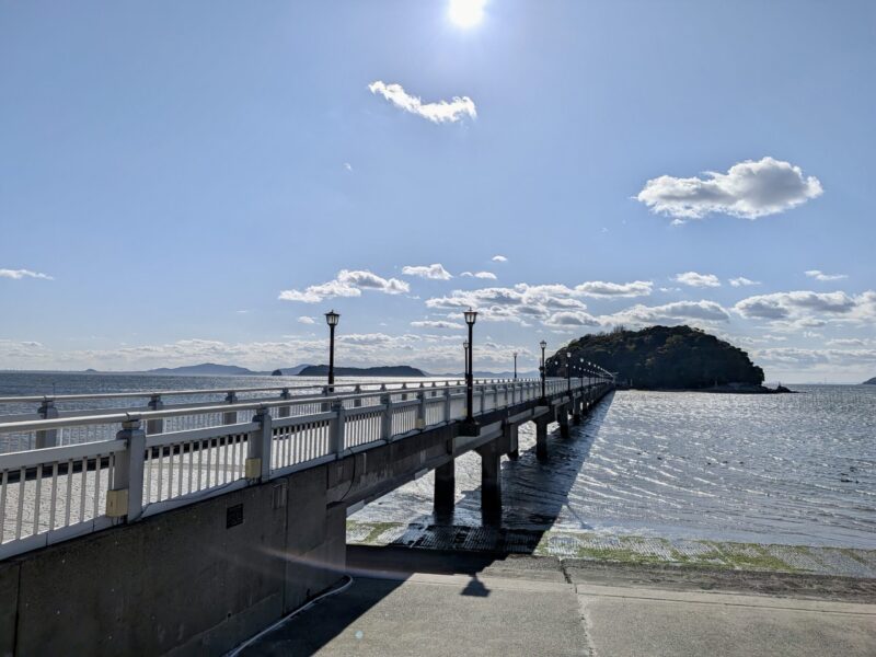 久しぶりの蒲郡です。人混みの苦手な私が選ぶのは、八百富神社(やおとみじんじゃ)。晴れてはいますが、冷たい風が吹き荒ぶ竹島。横着な私は手前にある遥拝所でお参りします。