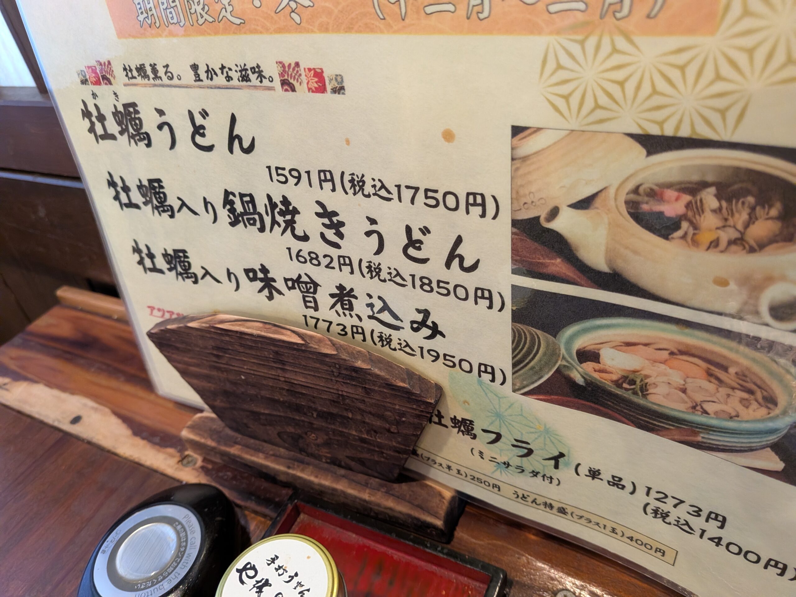 いつも頼むのは、硬麺の味噌煮込みうどん。少し贅沢をして牡蠣入りに。米好きですので、プラス小ライスです。
