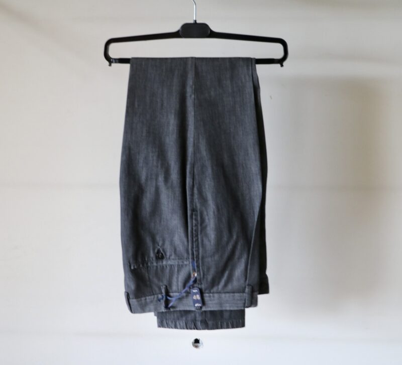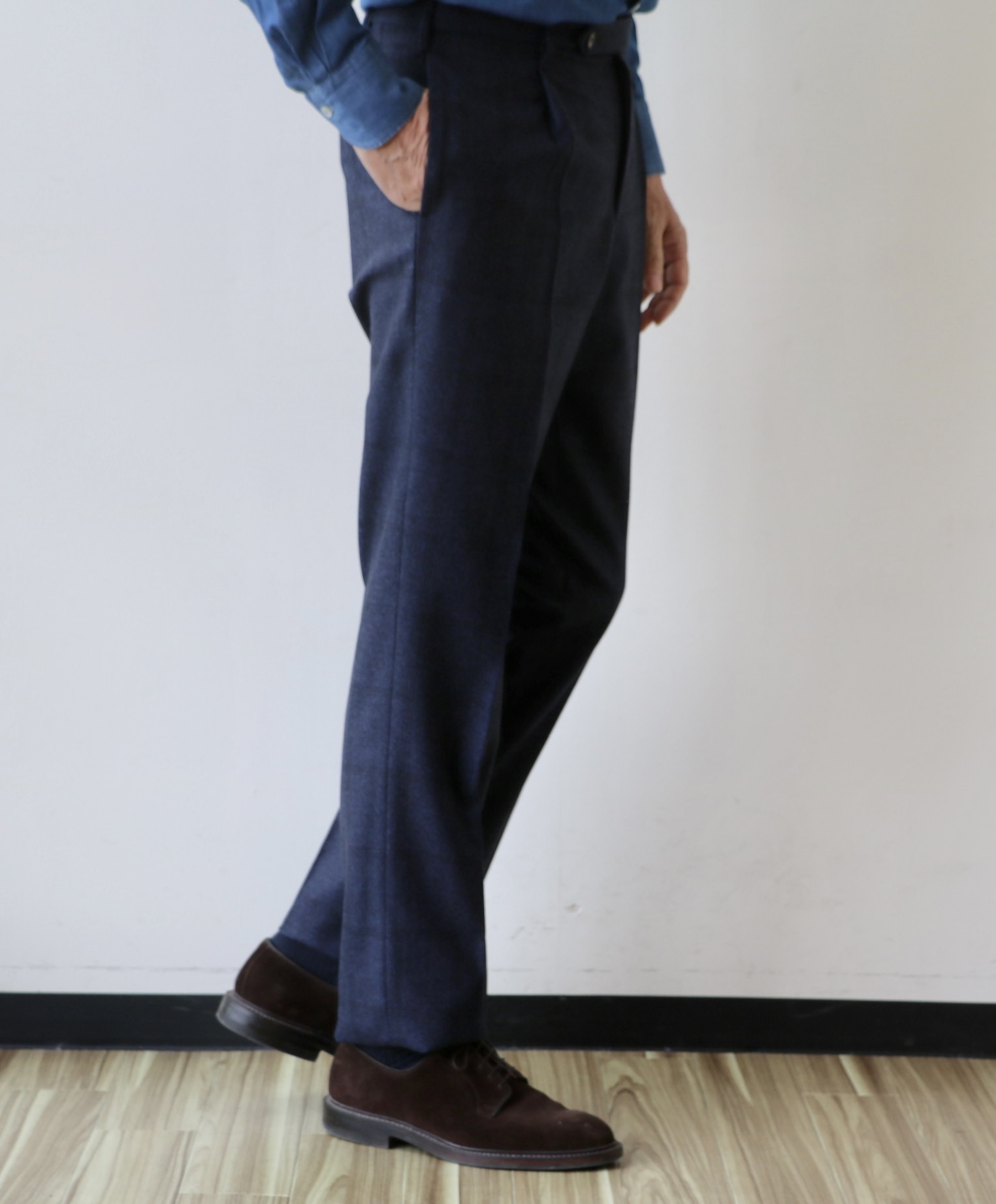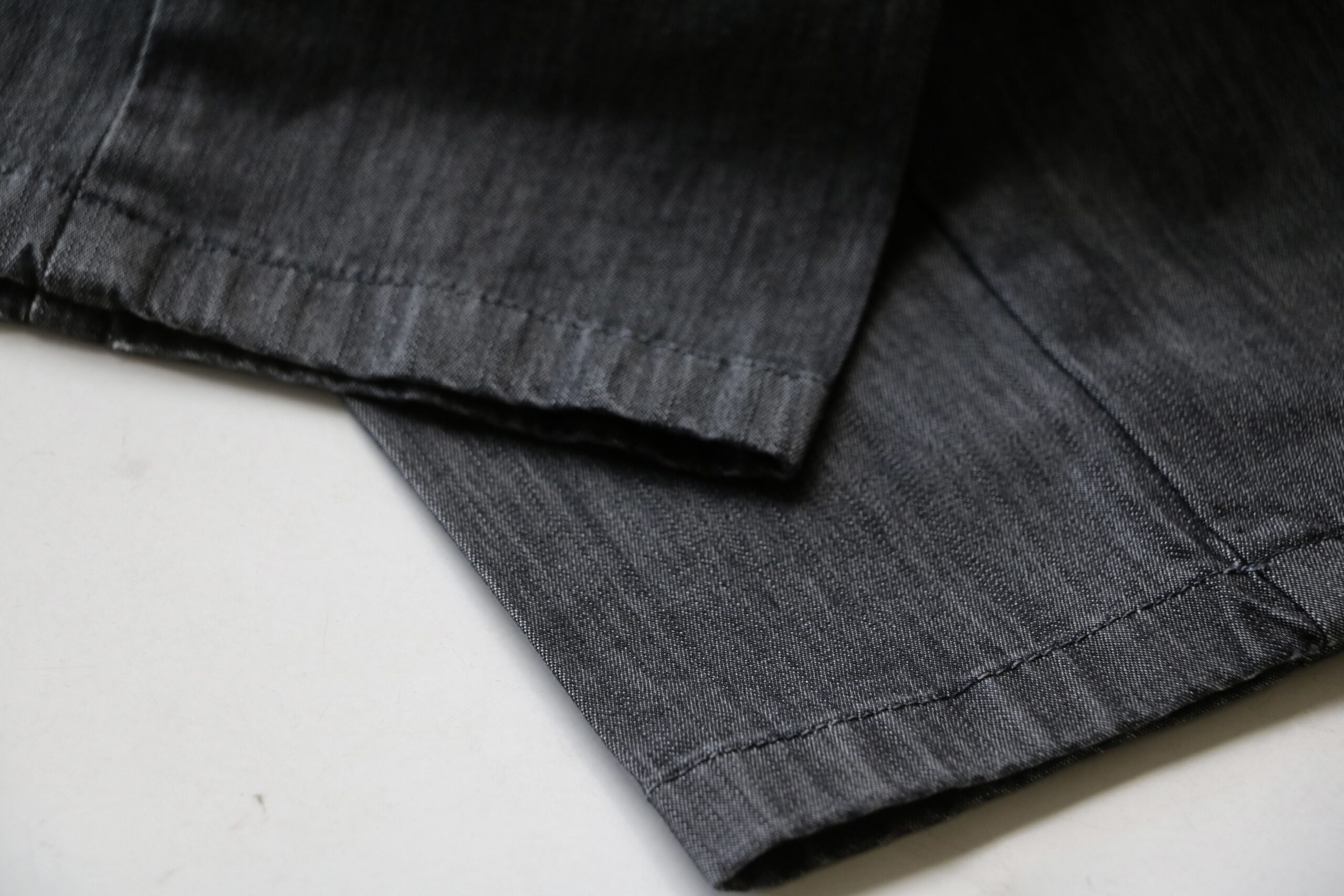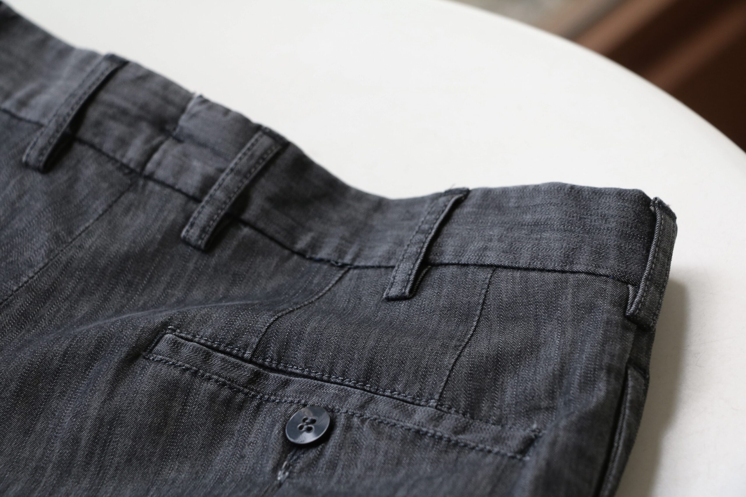 上のウール素材と同時に入荷してきたのが、デニム素材のモデル「STARK」。デニムといってもかなりのライトウエイトで、冬には穿けません。寒い春もまだまだ。初夏ぐらいから穿くことのできる薄手のデニムパンツです。