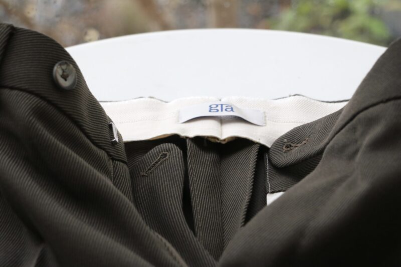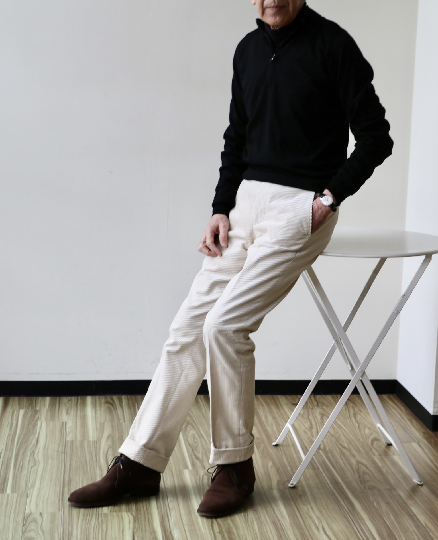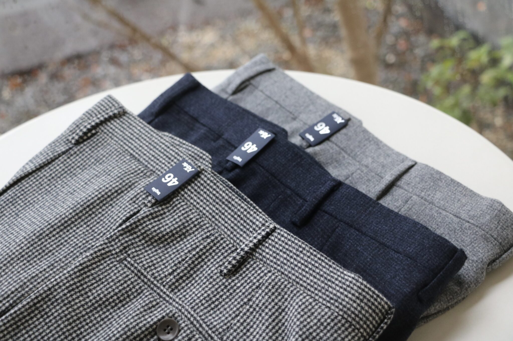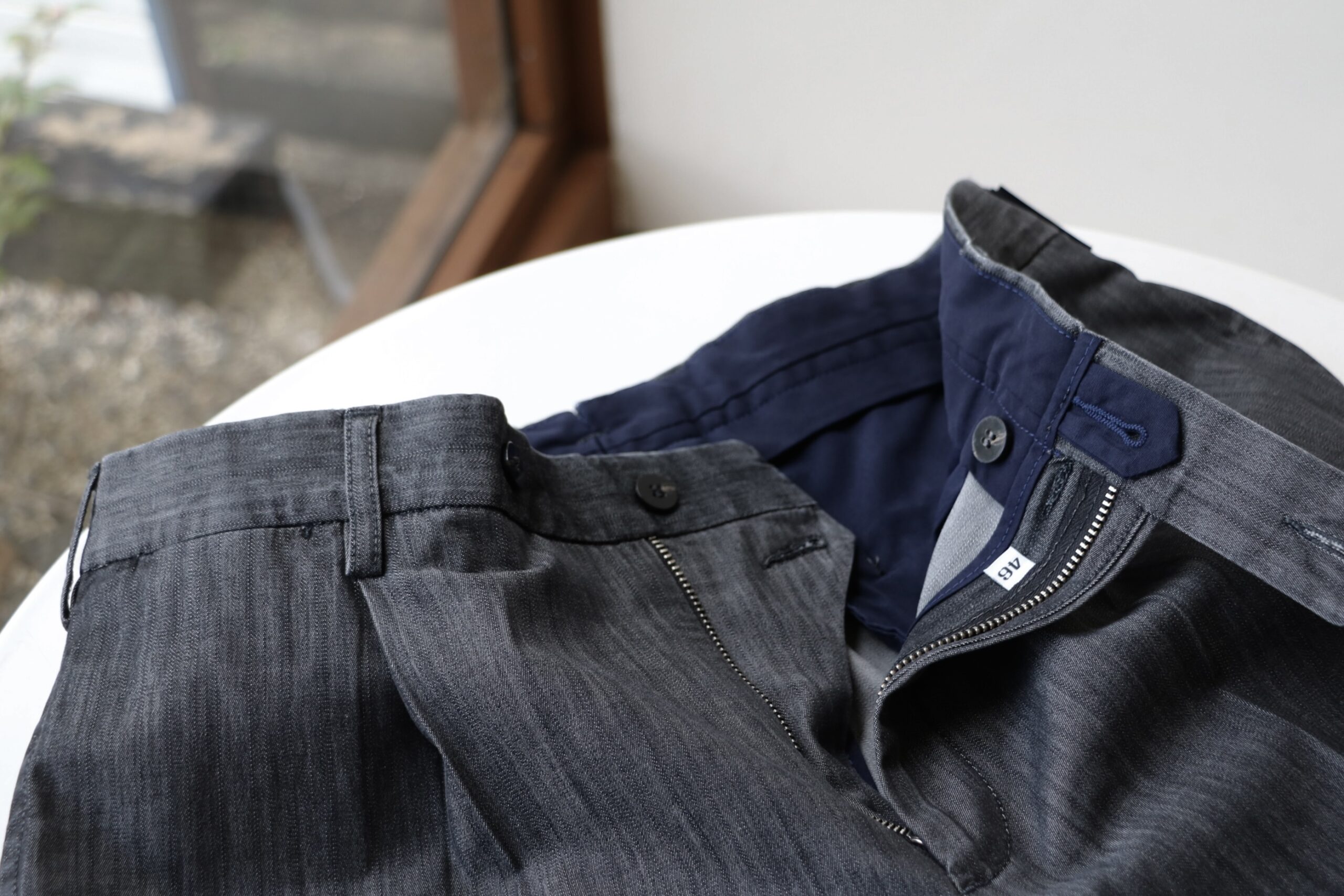 Errico Formicola/エリコ フォルミコラのジャケットに合わせるなら、【gta/ジーティーア】のこれっ!! 動きに対応してくれる伸縮性のあるウエスト仕様は特許になっています。新たにコーディネートと思いましたが、私の着用サイズ46は完売しておりました。