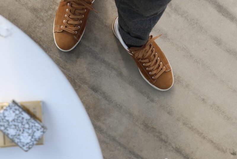 本日のコーディネートのキーポイントはタバコブラウンです。意外と言われながらも、愛煙家です。セブンスターからマルボロ ゴールドに変えて7.8年ほど。シルバーのジッポライターとセットで持ち歩いています。グレイのボトムに白スニーカーを合わせていましたが、どうもしっくりこないと履き替えたのが、HELMS PARIS/エルム パリのスニーカーです。レザースニーカーは白と決めていましたが、やはり今年は何かにつけてターニングポイント。タバコの箱と近いタバコブラウン。気分転換のためにも購入することにしました。これで、コーディネートは完璧です。