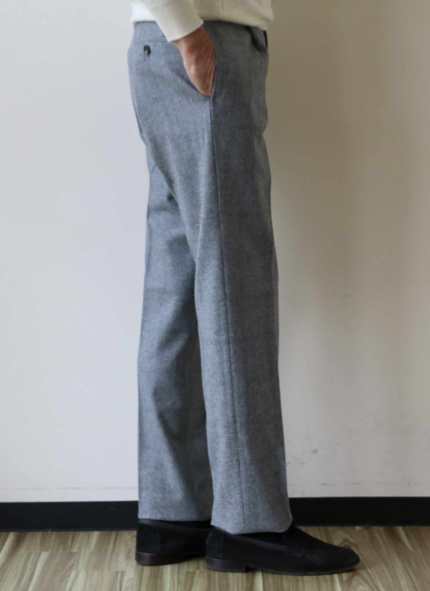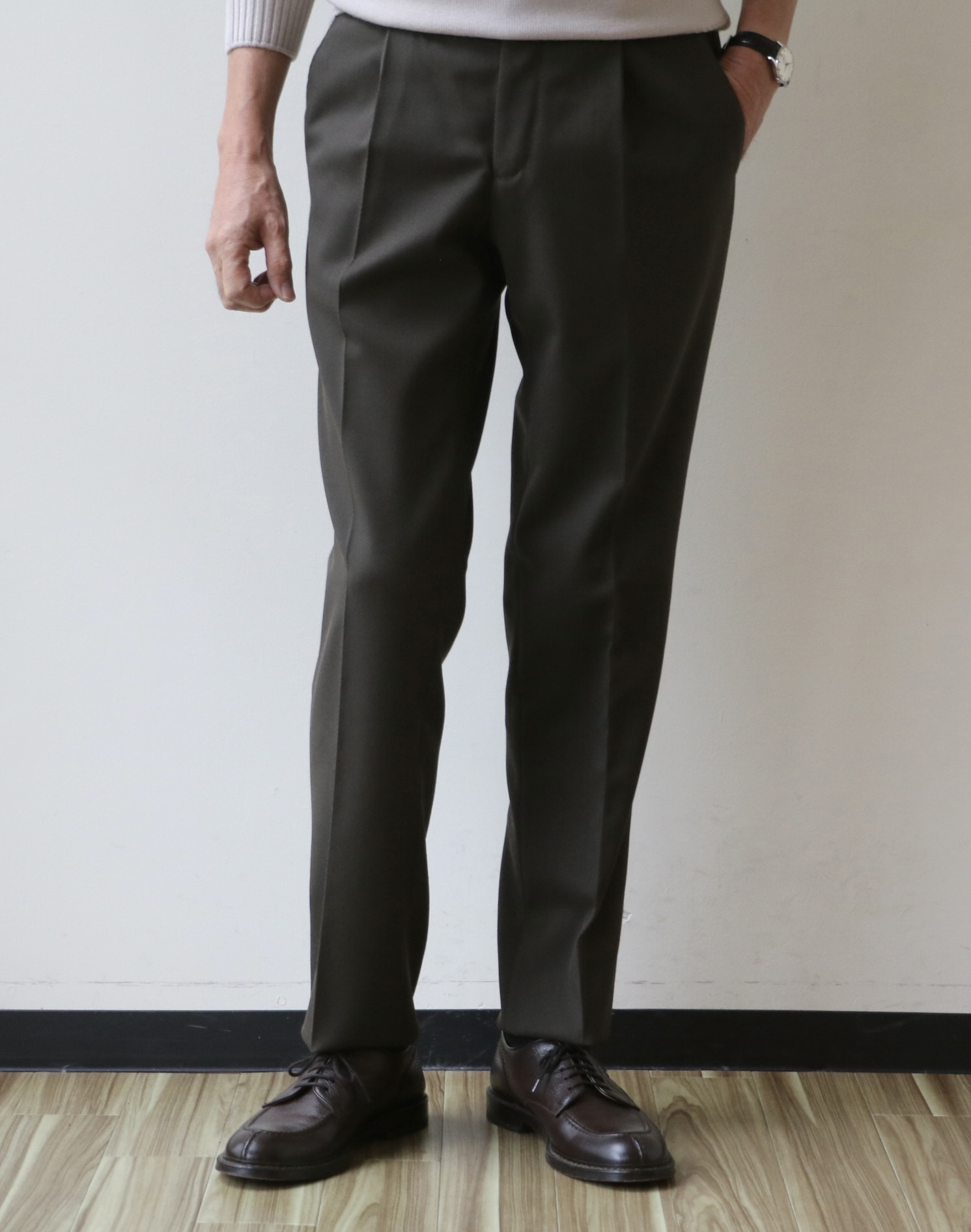 生地に触れただけで、そのクオリティの高さが分かる【Rota/ロータ】のピュアウール。厳選されたオーストラリア産原毛を使い、独自の紡績・織り技術で仕上げられ、しなやかさや光沢はもちろん、耐久性のある美しい艶のある生地を、裾幅21cmのワタリから膝、裾にかけてストレートなラインを描く「STARK」にのせることでさらにエレガントなパンツに仕上がっています。