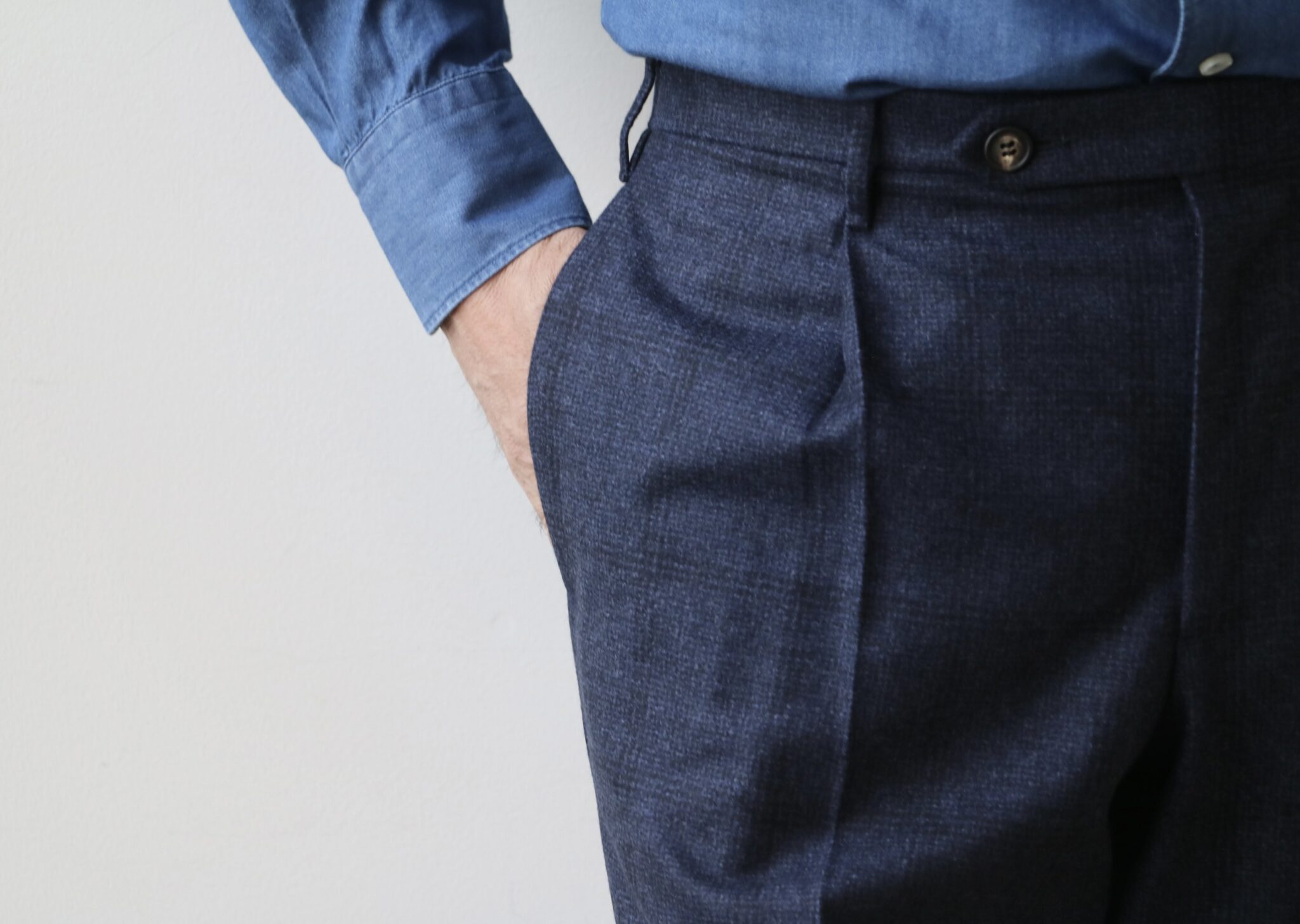 ツイルの中でも綾畝が65度の急傾斜になるキャバリーツイル。毛羽がなく、シャープな表情と長いシーズン着用できるのが魅力です。最高峰といえば、カシェートで展開しているWhiteley&Green/ホワイトリーアンドグリーン。今、注目されている素材になります。