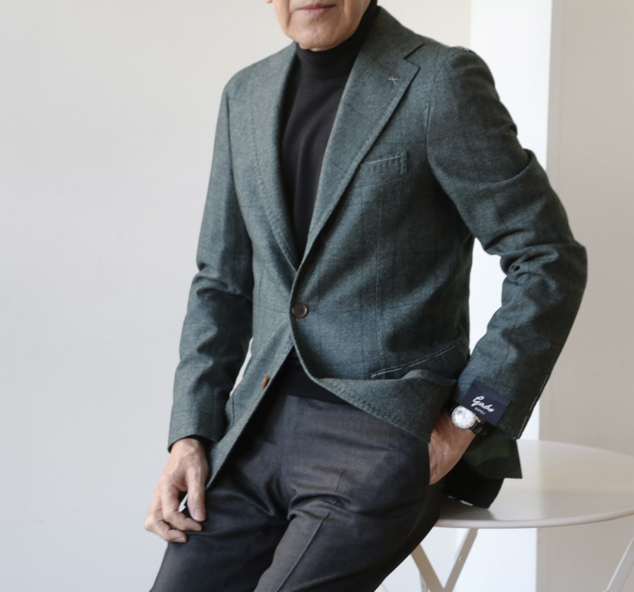 前回のブログで、パットや芯を使い、着心地を良くするサルトリアの技術を最小限にとどめカミチェリアの技術をうまく取り入れることで堅苦しさより柔らかなシルエットを生み出していると書きましたが、エリコ ・フォルミコラ氏の職歴を見れば、お分かりになるはずです。Kitonでのサルトリアの経験とLuigi Borrelliのカミチェリアでの実績が、他のブランドにはない特別な魅力を伝えています。