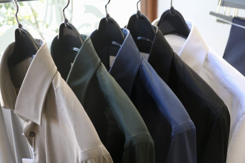 お勧めしたいのが、未来志向のシャツとしてご提案している【XACUS /ザッカス】のアクティブシャツです。着用しているのは、ネイビーのサイズ38。