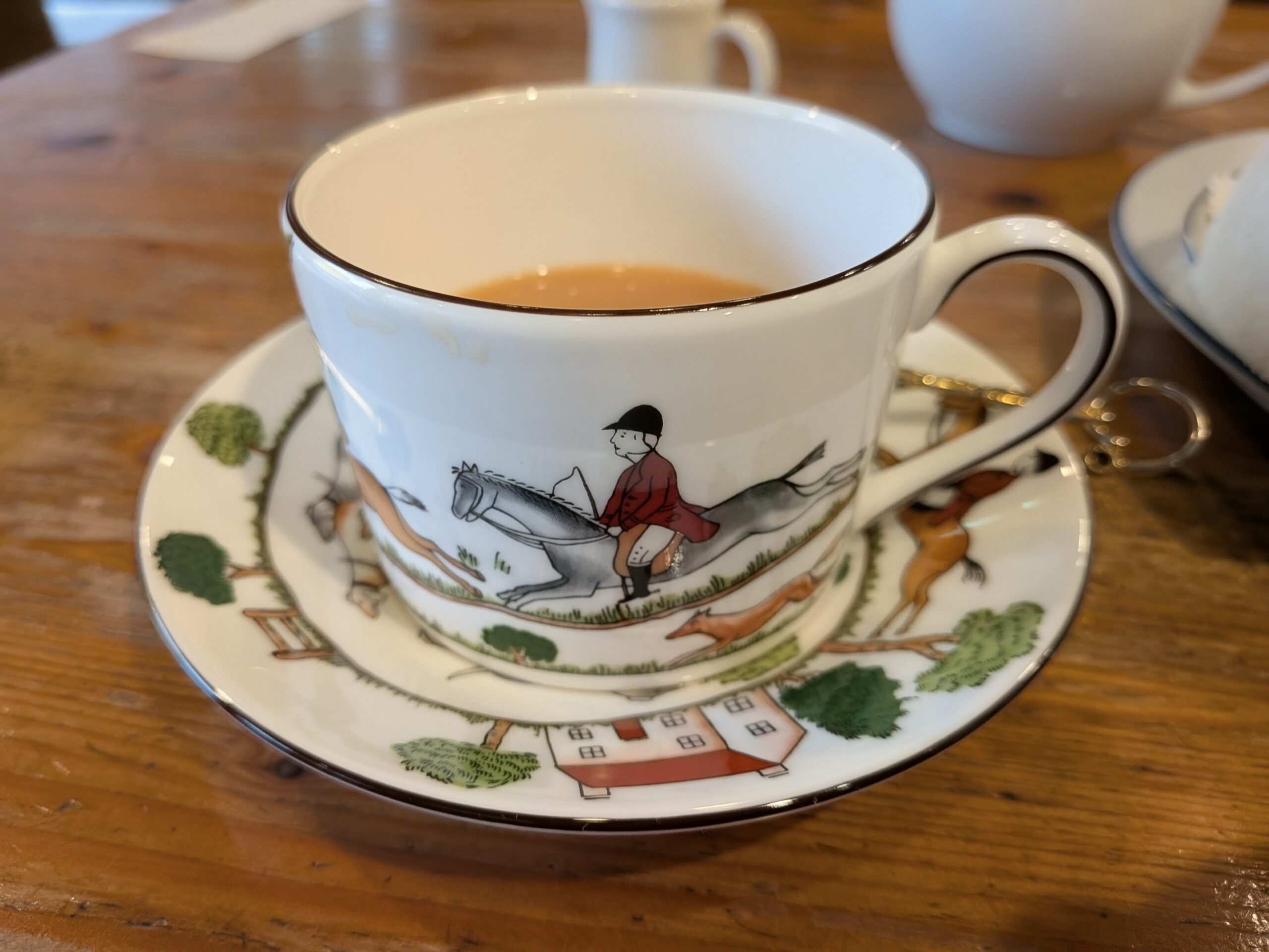 昨日のインスタのストーリーに載せた内容です。先日の昼食に訪れたのはレトロなカフェ”シャングリラ”さん。カシェートバイヤーのブログを確認していたら、出されたティーカップがウエッジウッドのハンティングシーンでした。オーナーの奥様?は英国好き。毎回、ウエッジウッドですが、今回、偶然にもハンティングシーン。つい、サンドイッチを頬張りながら、思いを馳せておりました。「今度こそ」というの、未だ手にしていない Whiteley & Green/ホワイトリーアンドグリーン。ご購入された方からの絶賛の声を聞いて、「今度こそ手に入れたい」に。特にベストは大好物です。Corgi/コーギーのニット同様、価格もかなり抑えてありました。