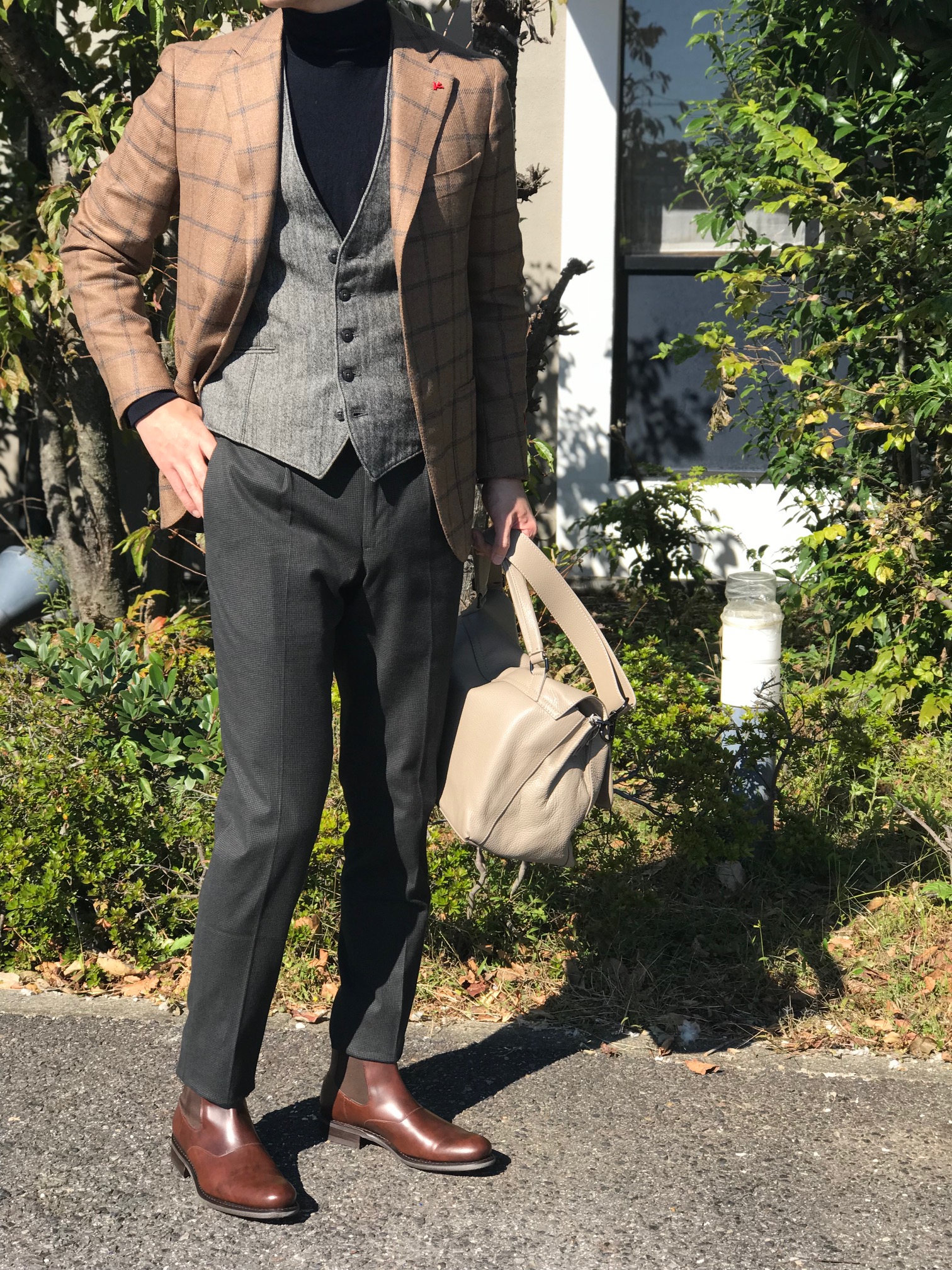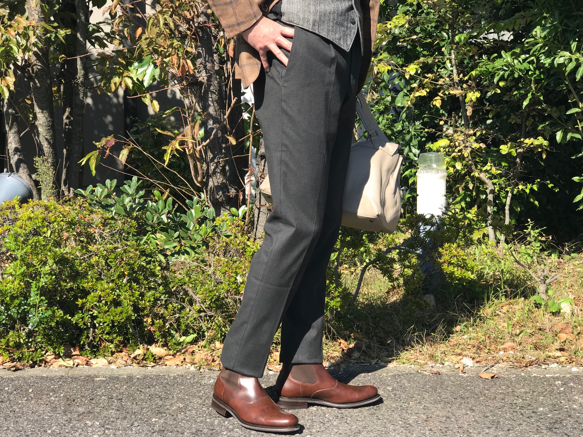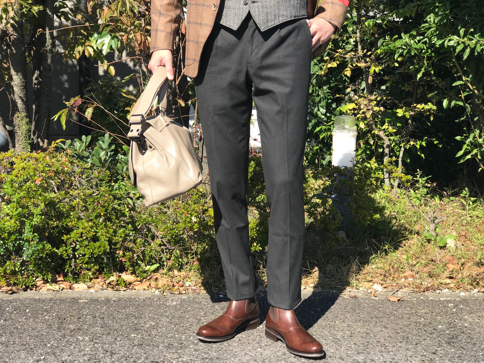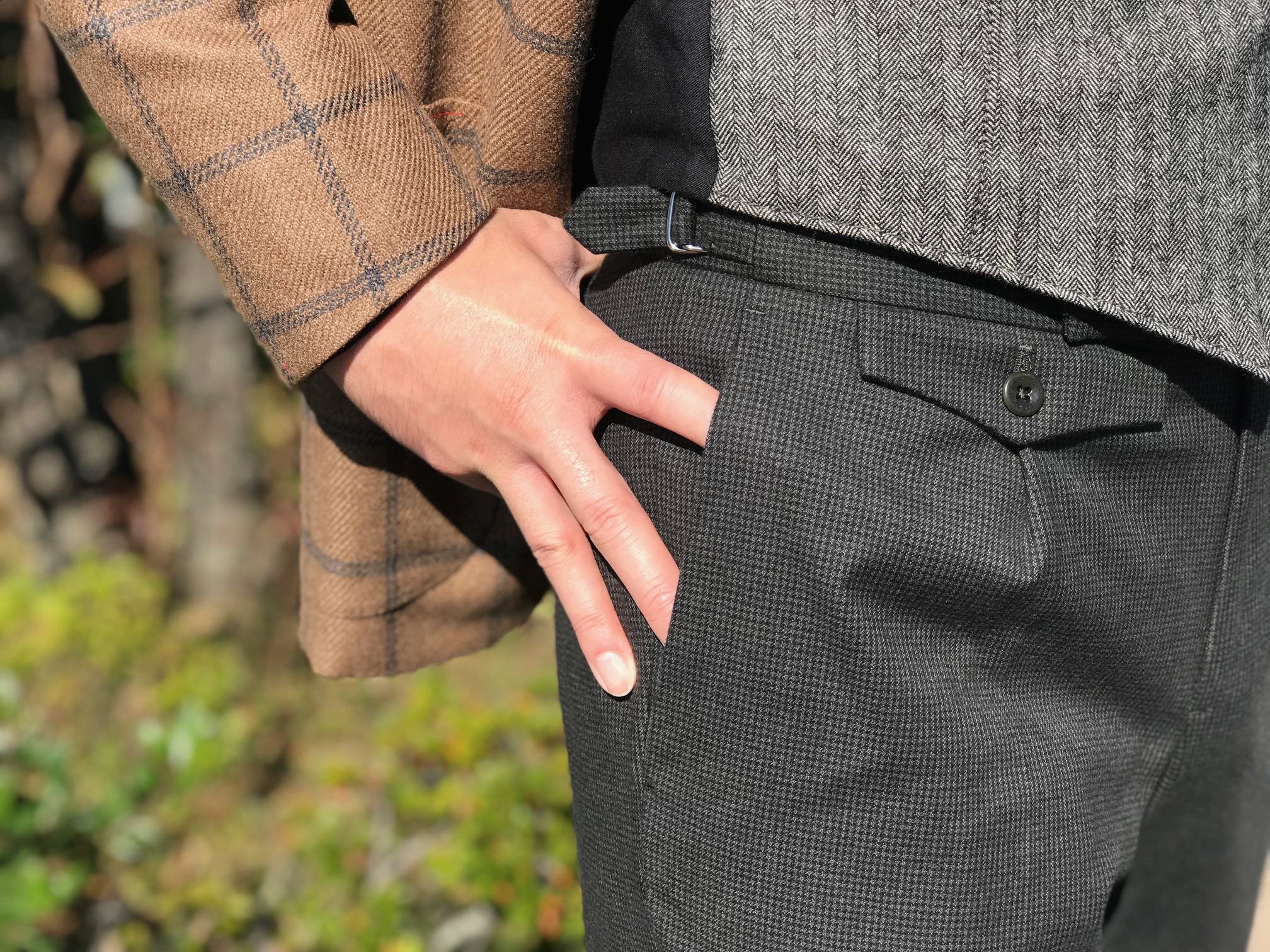 MODEL:「1AGW011」コットンストレッチ ミニチェック柄パンツ
