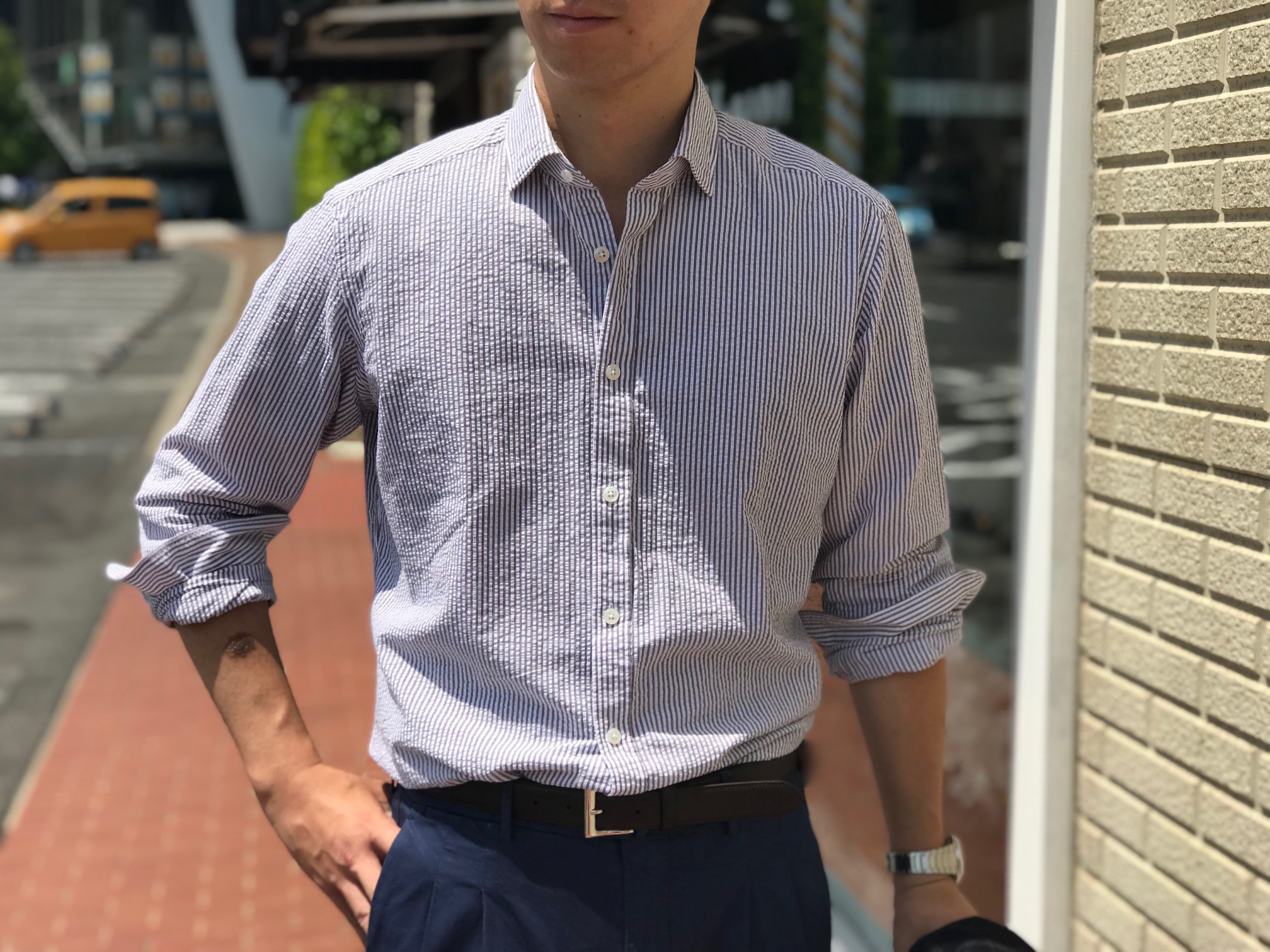 MODEL:「BERLINO」ストライプ柄シアサッカー地シャツ