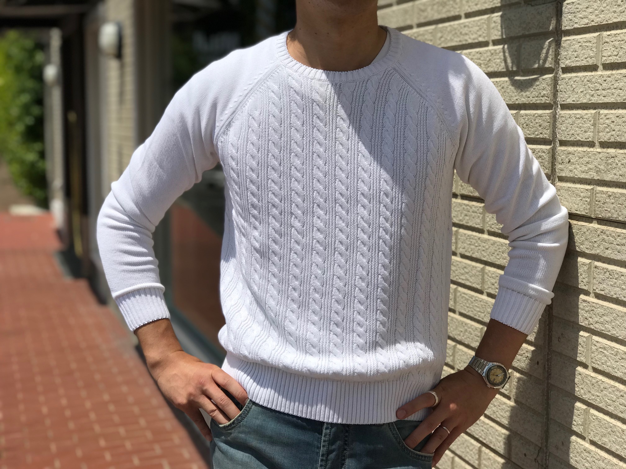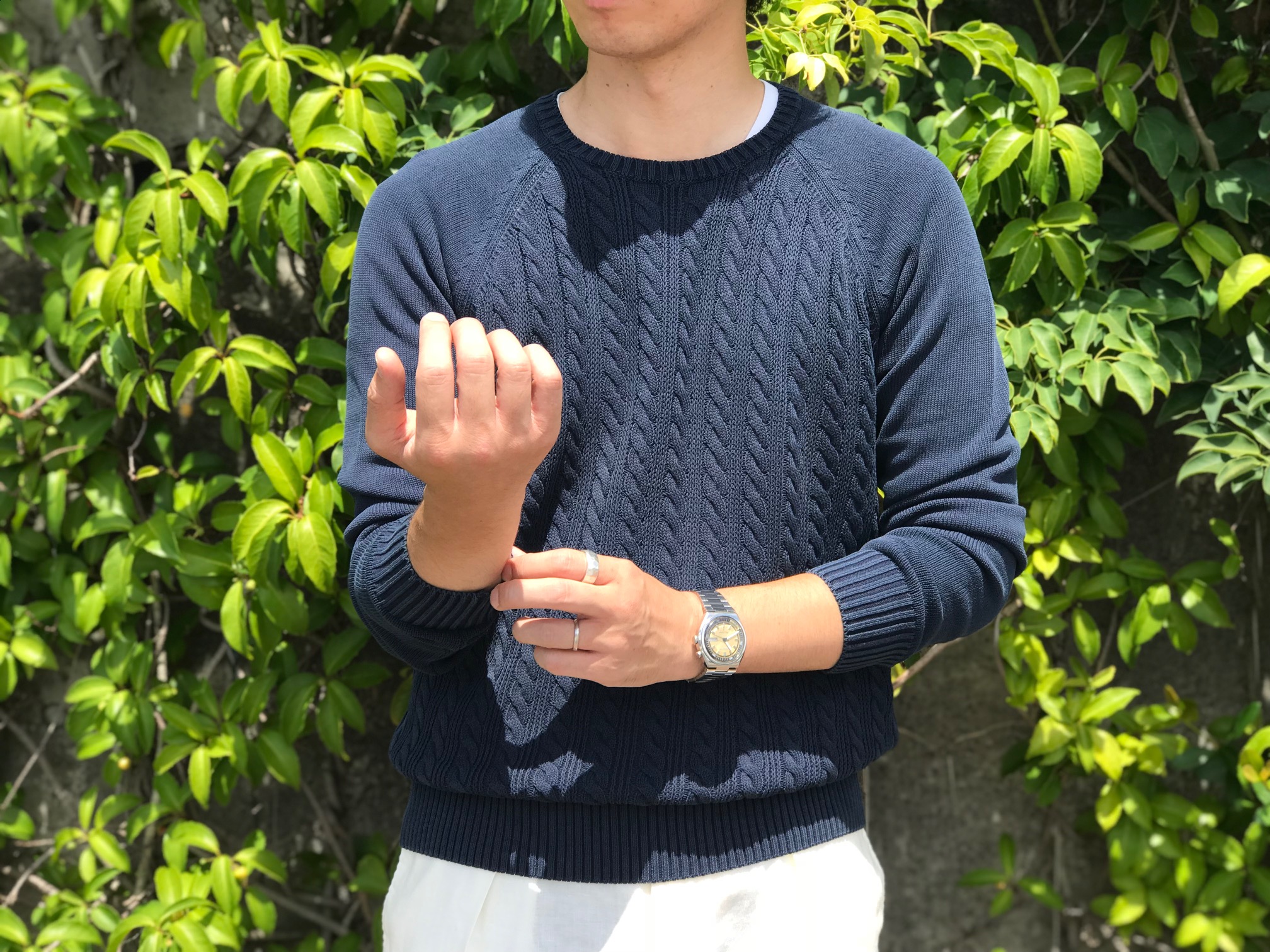 長袖を着ること、でしょうか。特に、ZANONEのニットがお勧めと。