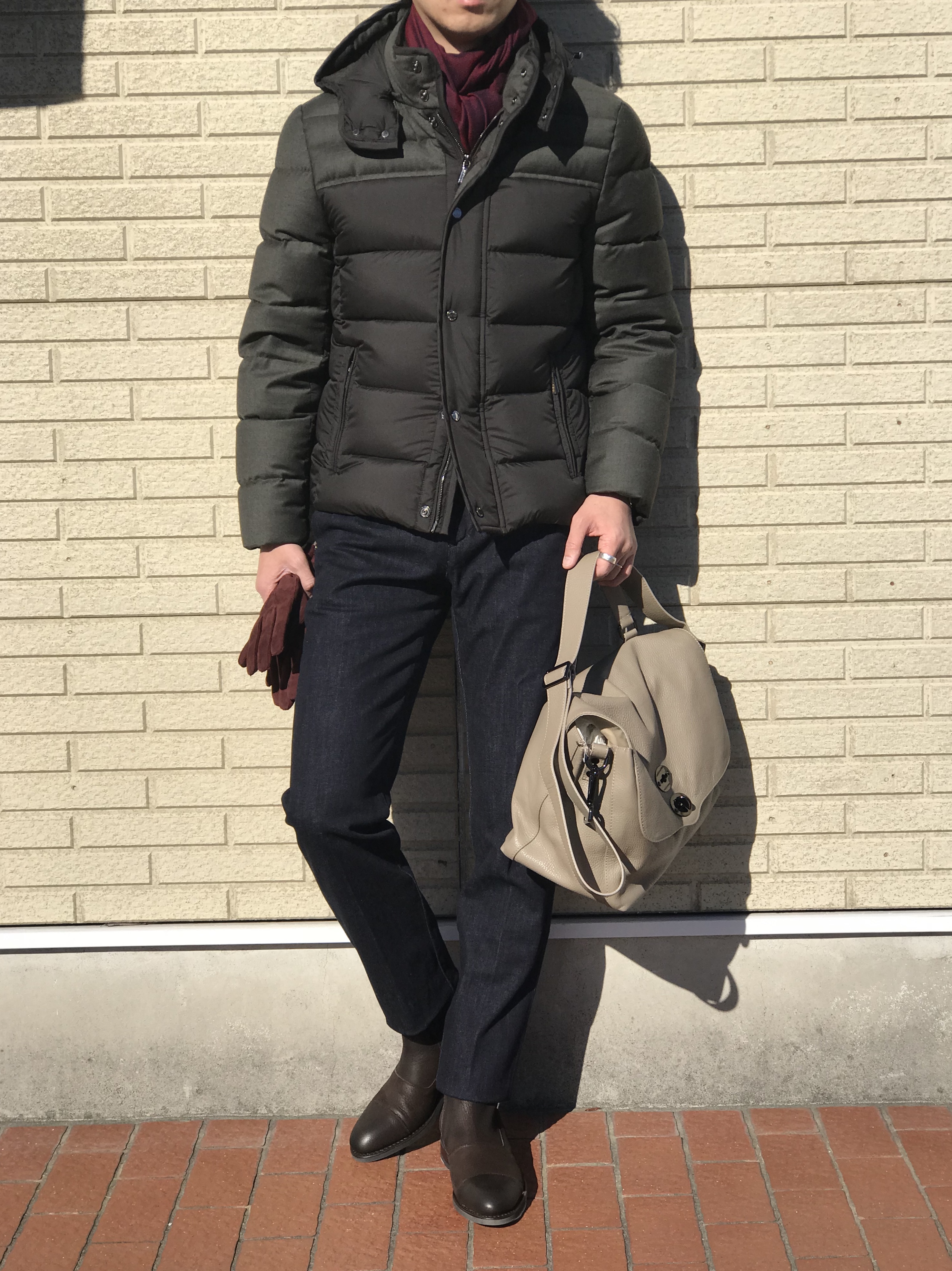 MODEL:「GHETTI-LL」ウール・ナイロン切替えフード付きダウンジャケット
