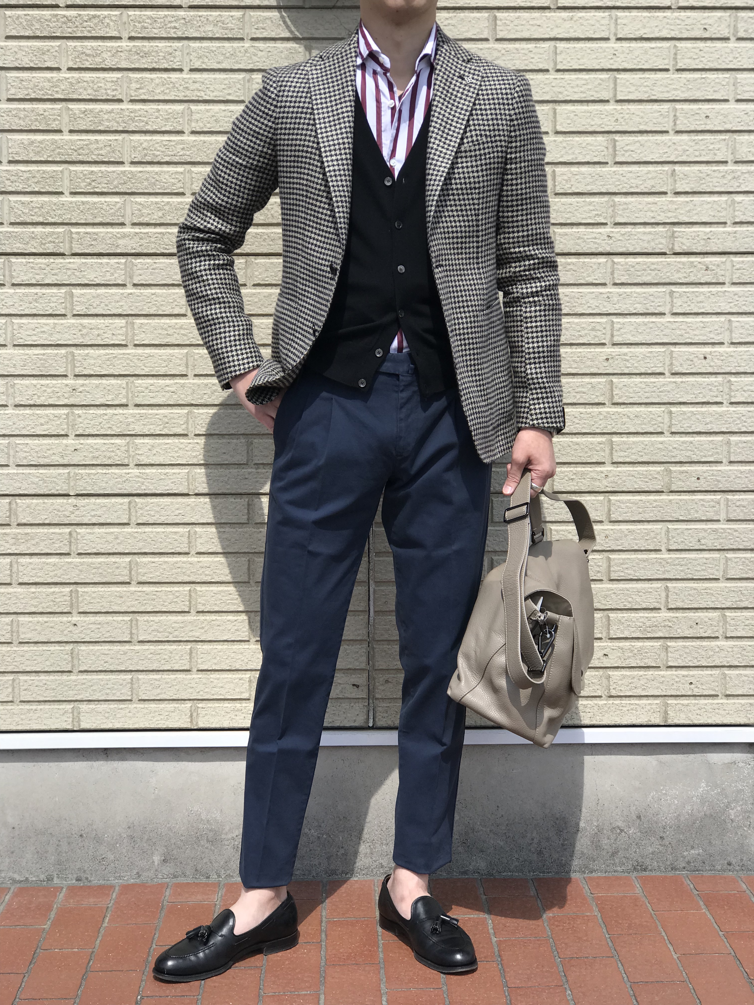 ブラックやネイビーでシックにまとめるのが気分です。