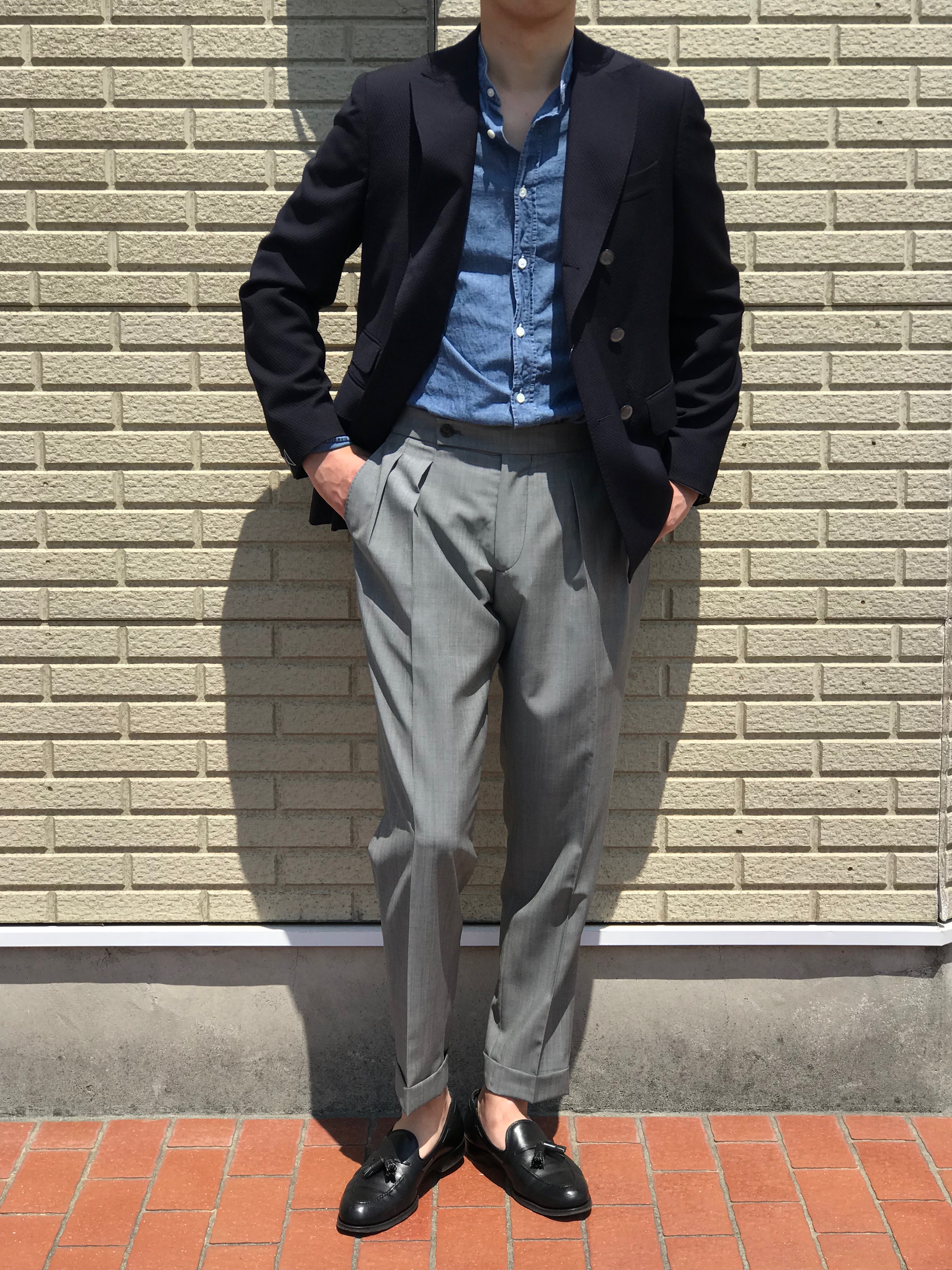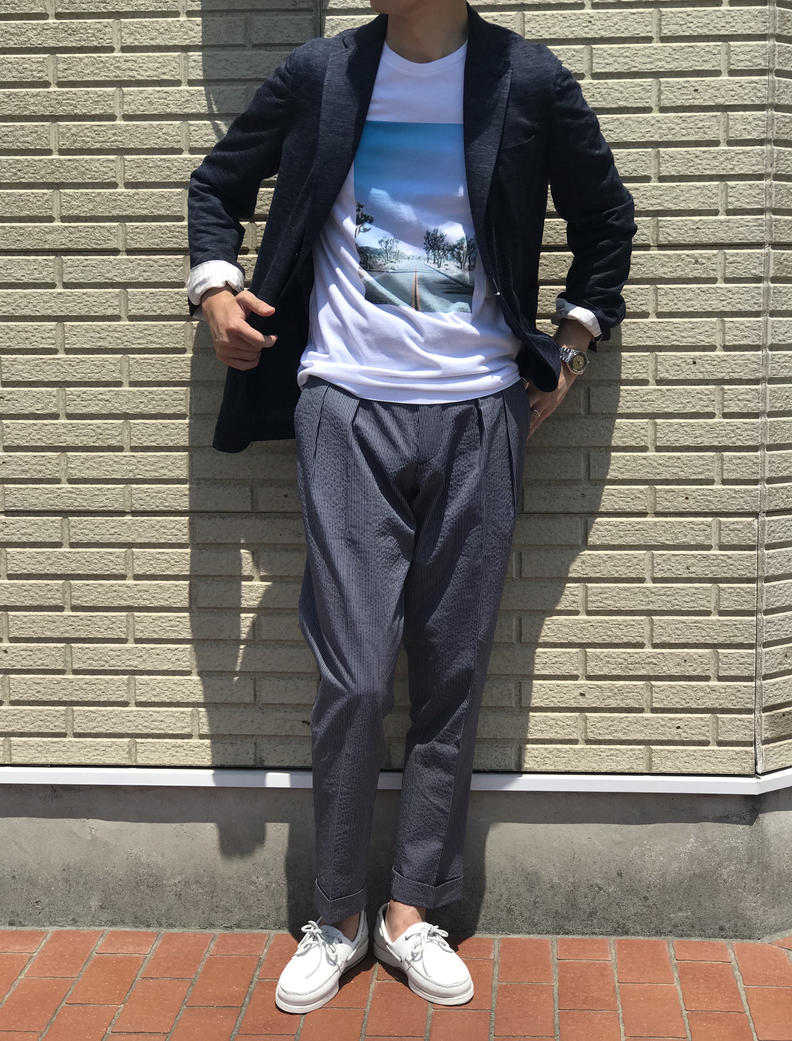 インナーはシャツではなくTシャツで、シューズも革靴ではなくスニーカーが気分です。