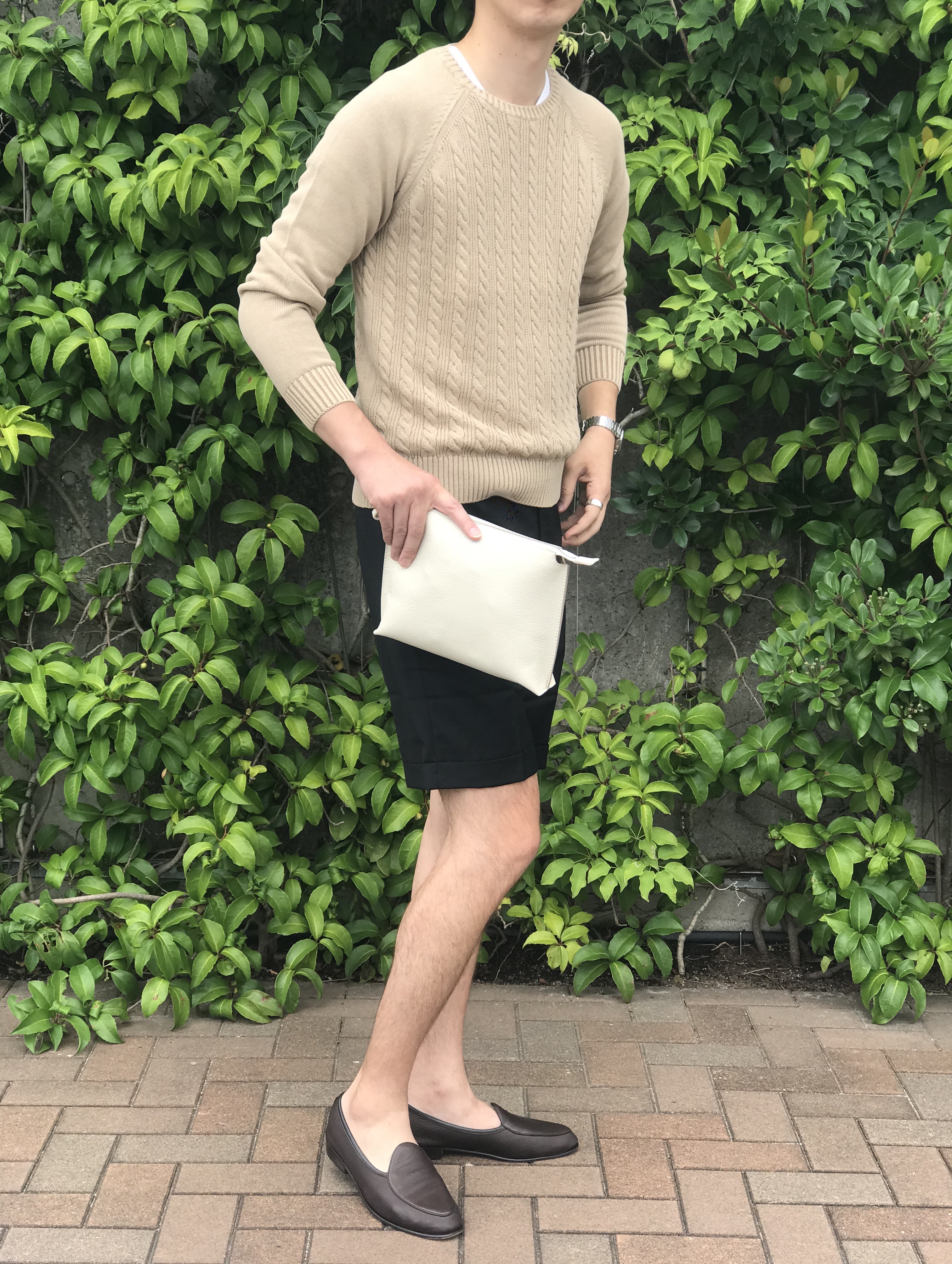 そして、ショーツを穿いたら、トップスには長袖を持ってくるのが大人の鉄則です。