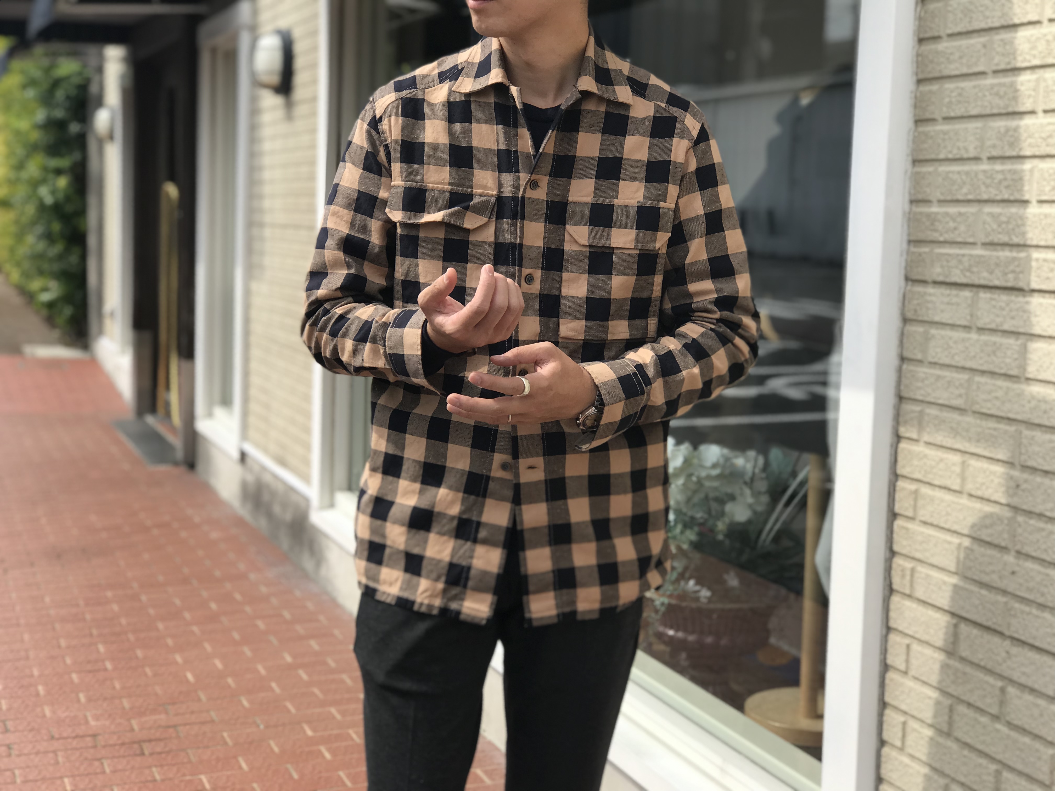 やや厚みのあるネル地は、この時期のアウターとして最適です。