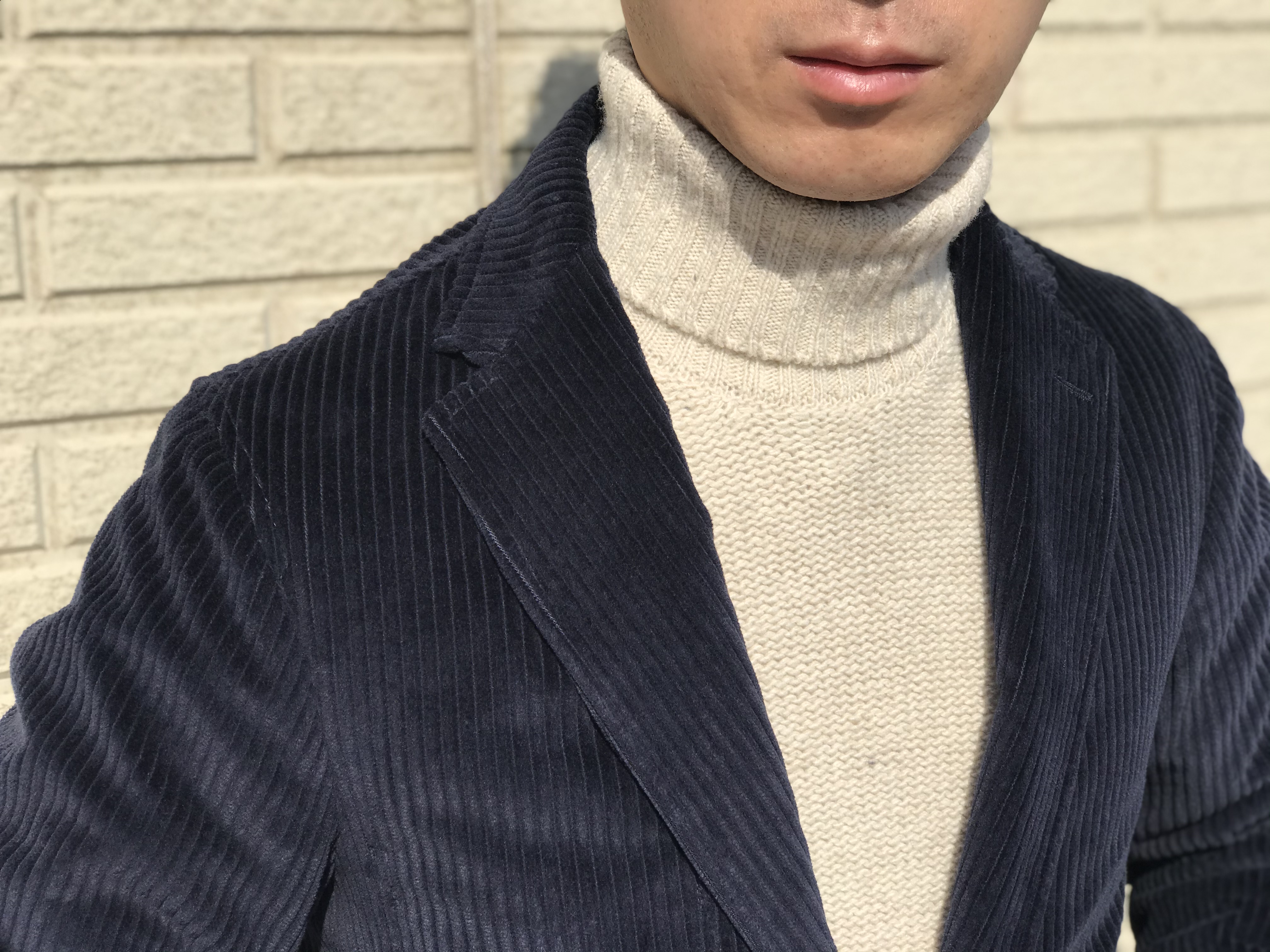 ジャケットは、デニムとかウールパンツもありですね。仕事にもどうですか?