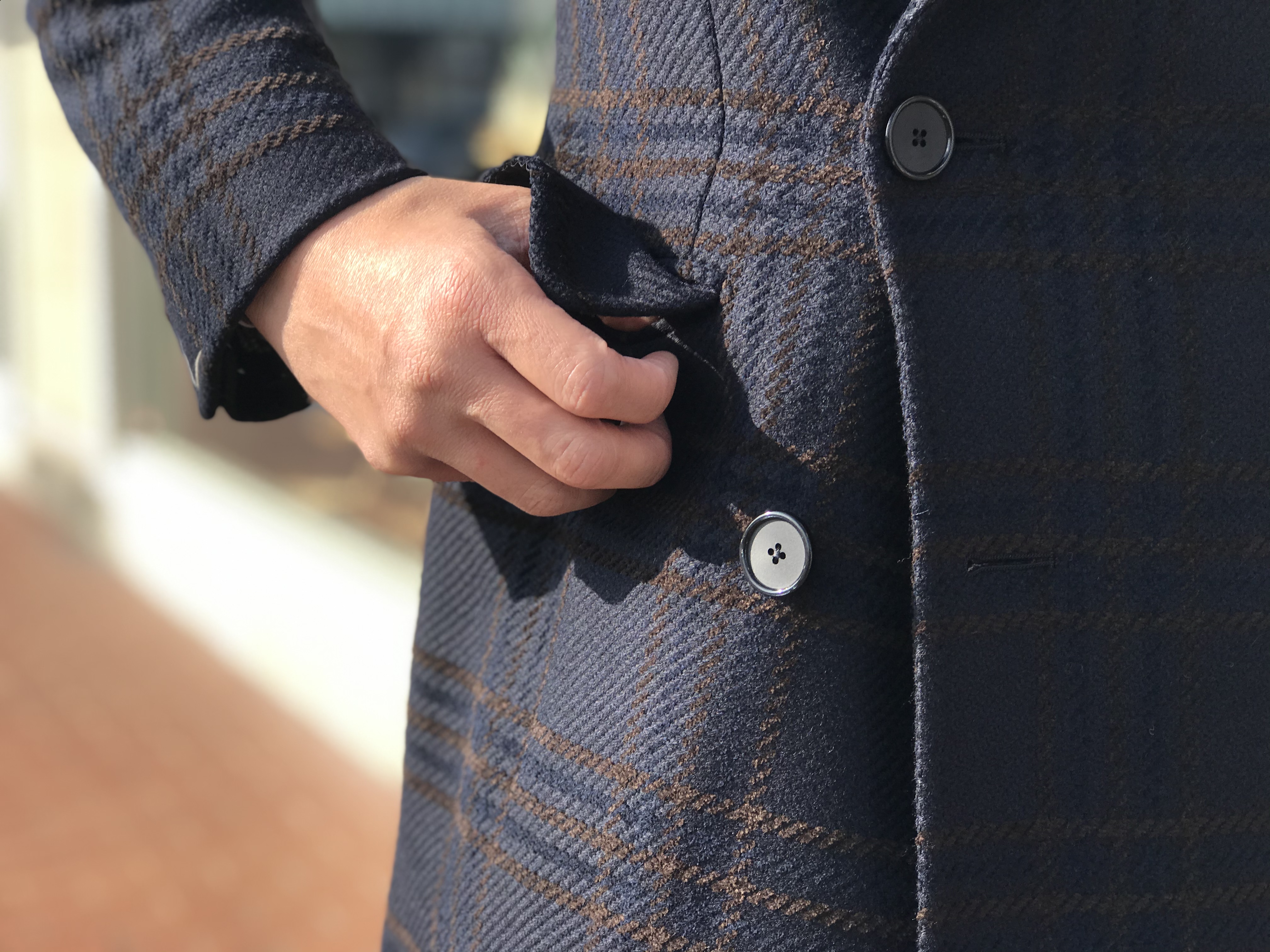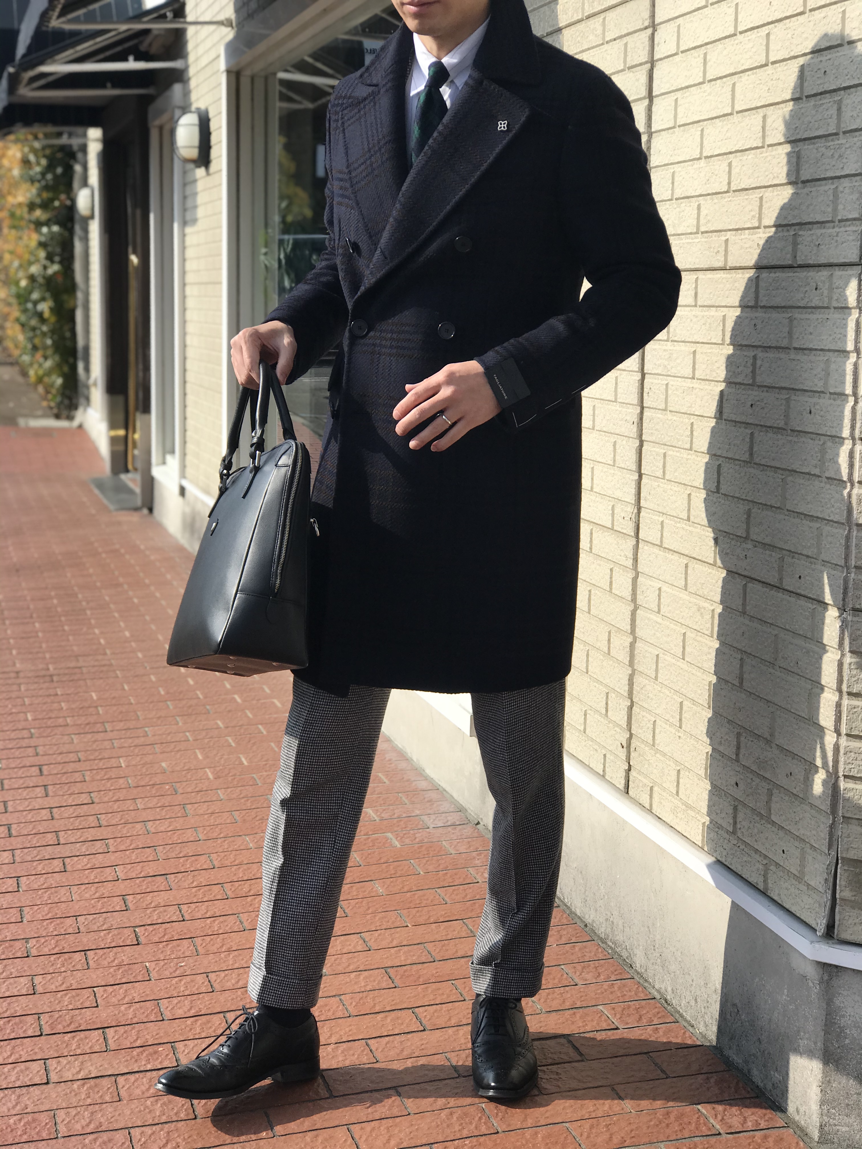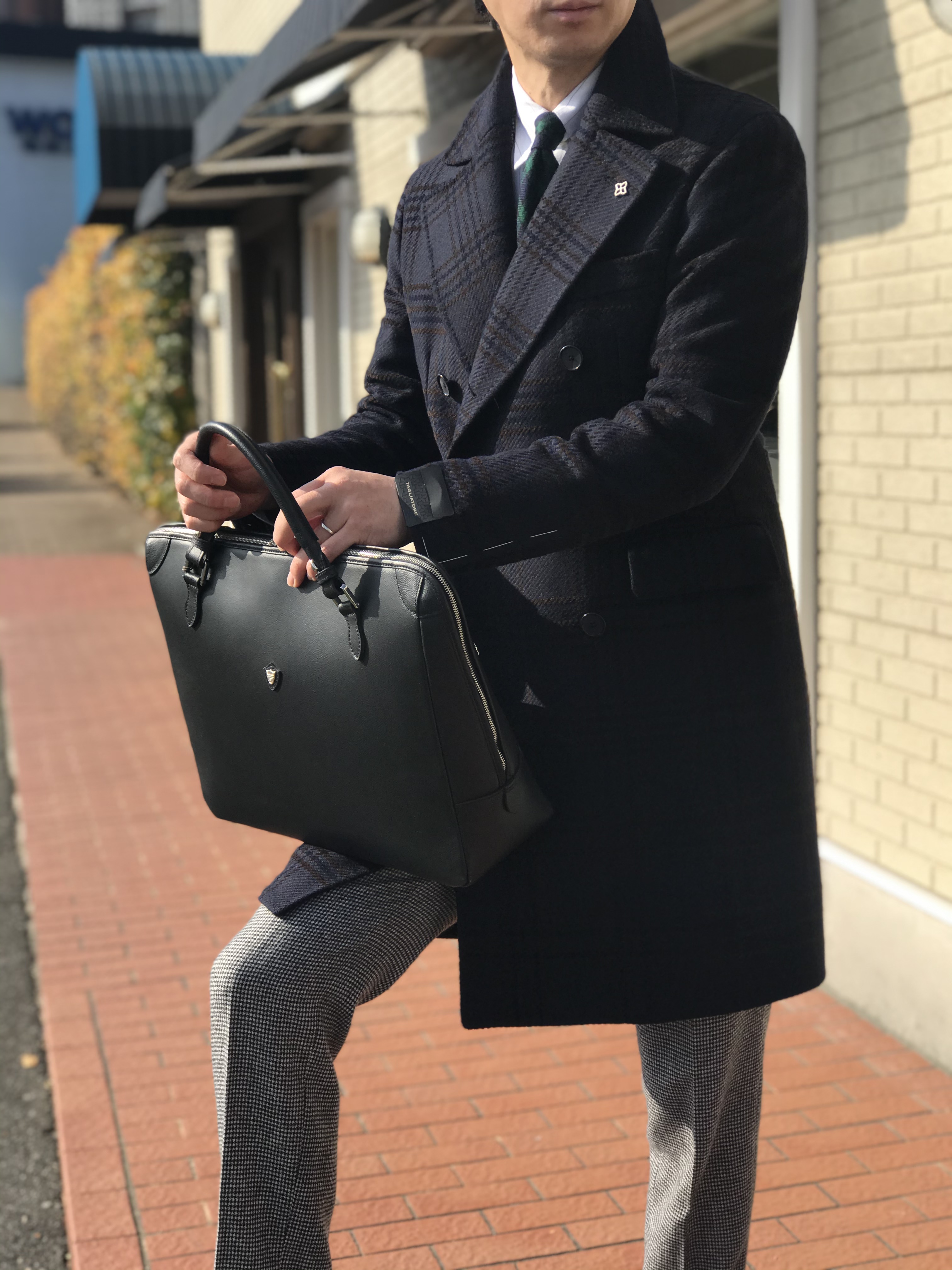 選んだのはTAGLIATOREのネイビーチェック柄アルスターコート。