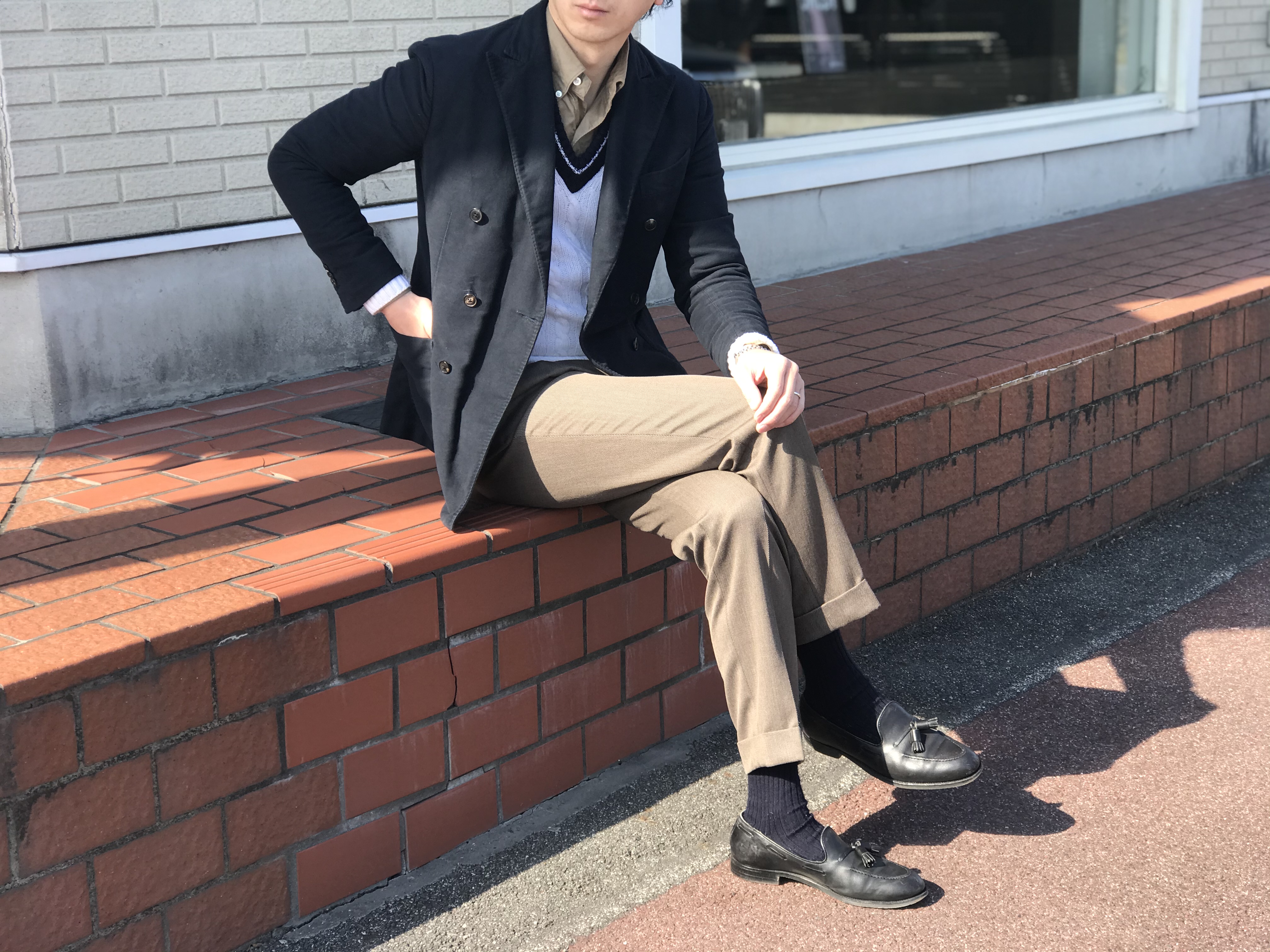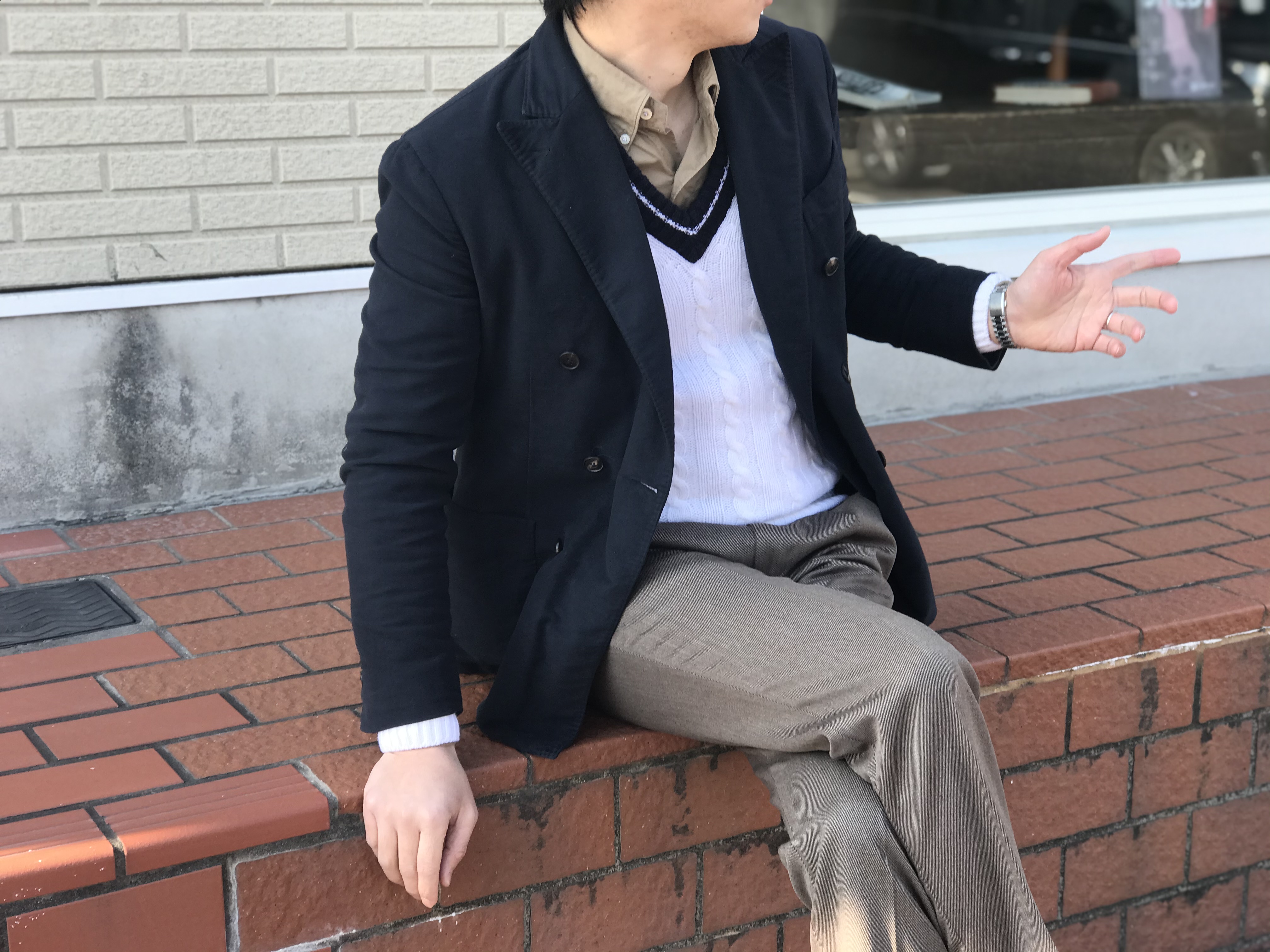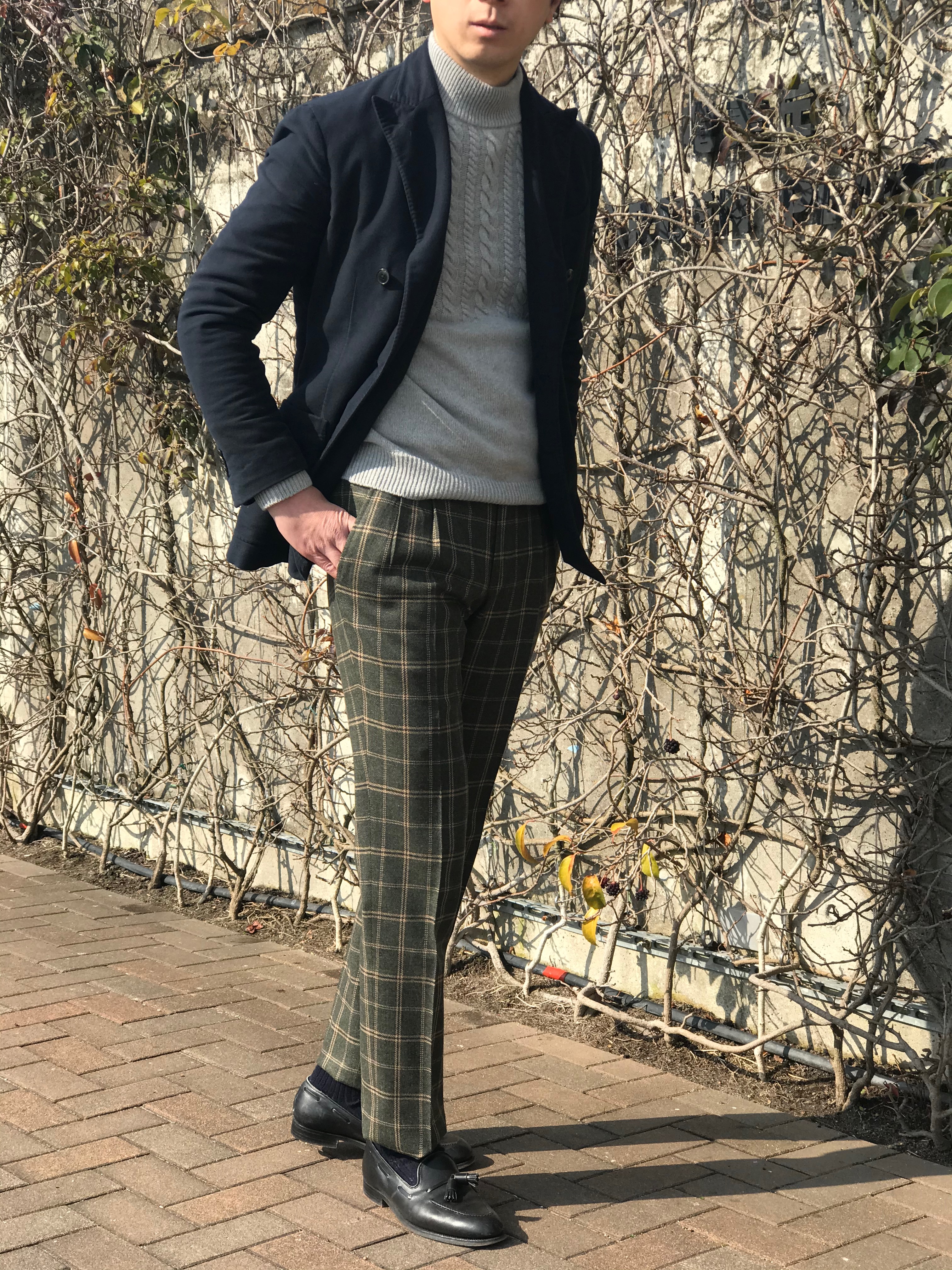 Takai(以下T):今日の僕です。ジャケットはBOGLIOLIのダブル、パンツはVIGANO。