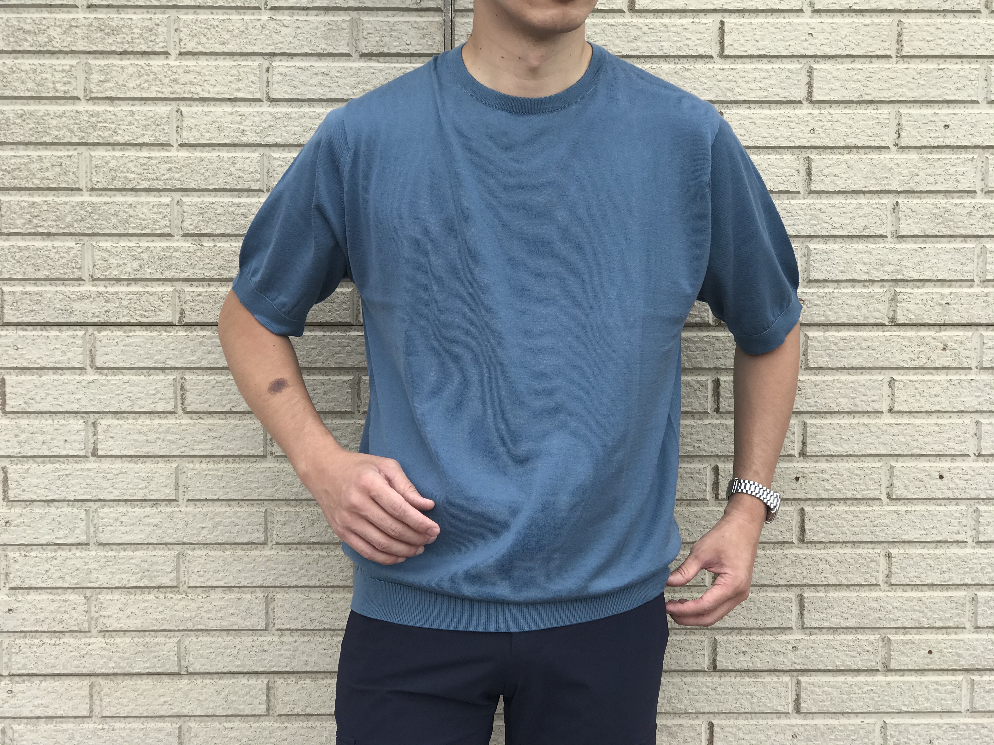 「BLUE WASH」と呼ばれる新色のブルーは、size:Lを着用。