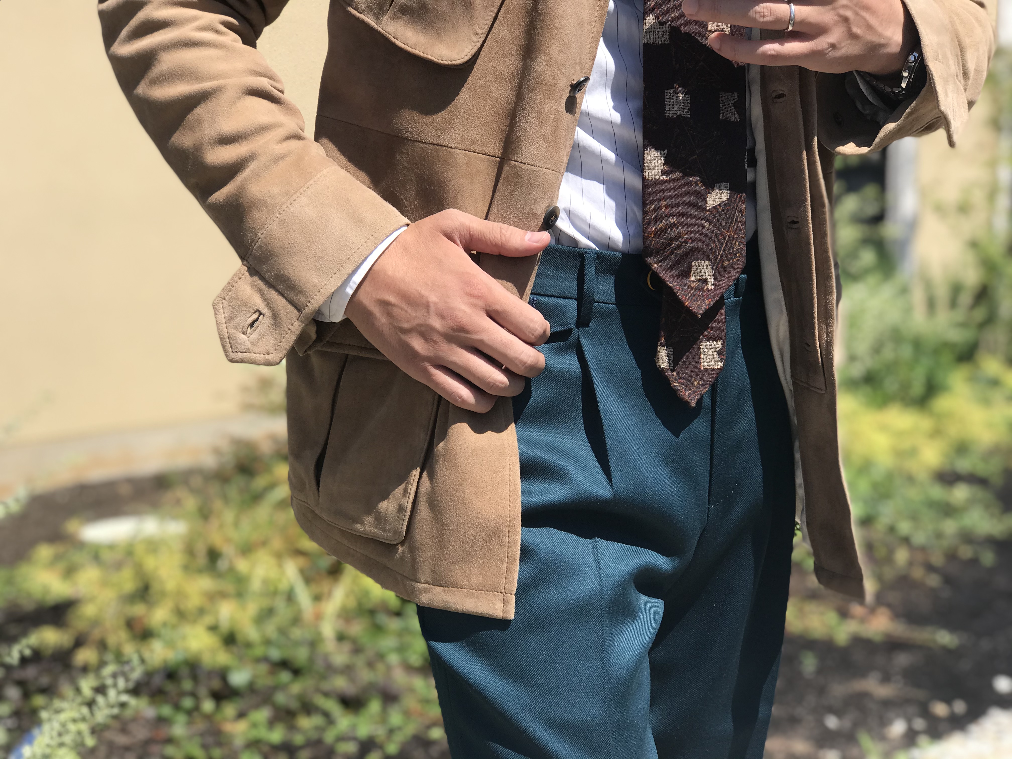 コーディネートしたのは、【CINQUANTA】「H-717」ゴートスウェード M-65型ジャケット。
