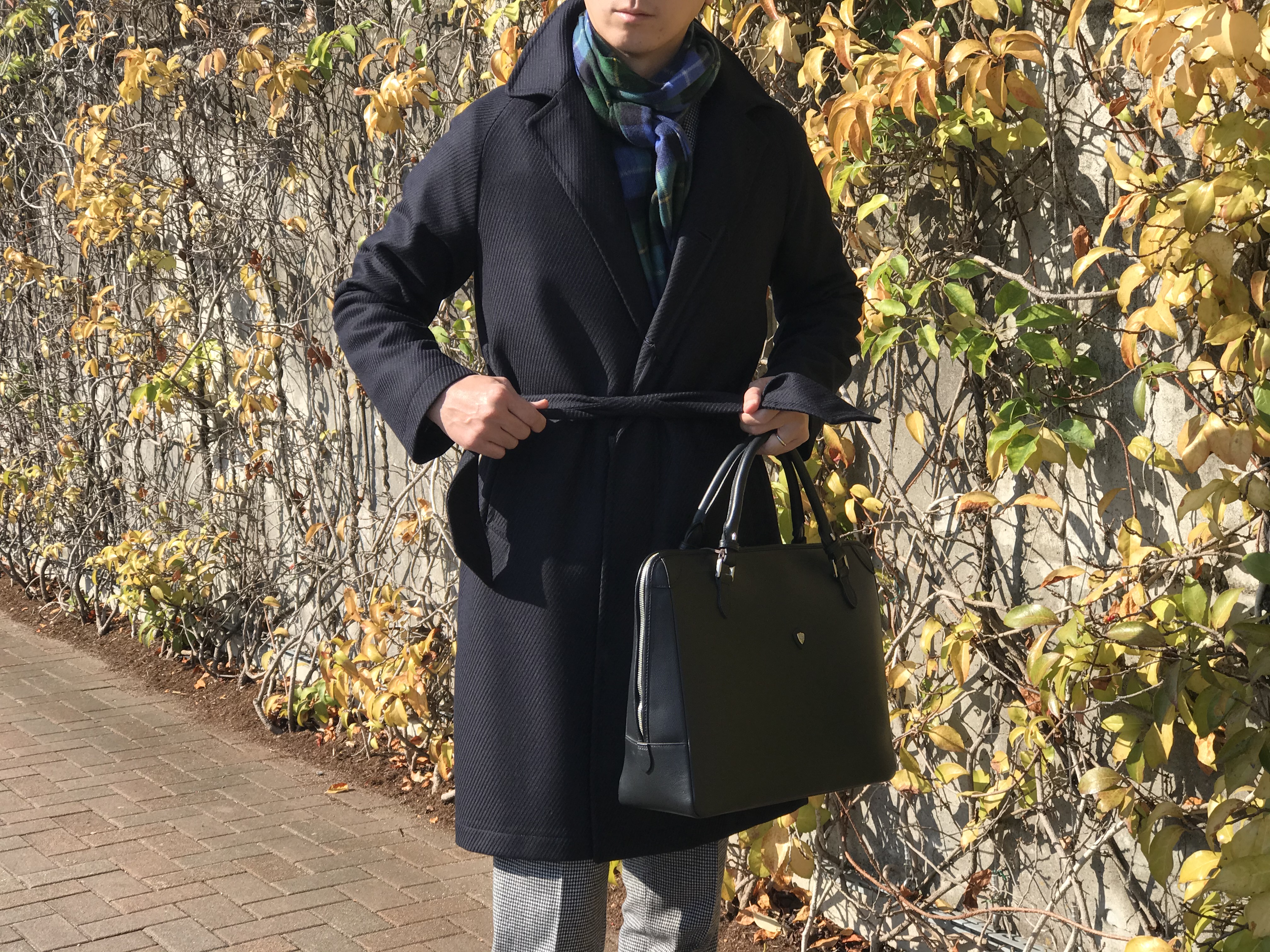 MODEL:「SALOMON/S」ダイヤゴナル柄ベルト付きバルカラーコート