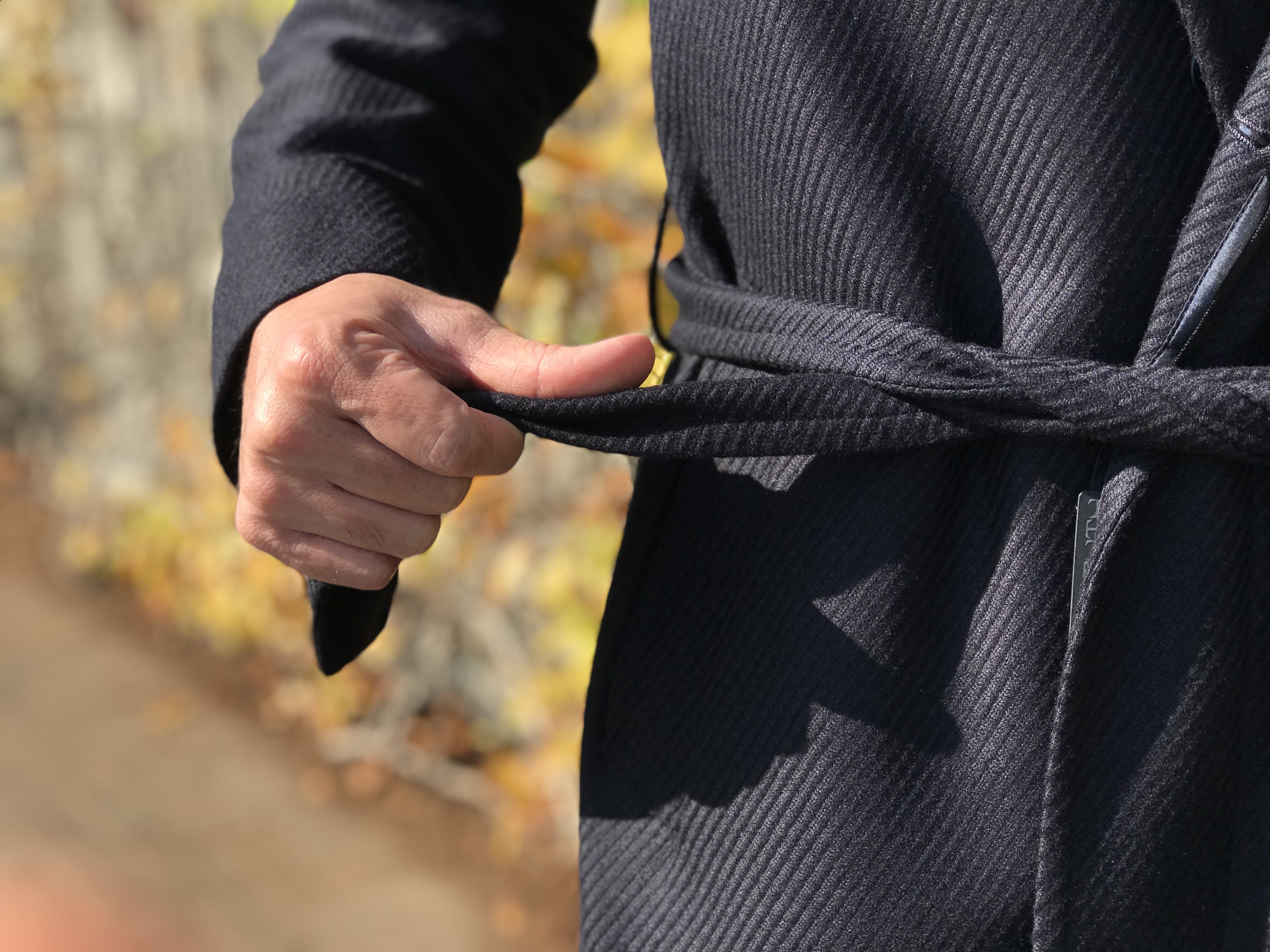 ウエストのベルトをギュッと絞ることで、