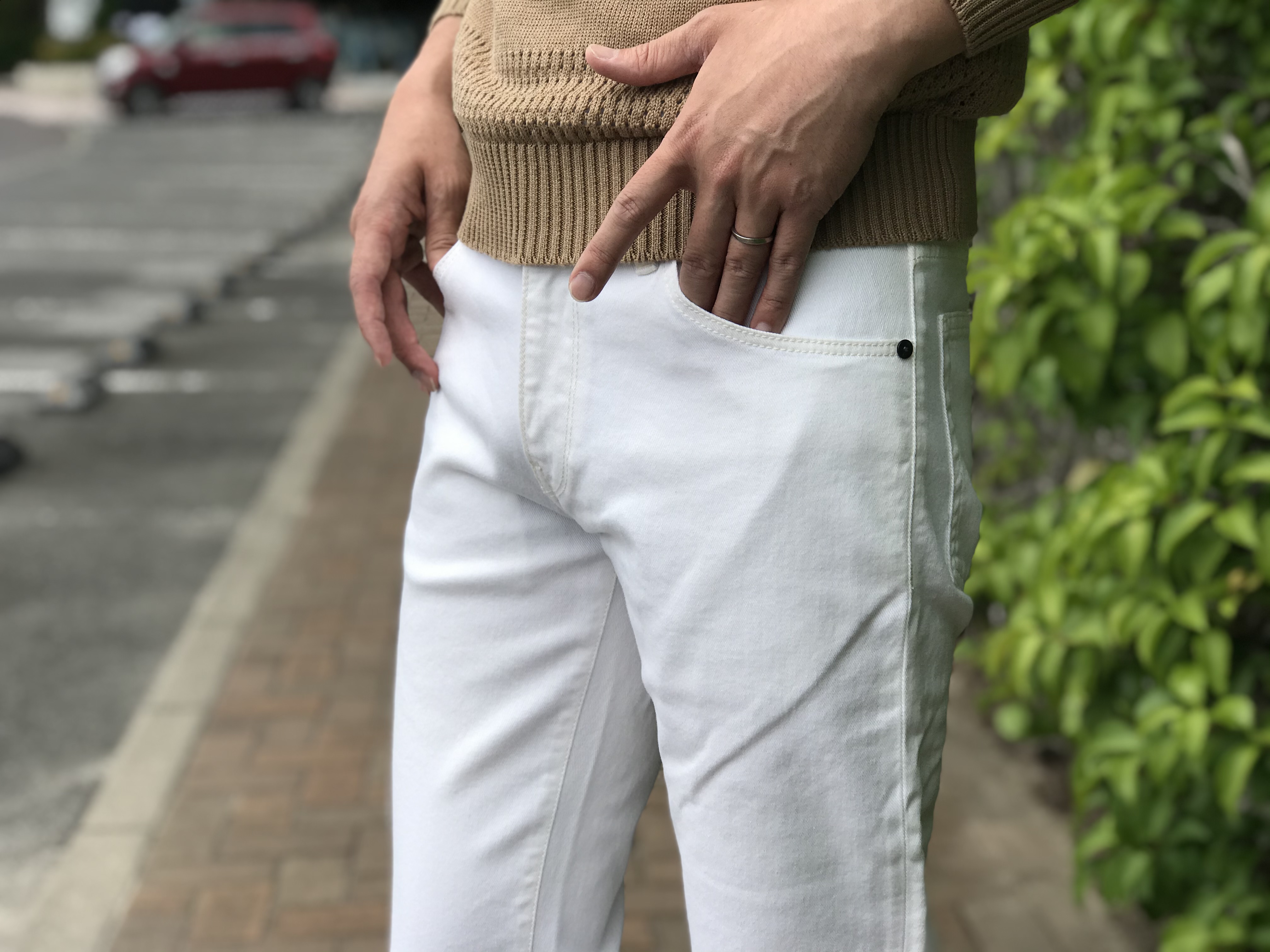 MODEL:「DENIM」SWING ストレッチホワイトデニム5Pパンツ
