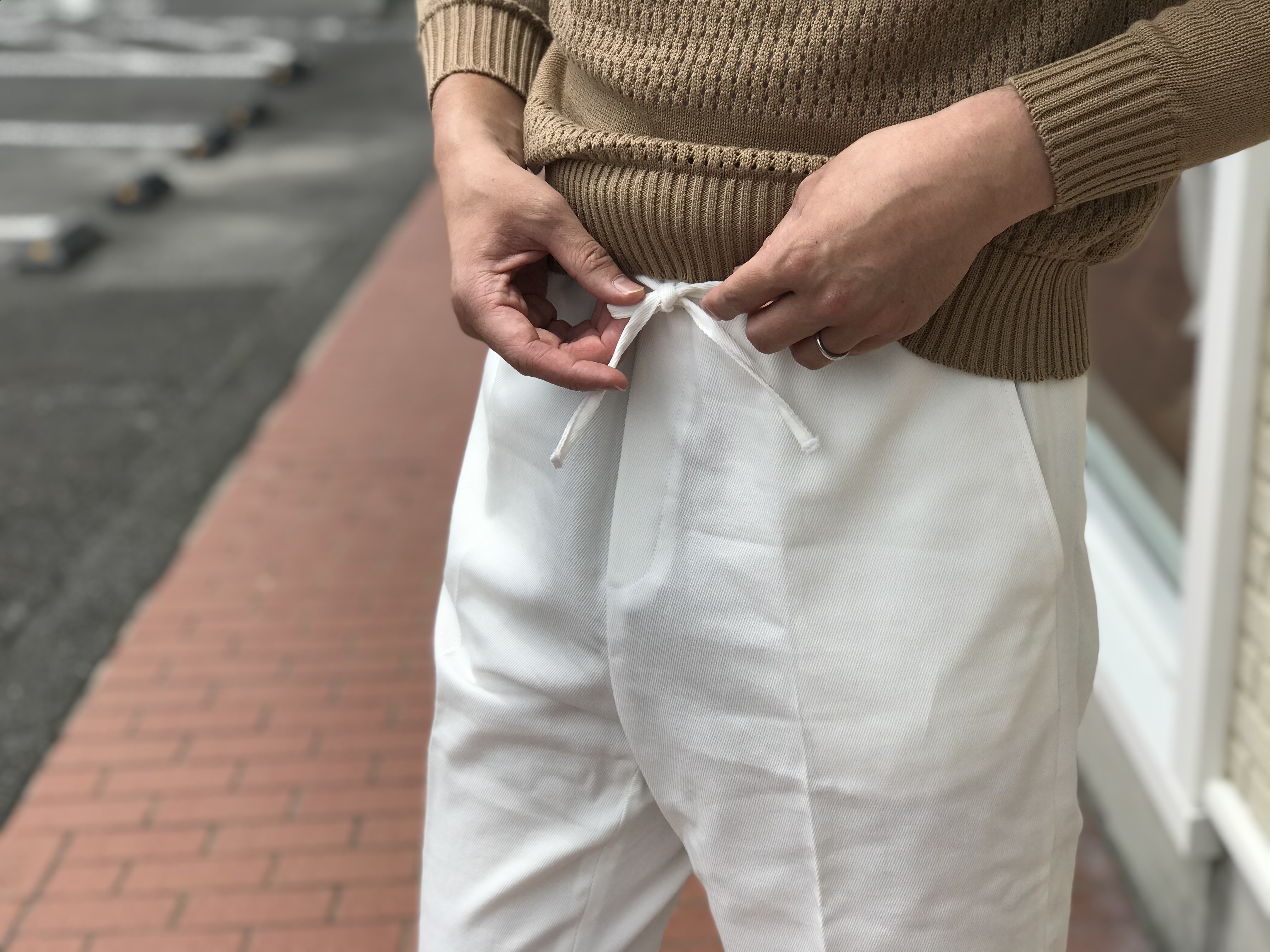 そこに上品さも兼ね備えたのが、こちらのパンツです。