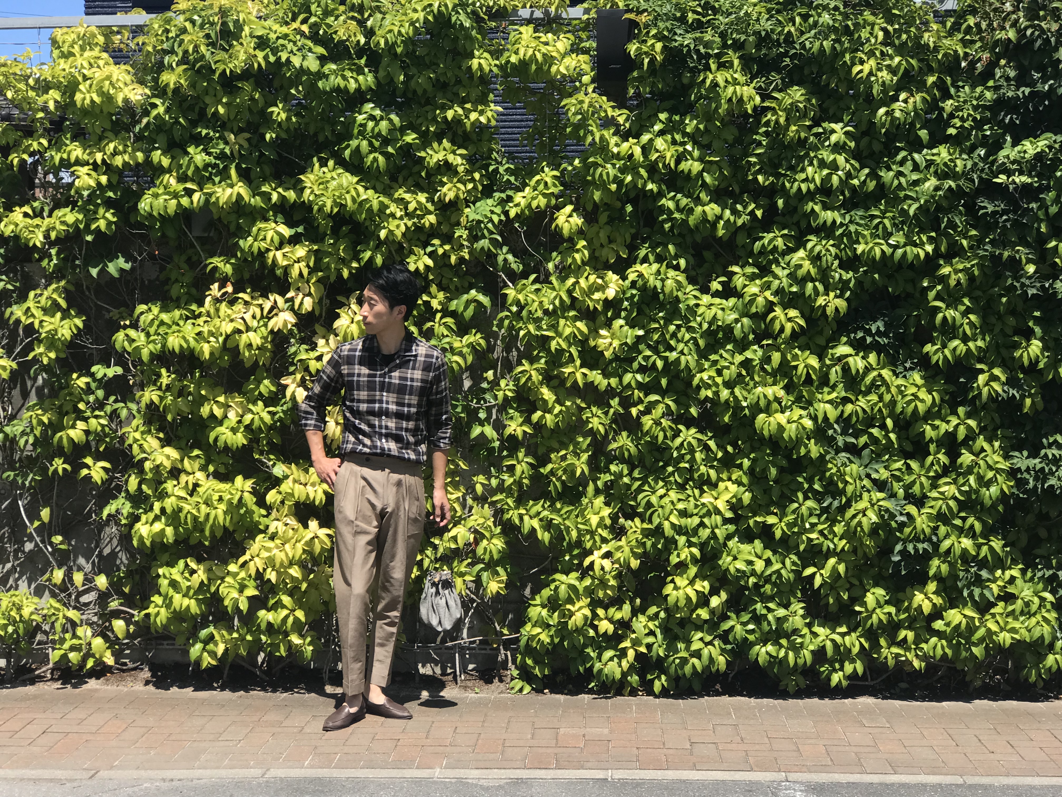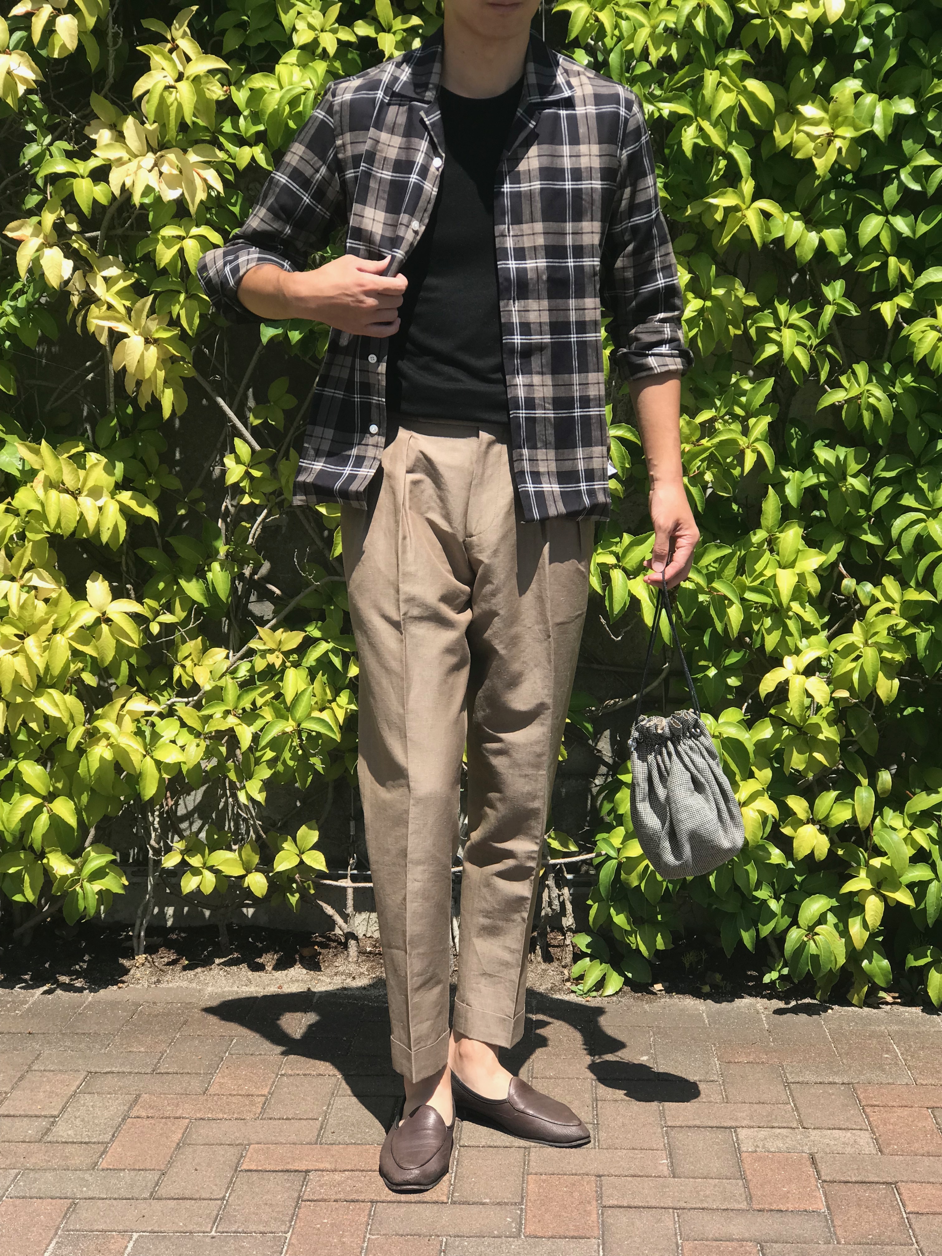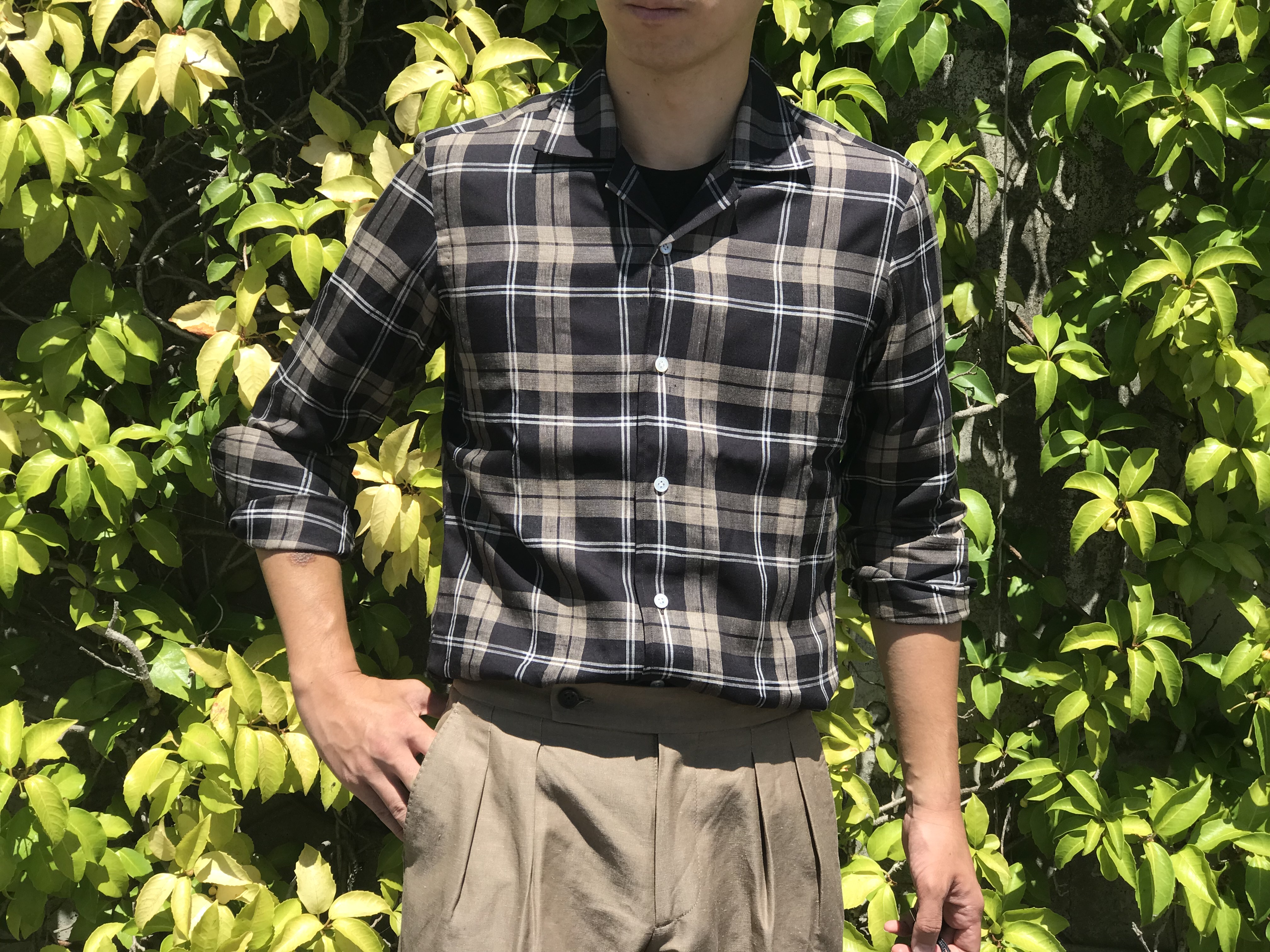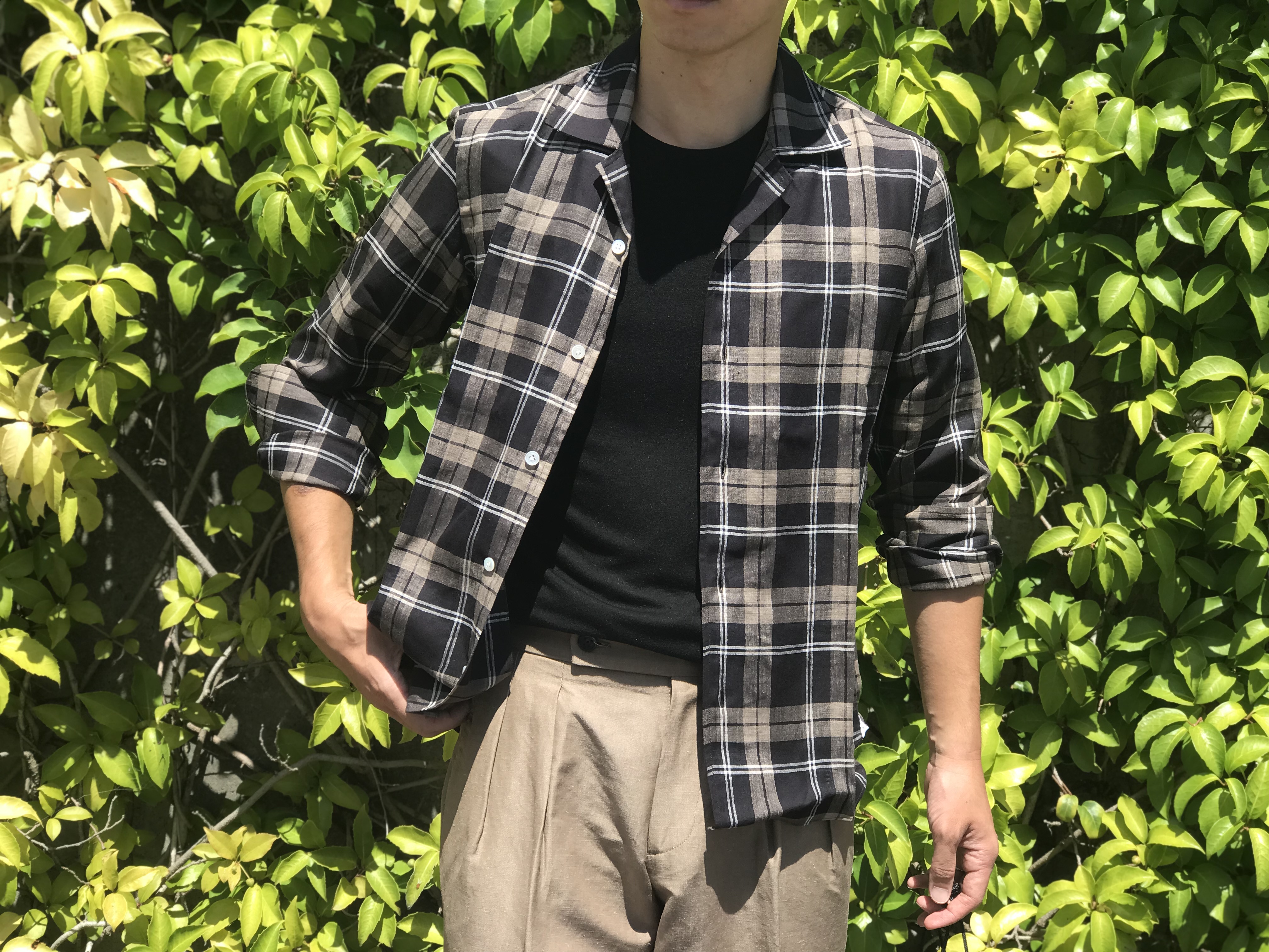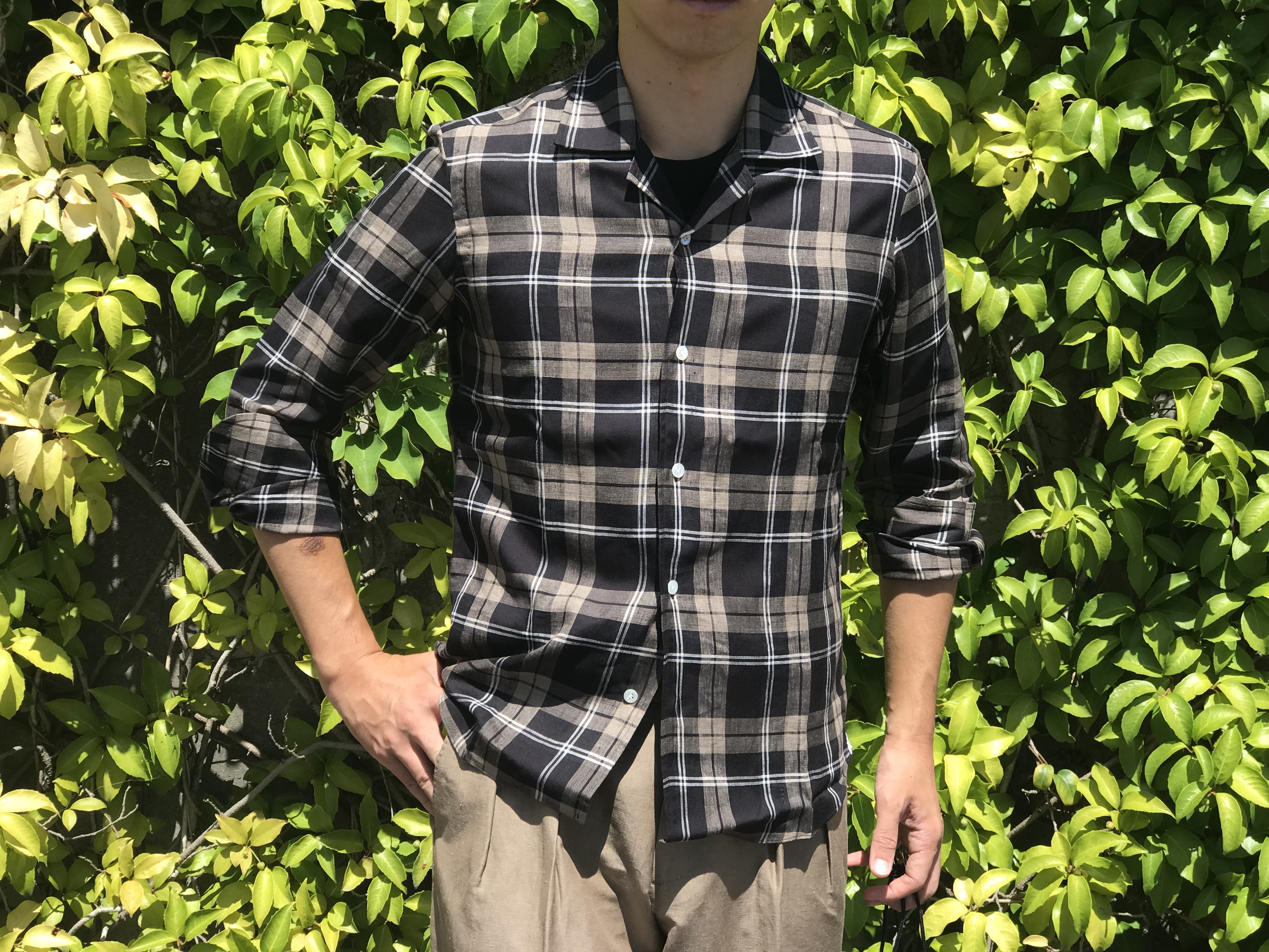 MODEL:「FIJI」リネン・リヨセル チェック柄オープンシャツ