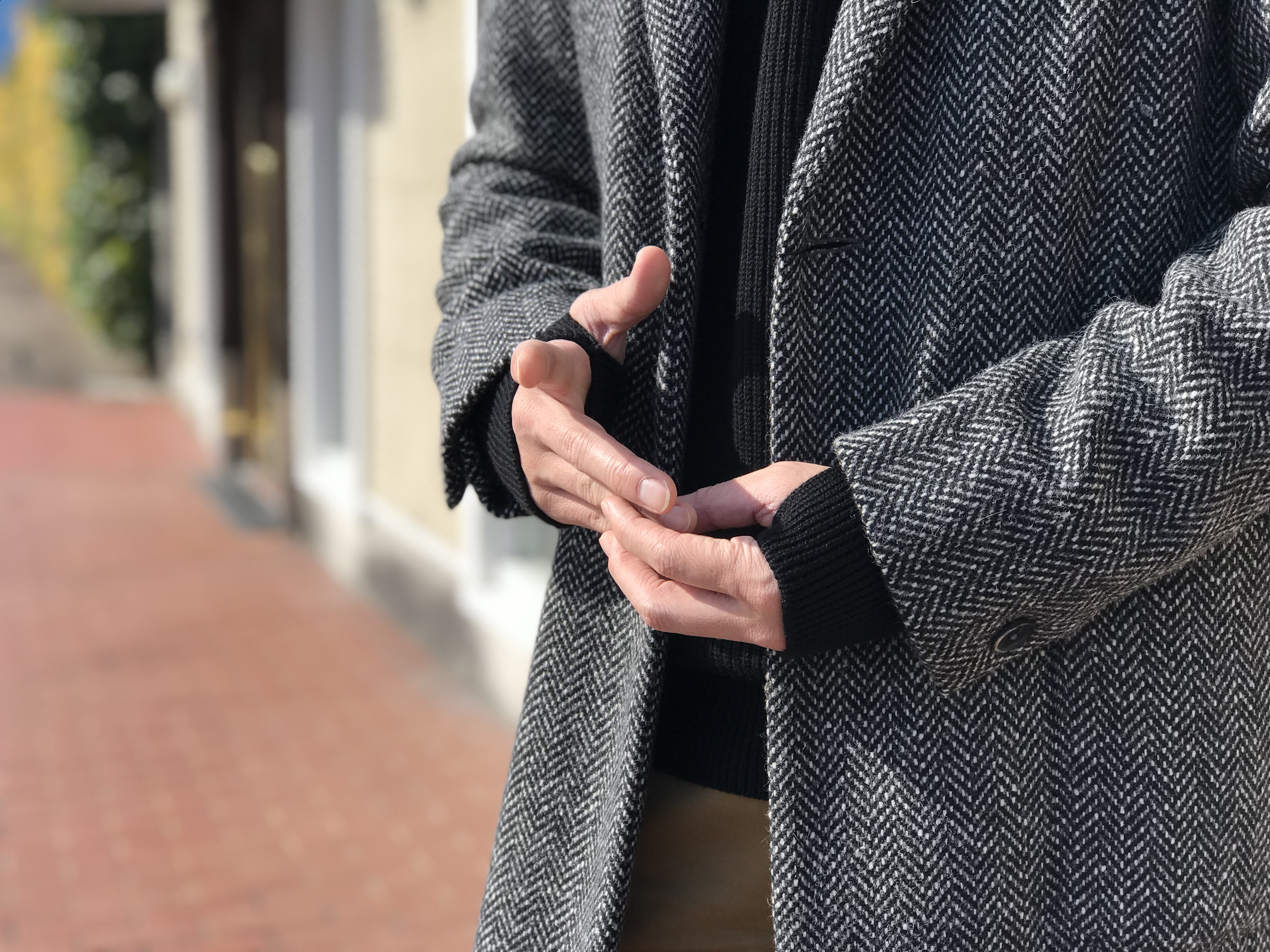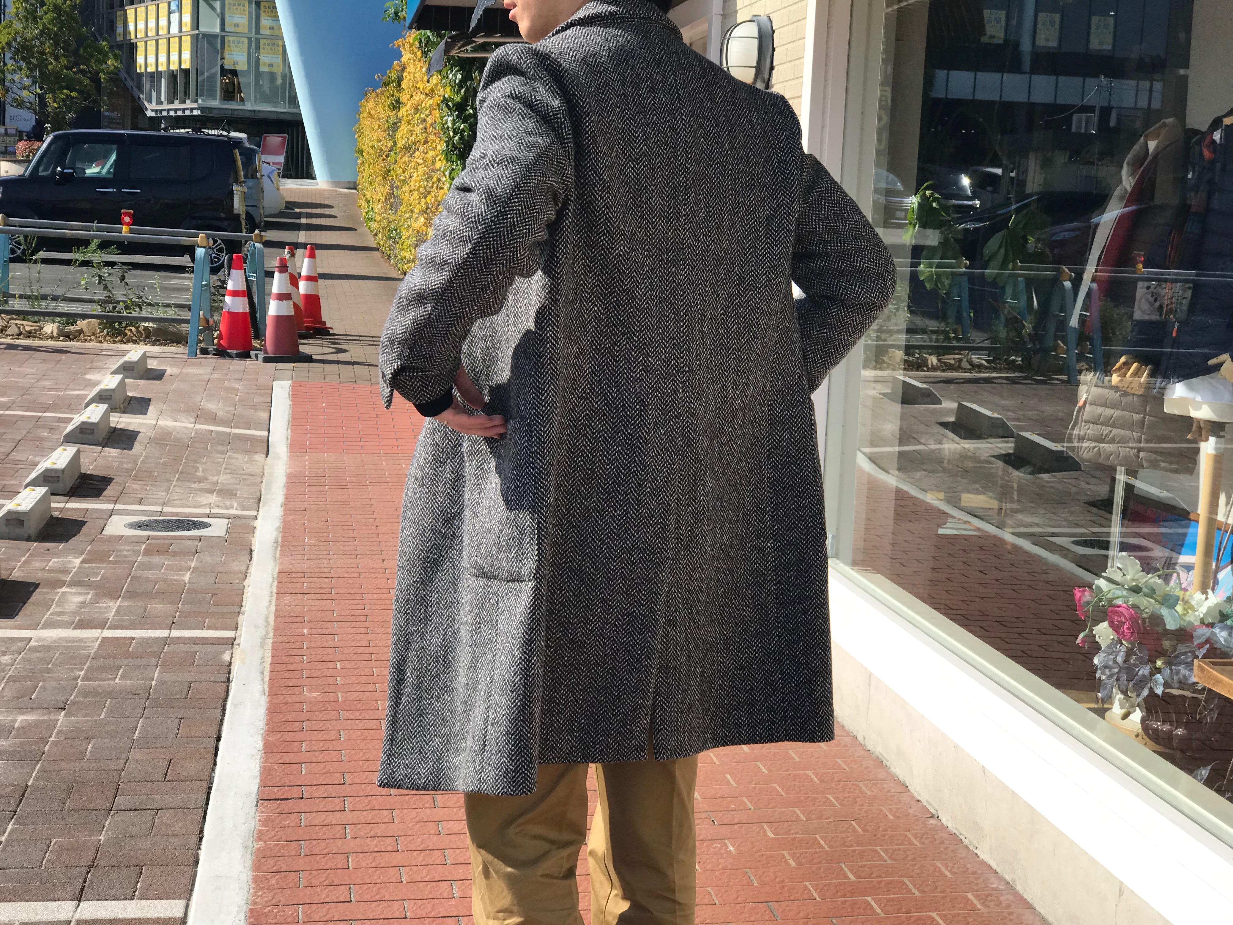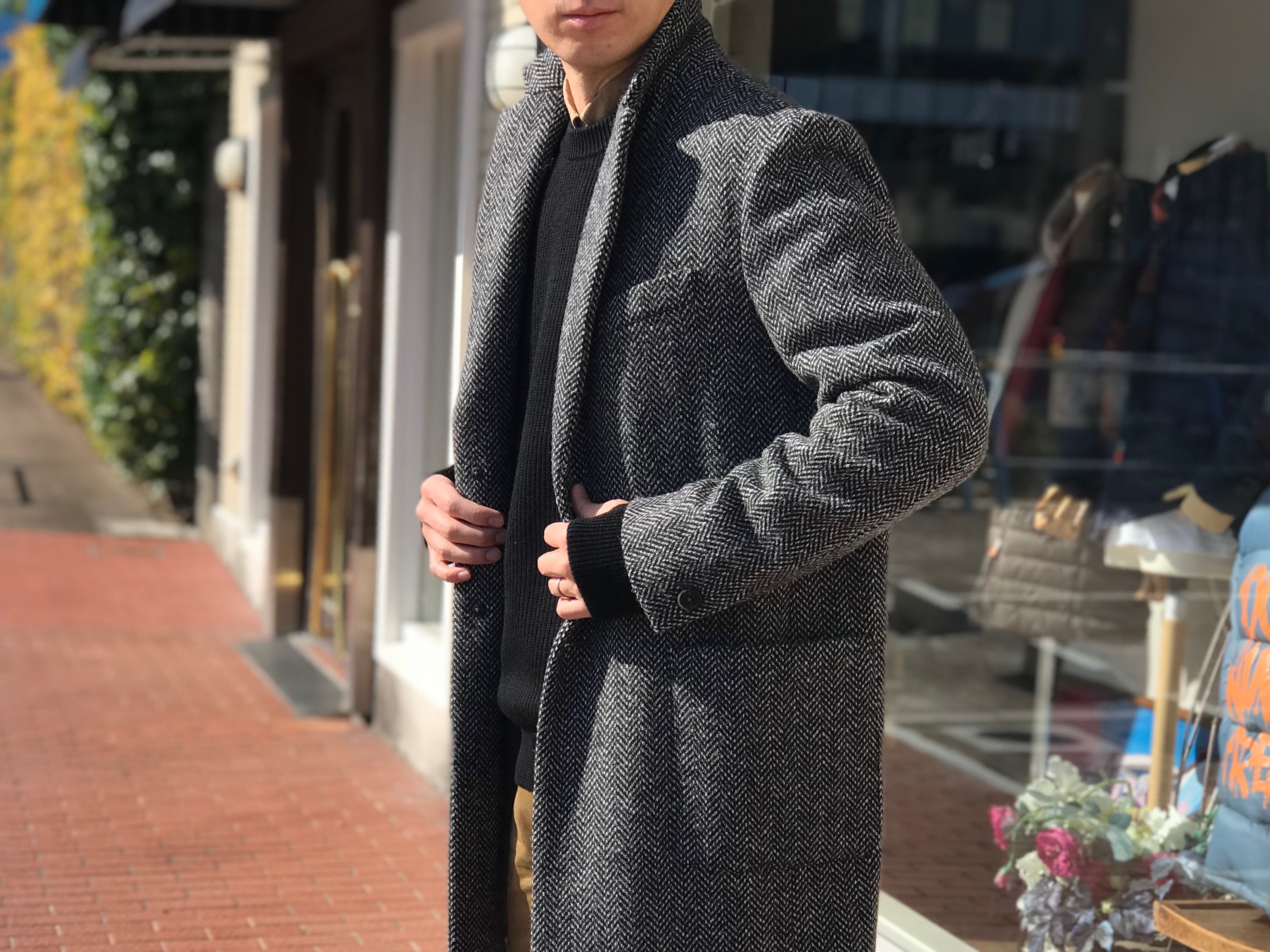 MODEL:ヘリンボーン柄シングルセミチェスターコート