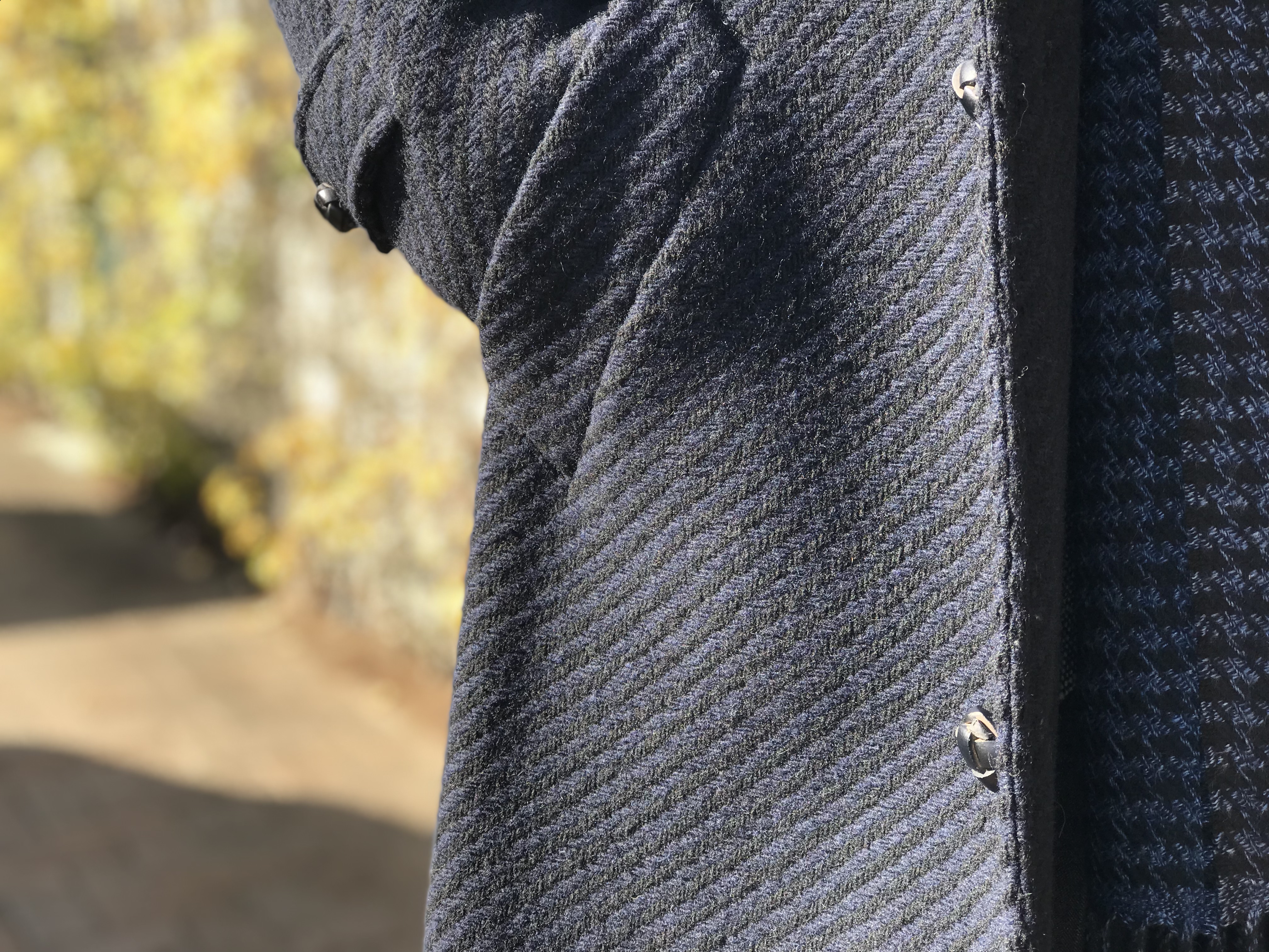 ダイアゴナル(斜め)に凹凸の織りが入ったウール100%の生地は、