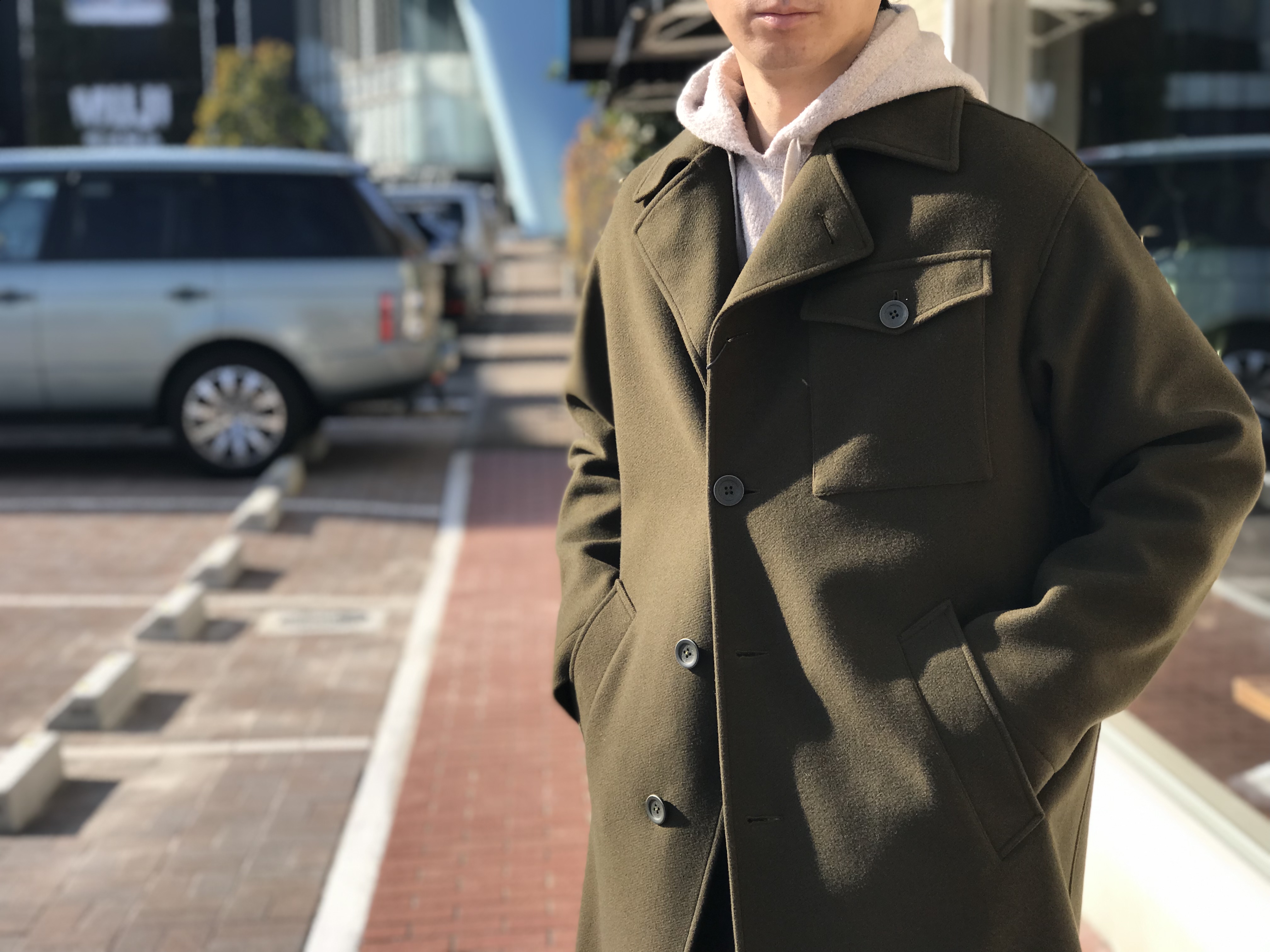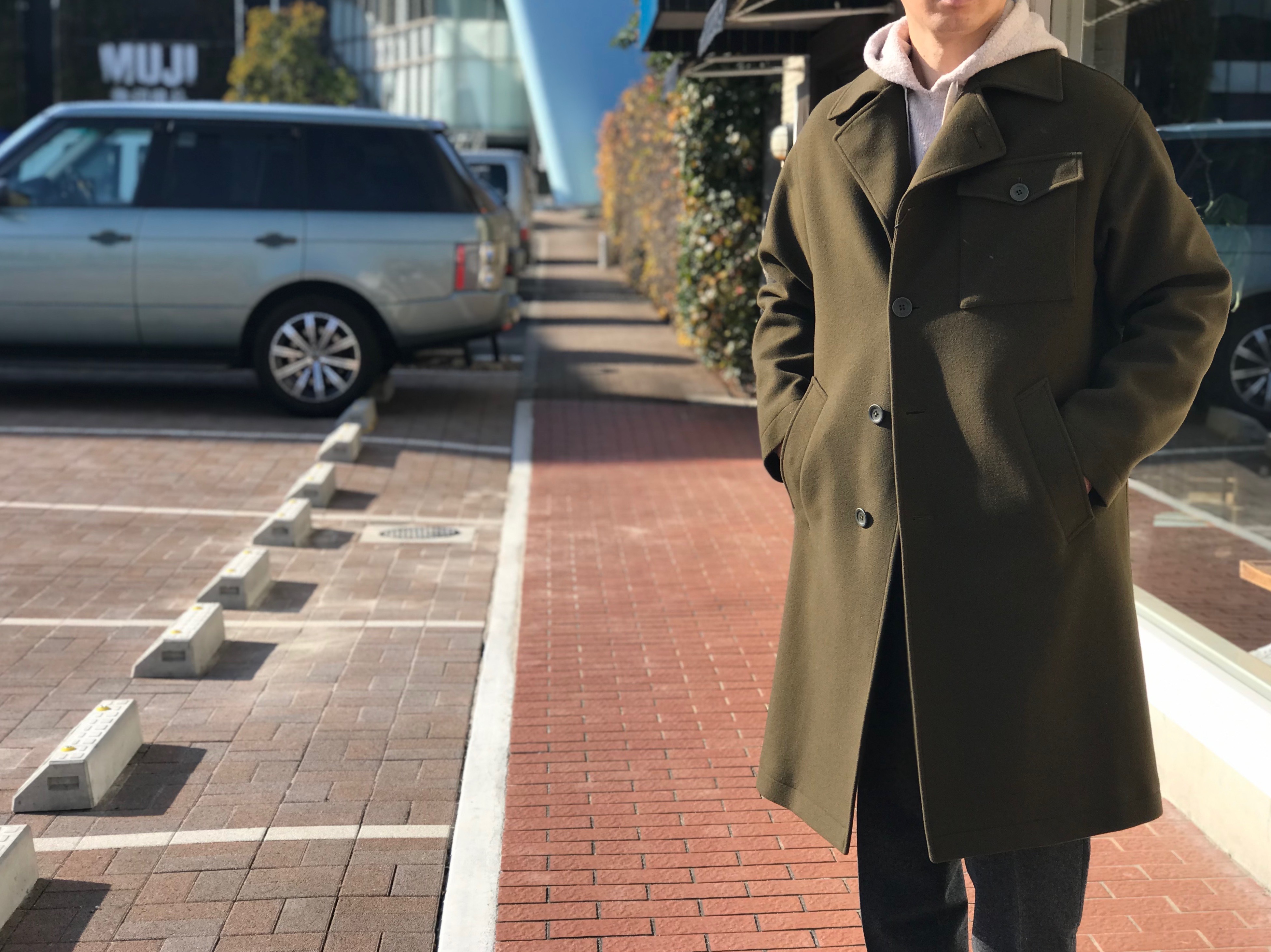 パーカコーデには、こんなコートが気分でしょうか。