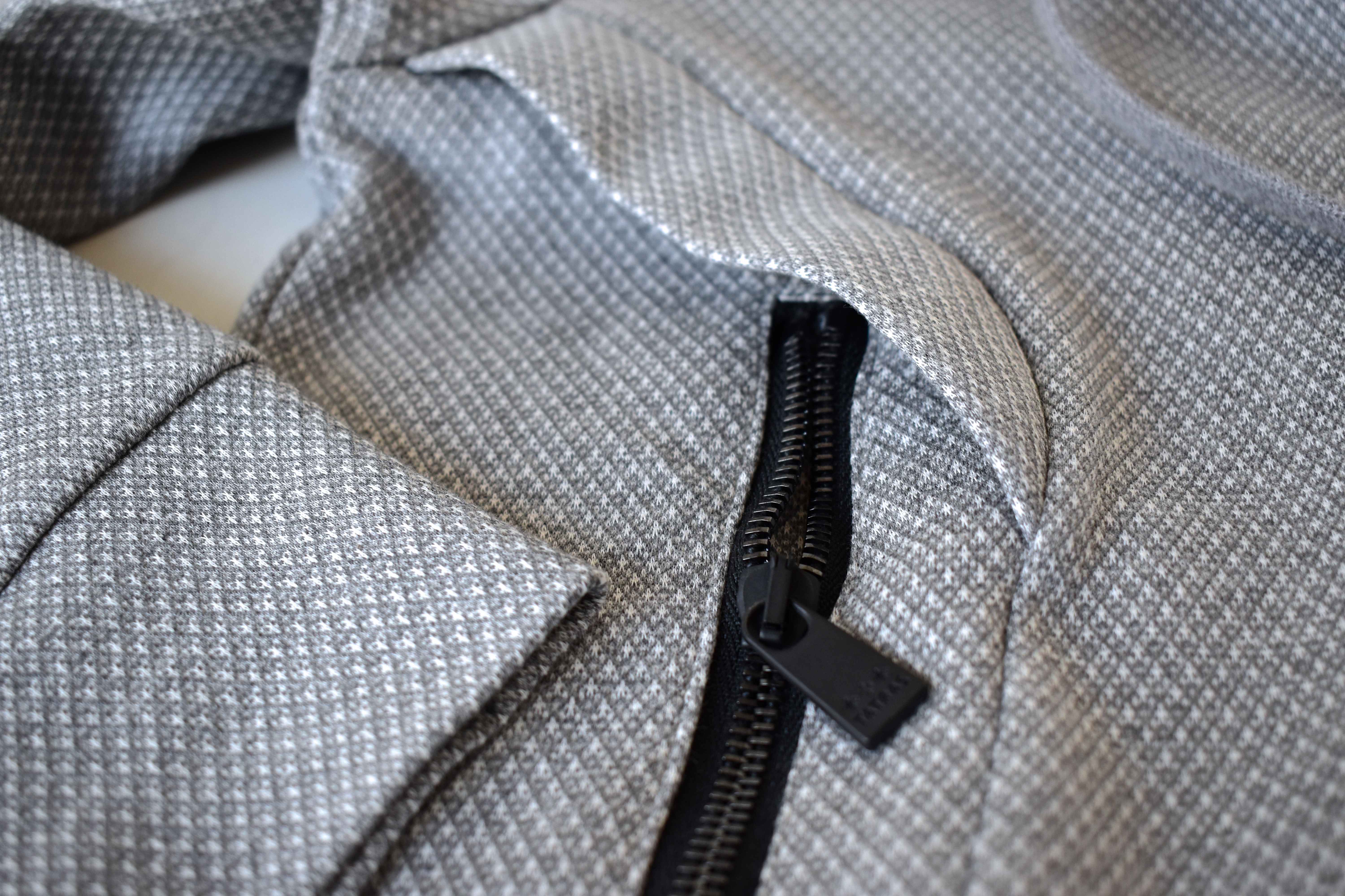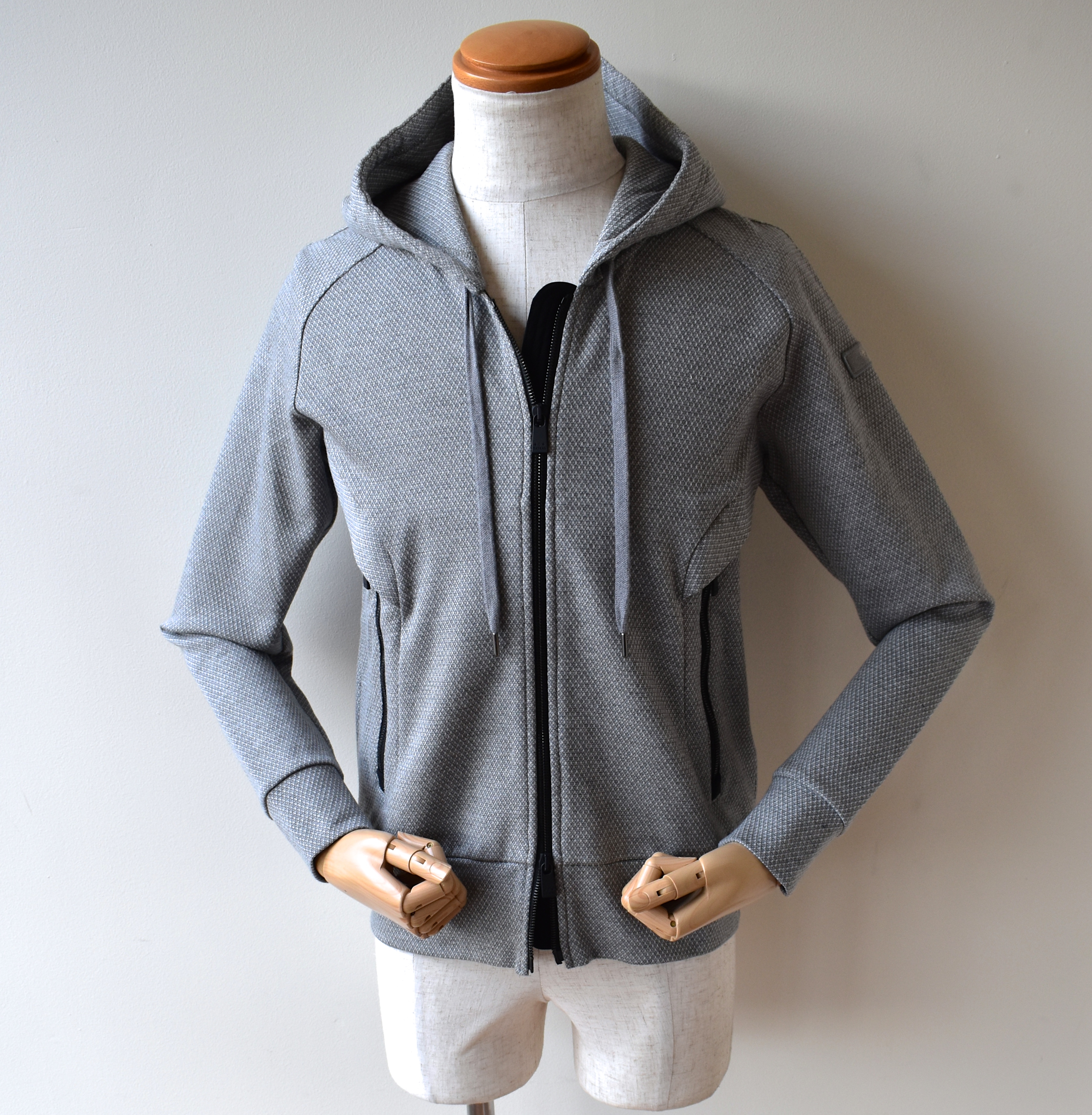 マイクロダイヤ柄がモードな雰囲気を醸し出します。各パーツまで行き届いた細かさ・美しさ。隙の見当たらないハイスペックパーカーです。