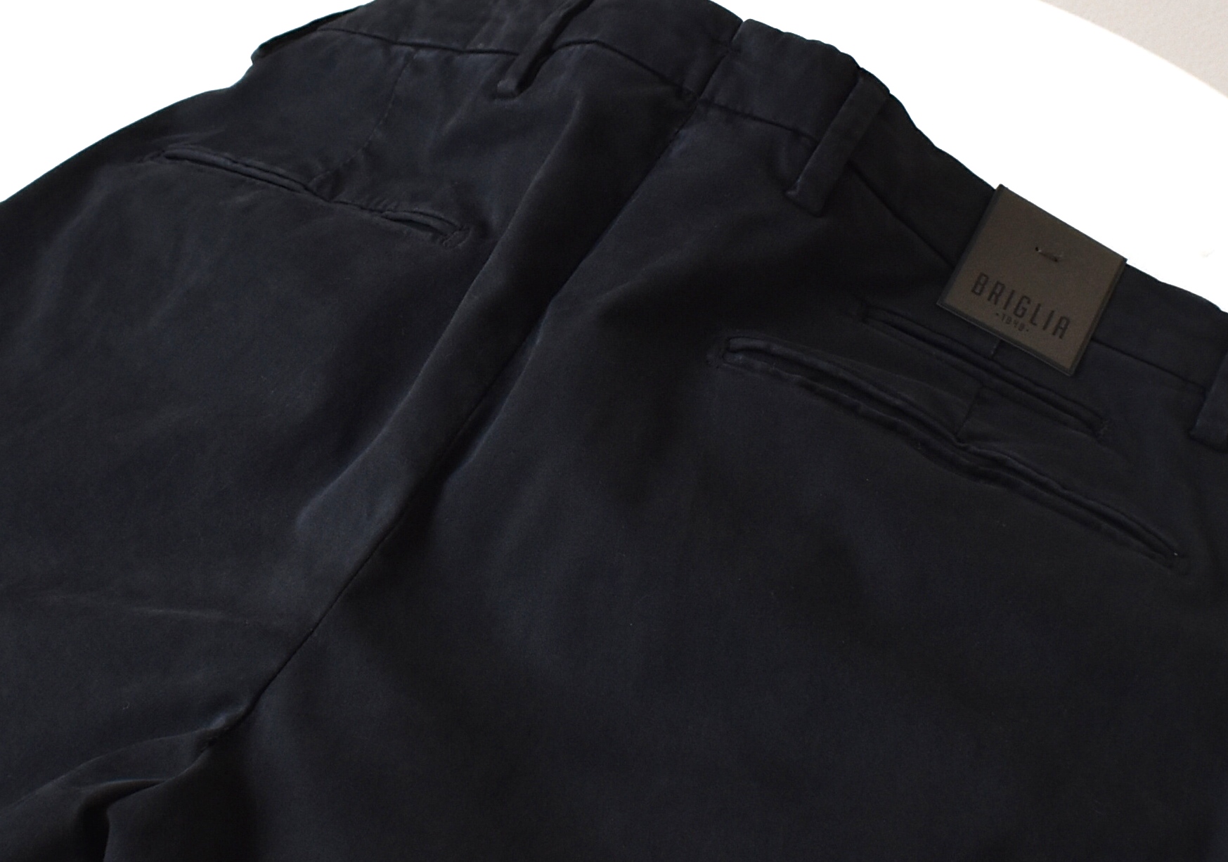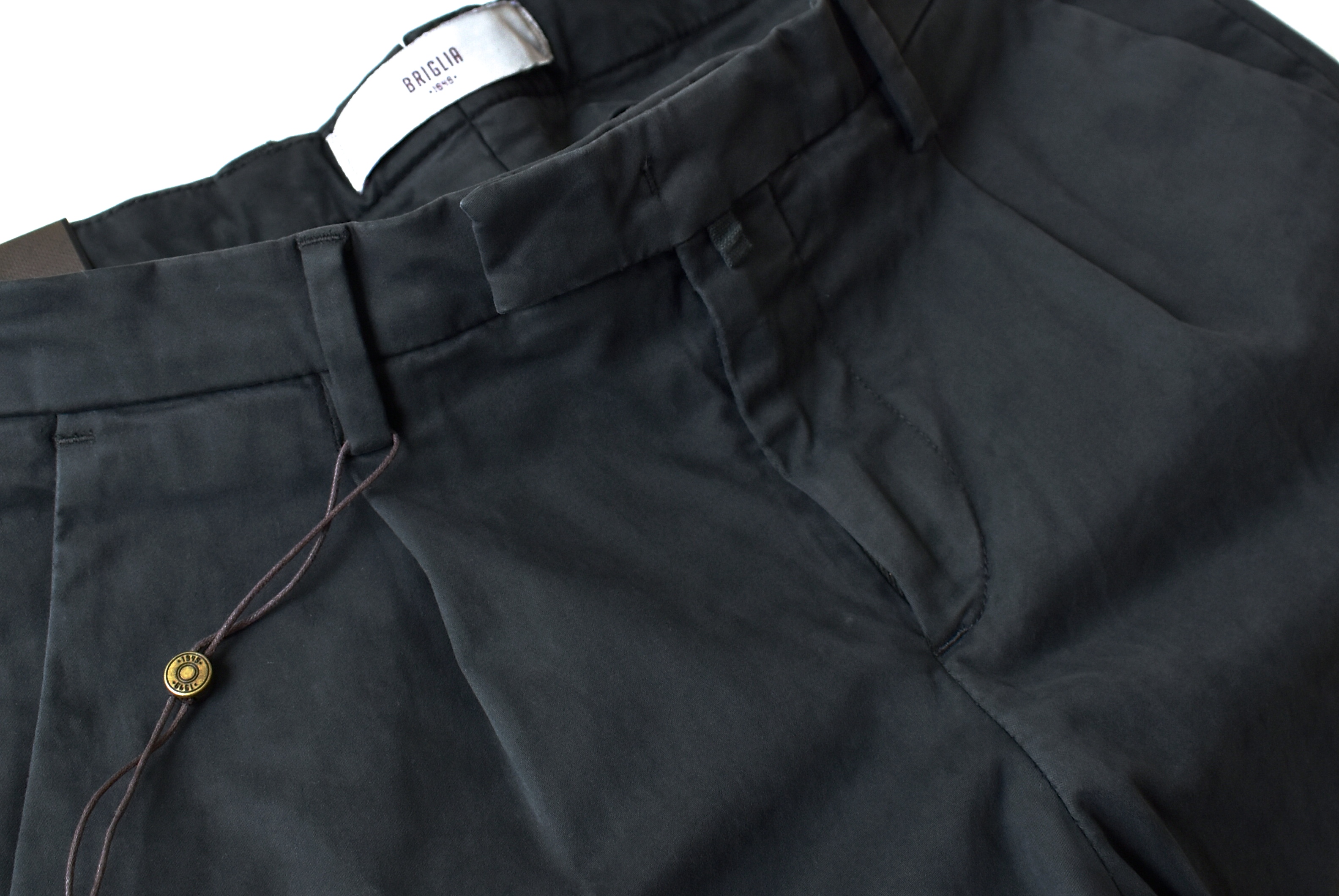 【BRIGLIA 1949/ブリリア】特有の点と言えば、そのサイズ設定。43、44、45...といった様に、一つ刻みのサイズ設定で、ウエストの数値をより細かく展開しています。詳しくはオンラインショップ(掲載は19日)の採寸数値をご参照ください。
