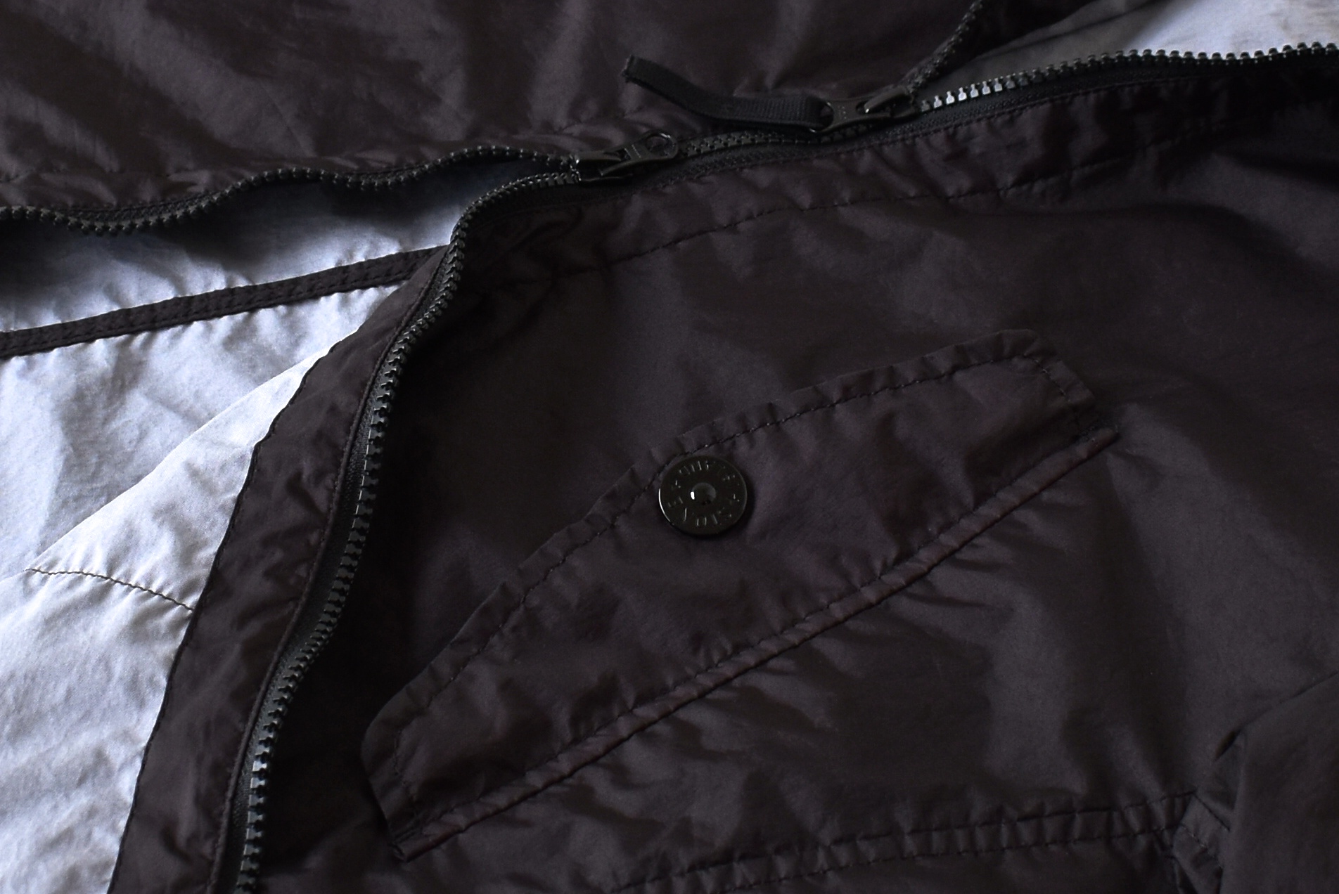 まずは、生地に注目してみましょう。ラミネート加工を施したナイロンの外層に、通気性と防水・防風性のある膜、そして極薄のポリエステルの層でカバーした3重構造の生地です。いきなりマニアックですが、要は、高性能かつ軽量な生地である...ということです。妙にしっとりとした肌触りも、特筆すべきものがあります。