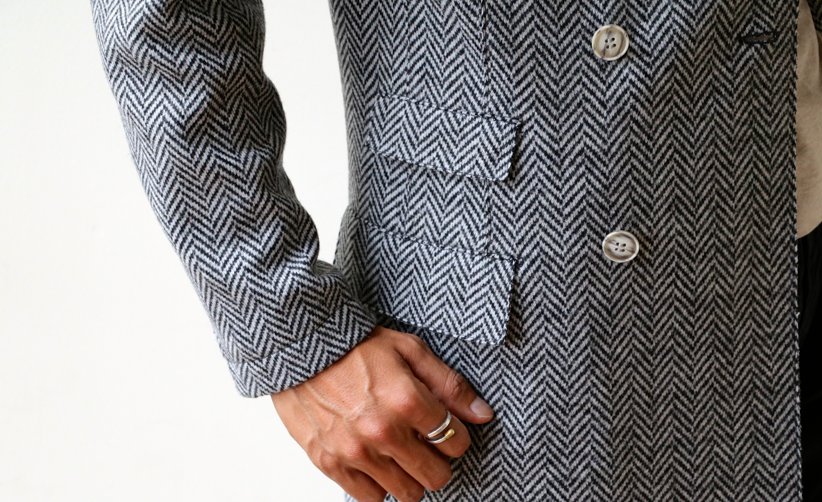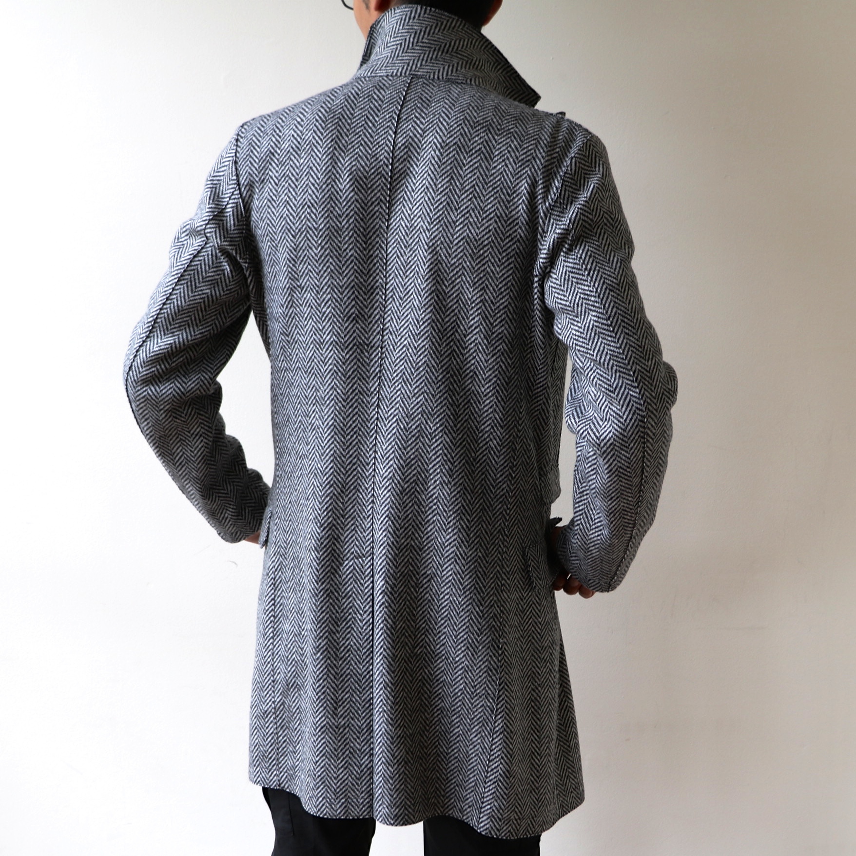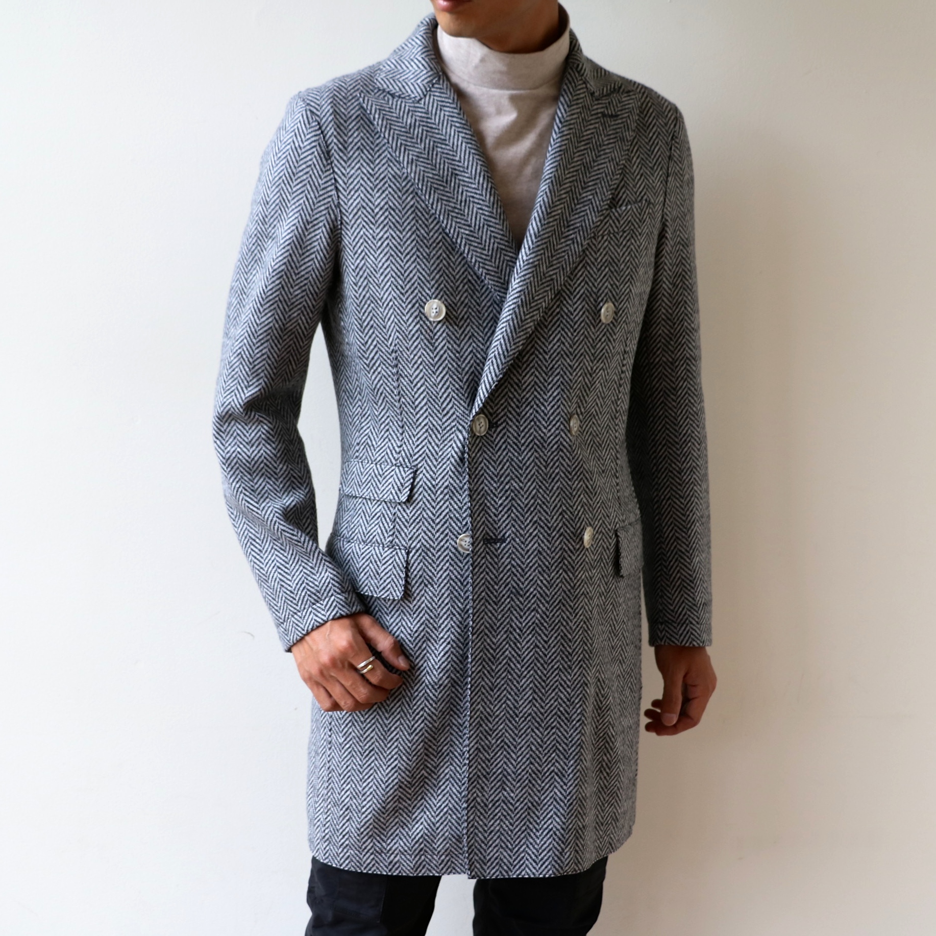 MODEL:ヘリンボーン柄ウールジャージー ダブルブレストコート