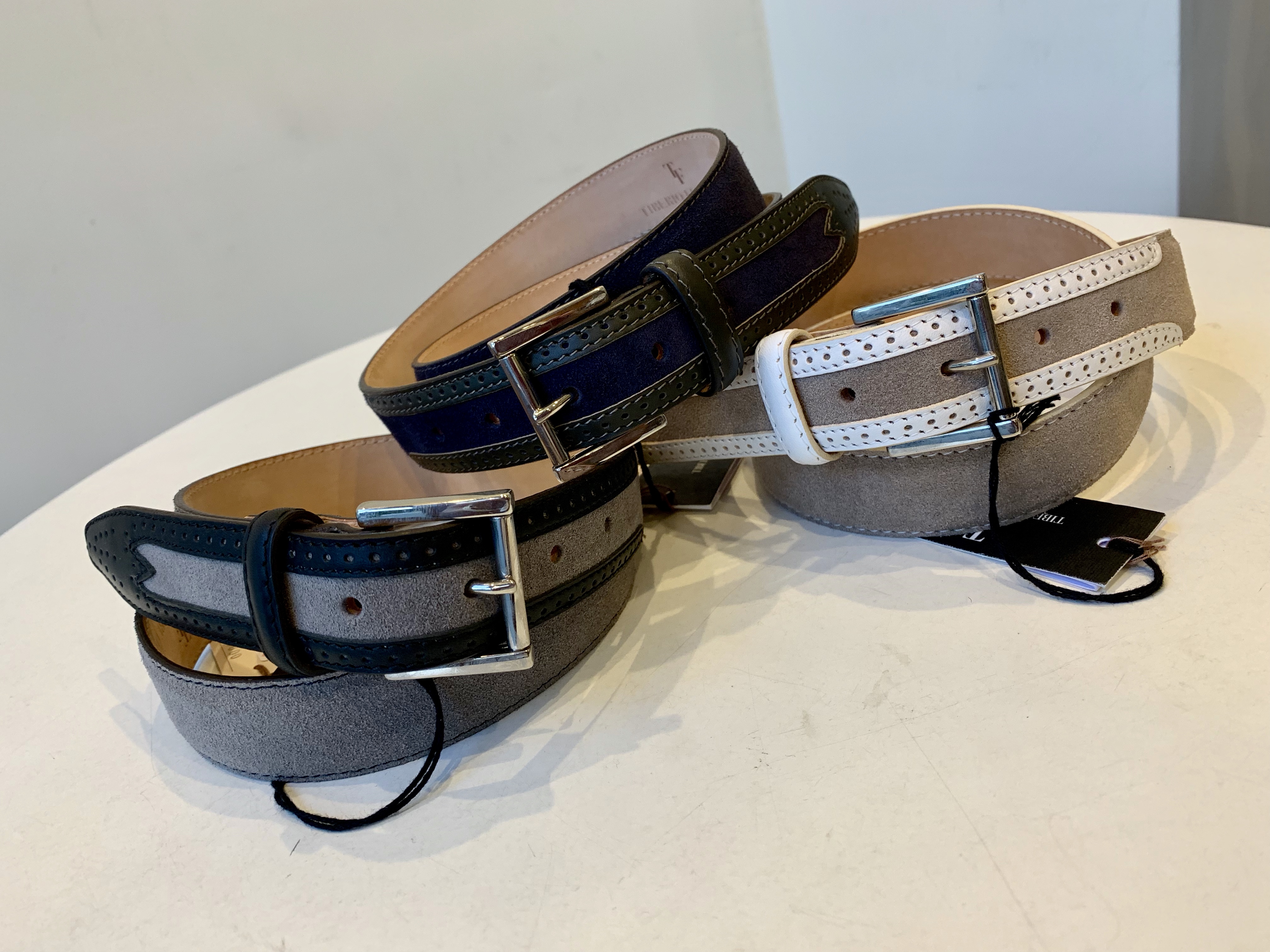 【TIBERIO FERRETTI/ティベリオ フェレッティ】のベルトで、一部均一セールに追加がありました。この機会にベルトを買い足そうかな〜なんて方は、お見逃しなく。表革×スエード ウイングチップベルト。素材のコンビによる表情、絶妙な穴飾りが光る1本は、さり気なく洒脱感をアピールしてくれそうです。