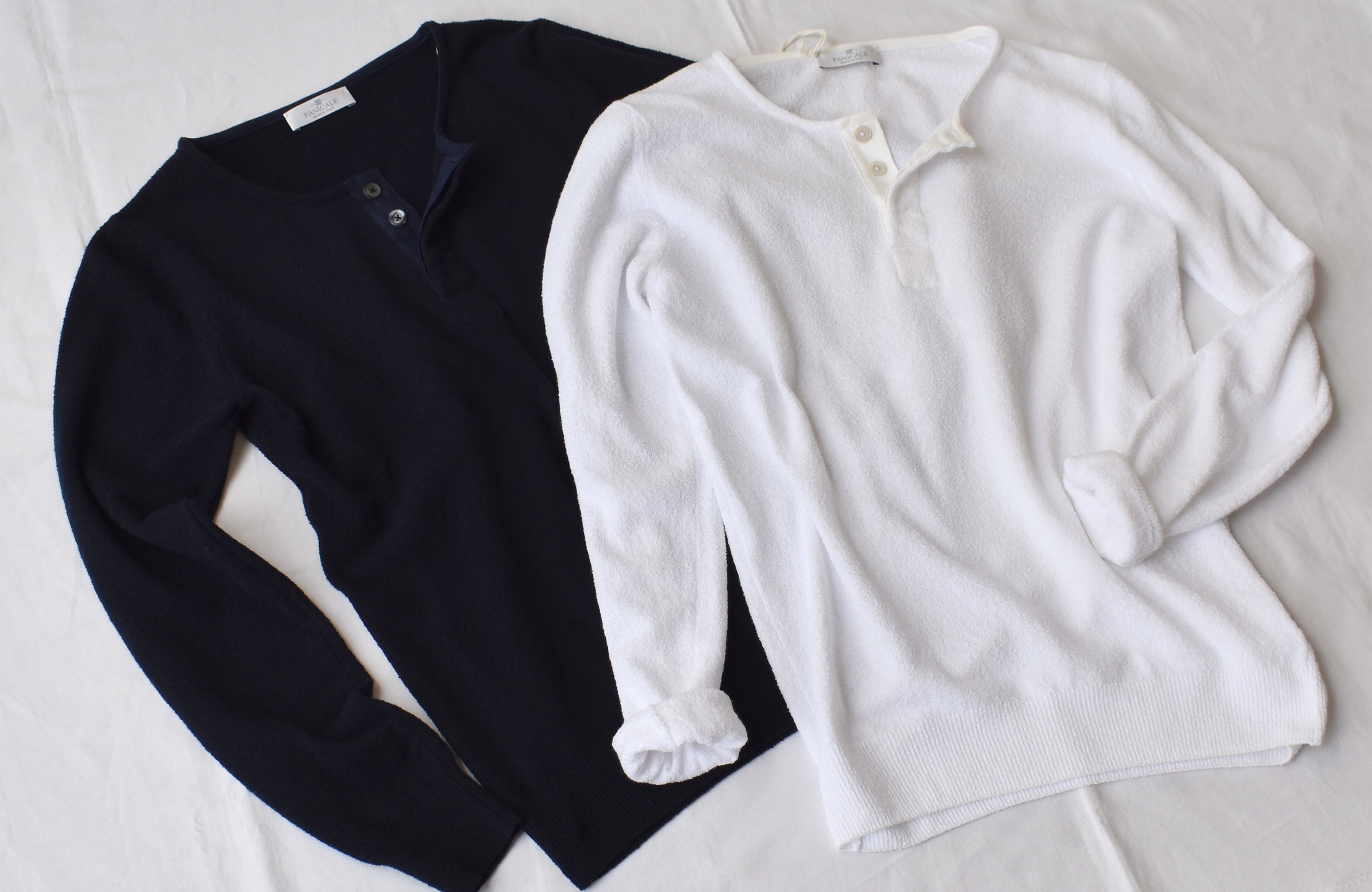 気持ち良いと言えば、パイル地を忘れてはいけません。PANICALEのパイル地ヘンリーネック。ボートネックのように襟元がやや開き気味で、なおかつヘンリーネック。控えめながら個性をアピールします。