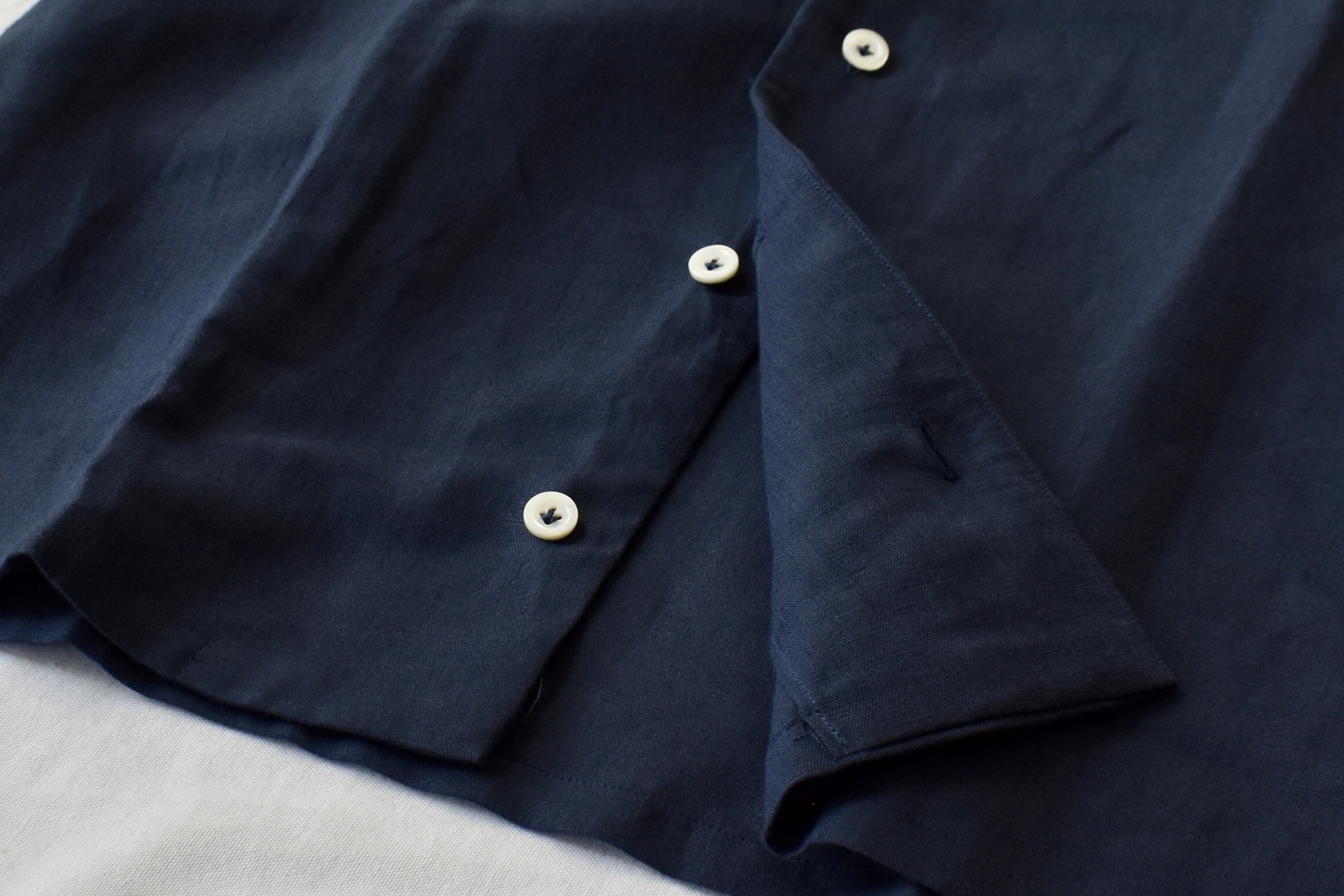 対して、開襟シャツはXSサイズ。36〜37サイズ、42サイズの方にお勧めです。綿麻素材で、気持ちの良い生地。また、来季はジャンネットで半袖開襟シャツを入れていないので、気になる方は是非とも今手に入れてくださいね。