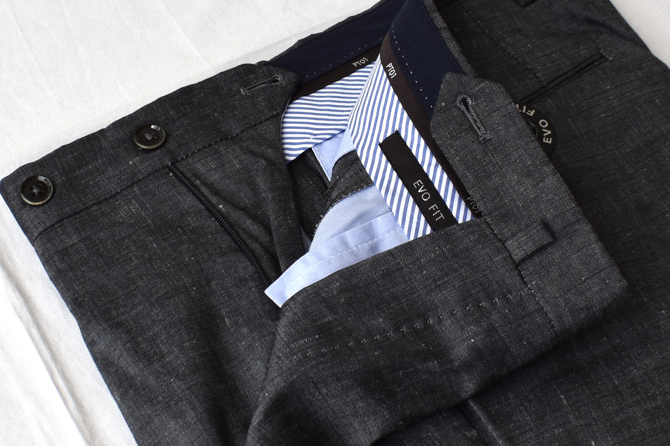 PTの方は、ダークグレイ。リネンの混紡率も多く、より素材感を感じます。