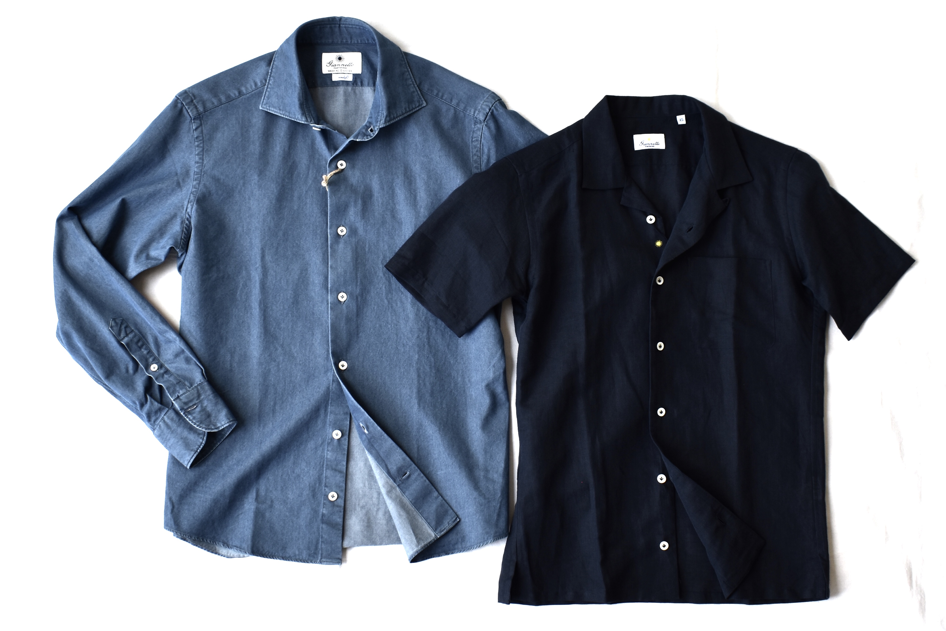 どれにしようかな〜と選ぶのが大変だったのは、Giannettoのシャツ。オールシーズンで使えるデニムシャツに、濃紺の半袖開襟シャツを選びました。デニムシャツは実物よりも薄めに、開襟シャツは濃いめに写ってしまっていますが...、