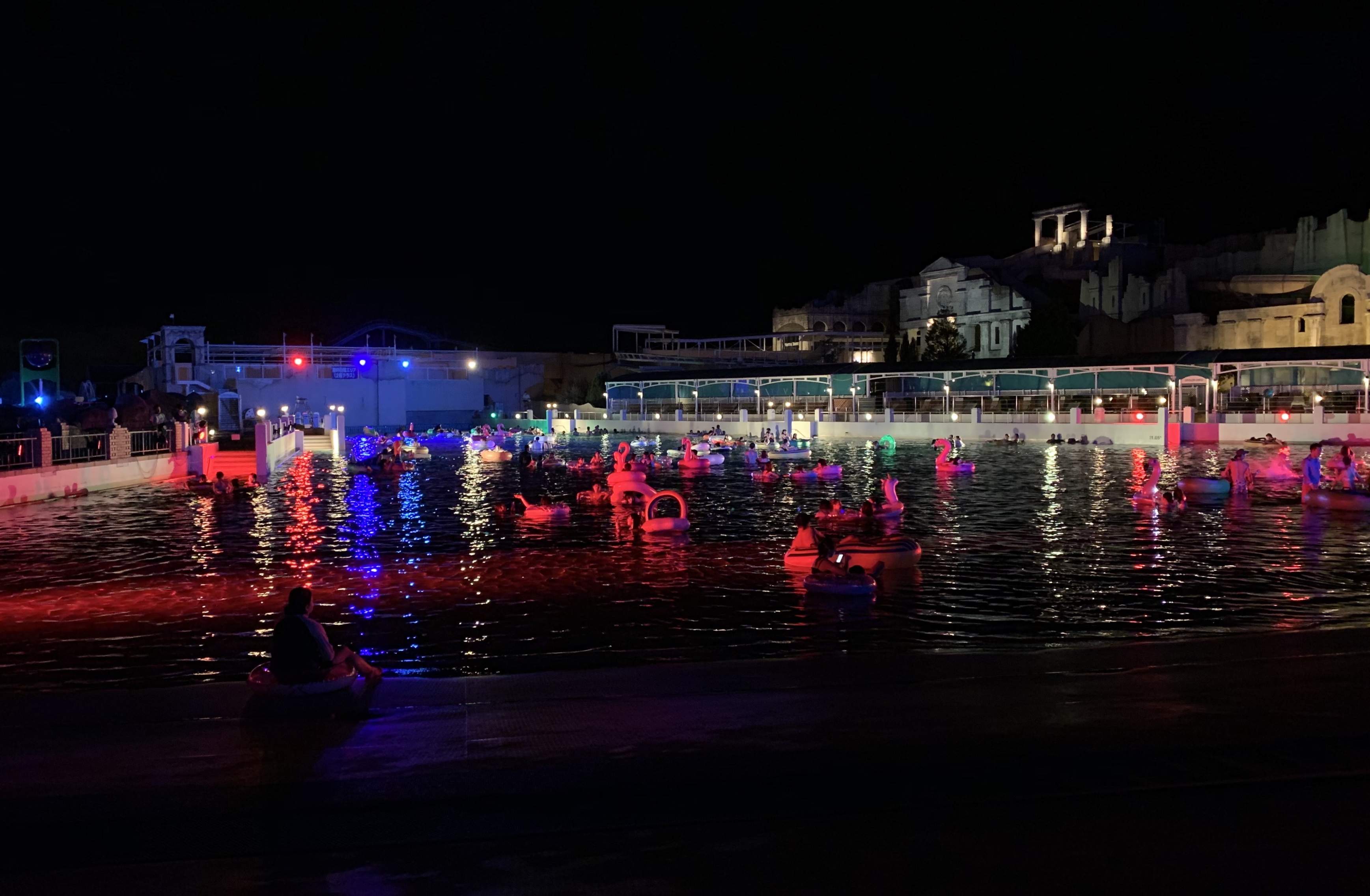 今年も行きました。ナイトプール。隣の蒲郡市にあるラグーナ蒲郡では、2,000円で気軽なナイトプールを楽しめます。会場はインスタ映えを狙う(?)女性ばかりなのは、昨年と同様。とても目の保養になります。