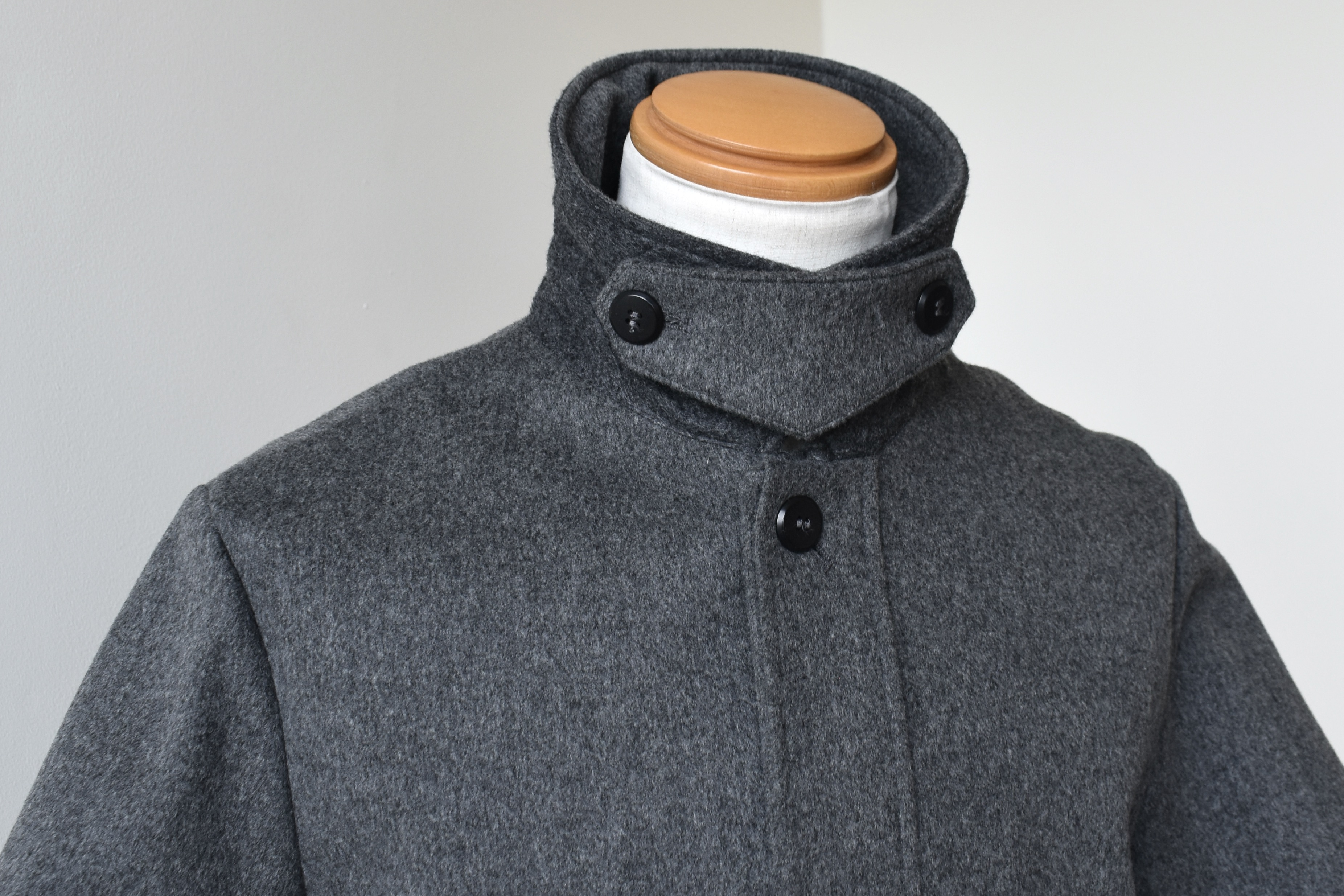 MODEL:ボンデッドウール チンストラップ付きバルカラーコート